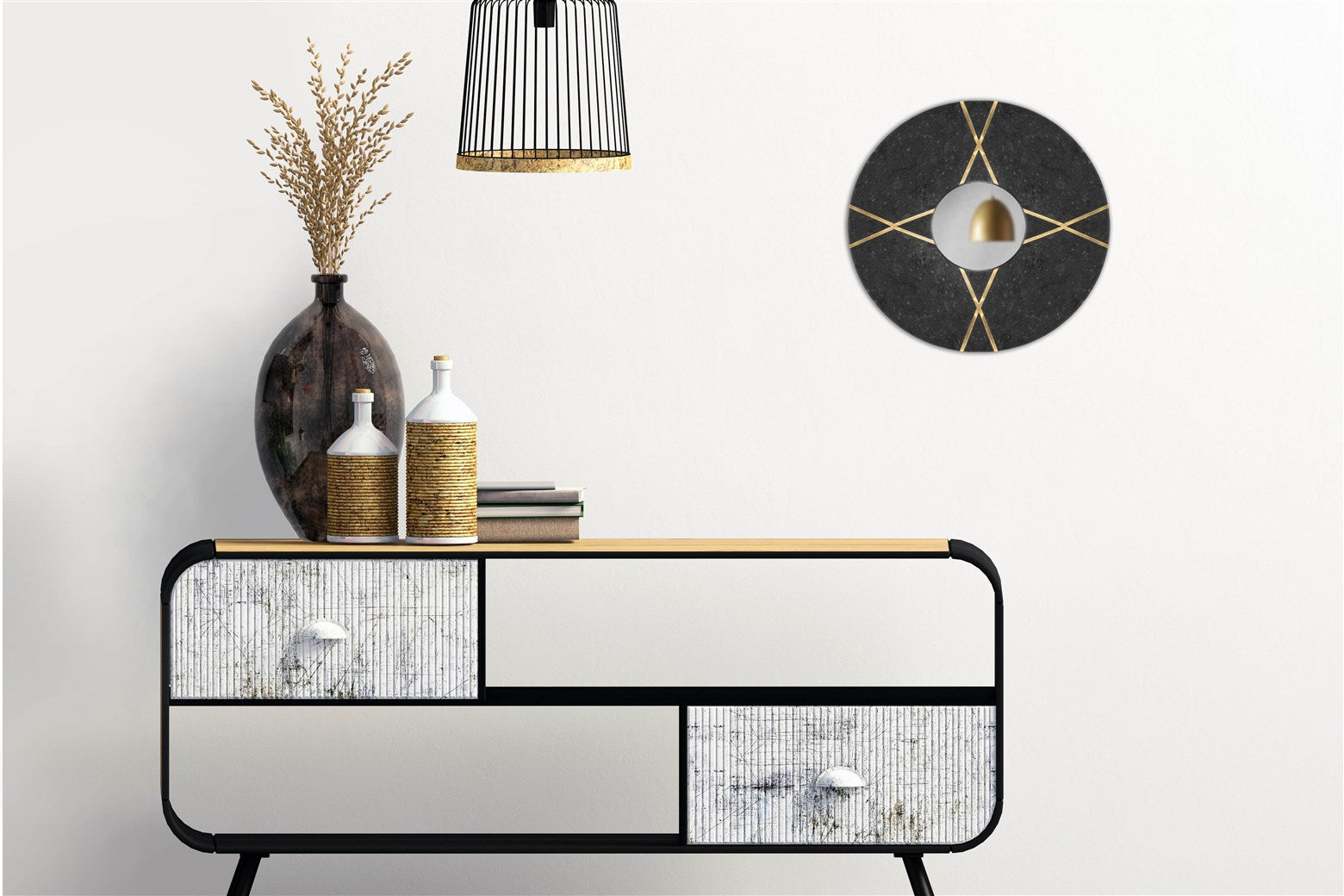 - 45% Spiegelglas, 50% Marmor, 5% MDF