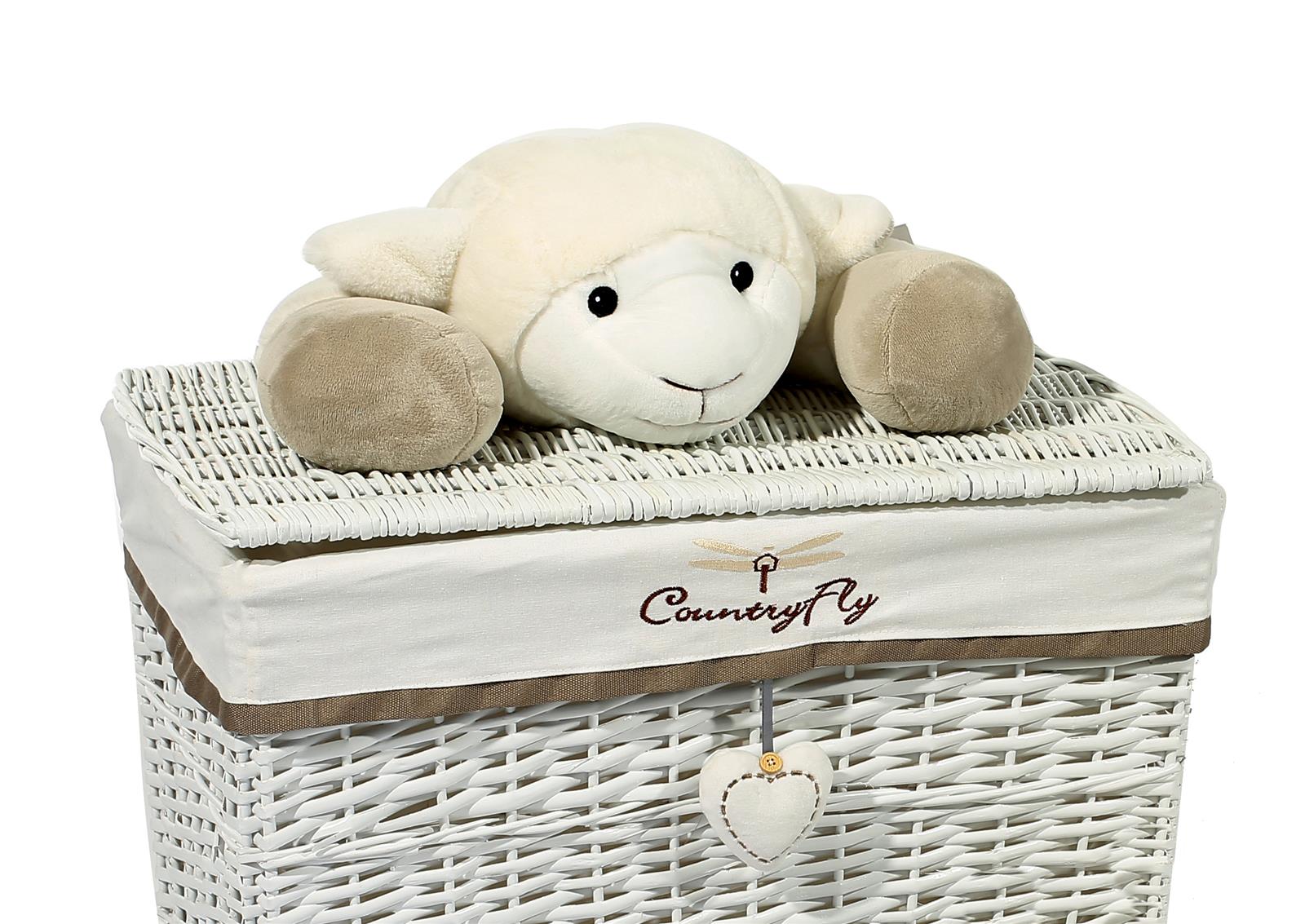 Diese zuckersüßen Körbe sind handgeflochten, mit Stoff bezogen und stilvoll verziert. Sie eignen sich hervorragend als Aufbewahrungskörbe, die zugleich den Raum dekorieren. Denn Aufbewahrungsbehälter müssen heutzutage nicht mehr nur funktional sein, sondern sollen auch zum jeweiligen Raumkonzept des Zimmers beitragen. Fest verarbeitet und mit je einem niedlichen Stofftier versehen, entzücken diese Körbchen sofort. Die kleinen Körbe dieses Sets sind offen, während der große Korb mit einer Deckelklappe versehen ist. Das schöne Produkt aus natürlichen Materialien wird besonders wegen seiner Stabilität und Langlebigkeit geschätzt und wird Ihnen viel Freude bereiten! Die Flechtkörbe eignen sich auch perfekt als Geschenk für besondere Anlässe wie eine Geburt, eine Taufe, einen Geburtstag, Ostern oder andere Feiertage.