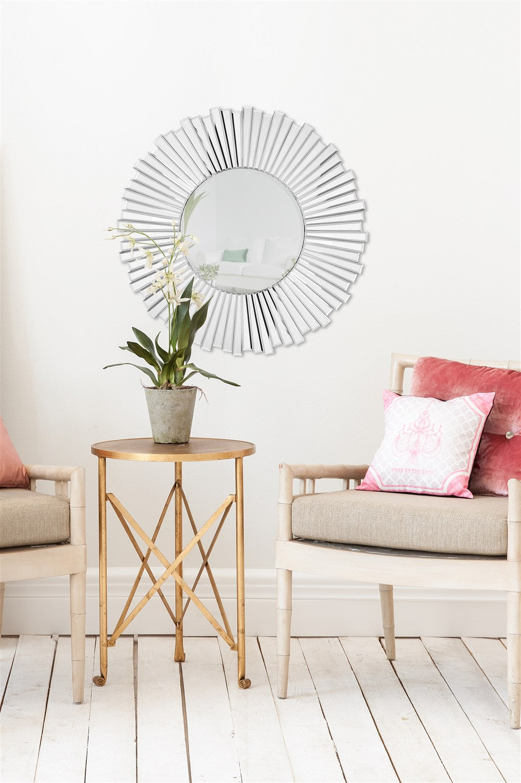 Dieser Spiegel bringt gehobene Eleganz in Ihre Räumlichkeiten. Die klassisch-runde Form der Spiegelfläche harmonisiert mit dem kreativen Design des silbernen Rahmens und betont den reizvollen Charakter des Wohnaccessoires. Der zeitlose Spiegel eignet sich ideal für die Anbringung im Wohnzimmer, Flur, Badezimmer oder jedem weiteren Raum. Kleine Räume profitieren von Spiegelflächen an der Wand, da sie diese größer erscheinen lassen. Mit einem Durchmesser von ca. 80 cm macht der silberne Spiegel besonders an freien Wänden etwas her. Auch als Geschenk für Freunde und Familie, egal ob zum Geburtstag, zur Einweihung oder für sich selbst, eignet sich der runde Wandspiegel ideal. Egal ob als auflockernde Dekoration oder als stylischer Hingucker – der runde Spiegel mit Silberrahmen glänzt prachtvoll und erhellt jeden Raum. Vereinen Sie den Deko-Zweck und den praktischen Nutzen des Deko-Spiegels miteinander und bringen Sie ihn an einer Wand in Ihrem Zuhause an. Er fügt sich dank der leichten Anbringung ideal in unterschiedlichste Wohnkonzepte ein.