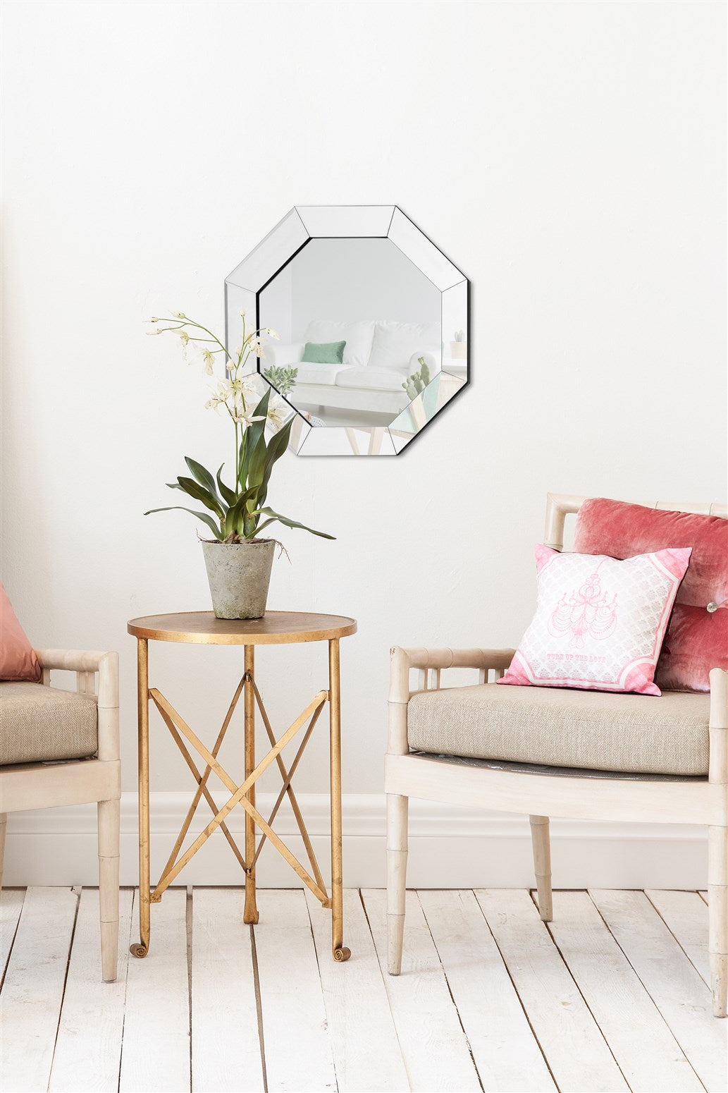 Dieser Spiegel bringt gehobene Eleganz in Ihre Räumlichkeiten. Die achteckige Oktagon-Form der Spiegelfläche harmonisiert mit dem schlichten Design des silbernen Rahmens und betont den reizvollen Charakter des Wohnaccessoires. Der zeitlose Spiegel eignet sich ideal für die Anbringung im Wohnzimmer, Flur, Badezimmer oder jedem weiteren Raum. Kleine Räume profitieren von Spiegelflächen an der Wand, da sie diese größer erscheinen lassen. Mit einem Durchmesser von ca. 60 cm macht der silberne Spiegel besonders an freien Wänden etwas her. Auch als Geschenk für Freunde und Familie, egal ob zum Geburtstag, zur Einweihung oder für sich selbst, eignet sich der Wandspiegel in Achteck-Form ideal. Egal ob als auflockernde Dekoration oder als stylischer Hingucker – der achteckige Wandspiegel mit Silberrahmen glänzt prachtvoll und erhellt jeden Raum. Die schlichte Form versprüht Charme und Eleganz. Vereinen Sie den Deko-Zweck und den praktischen Nutzen des Deko-Spiegels miteinander und bringen Sie ihn an einer Wand in Ihrem Zuhause an. Er fügt sich dank der leichten Anbringung ideal in unterschiedlichste Wohnkonzepte ein.