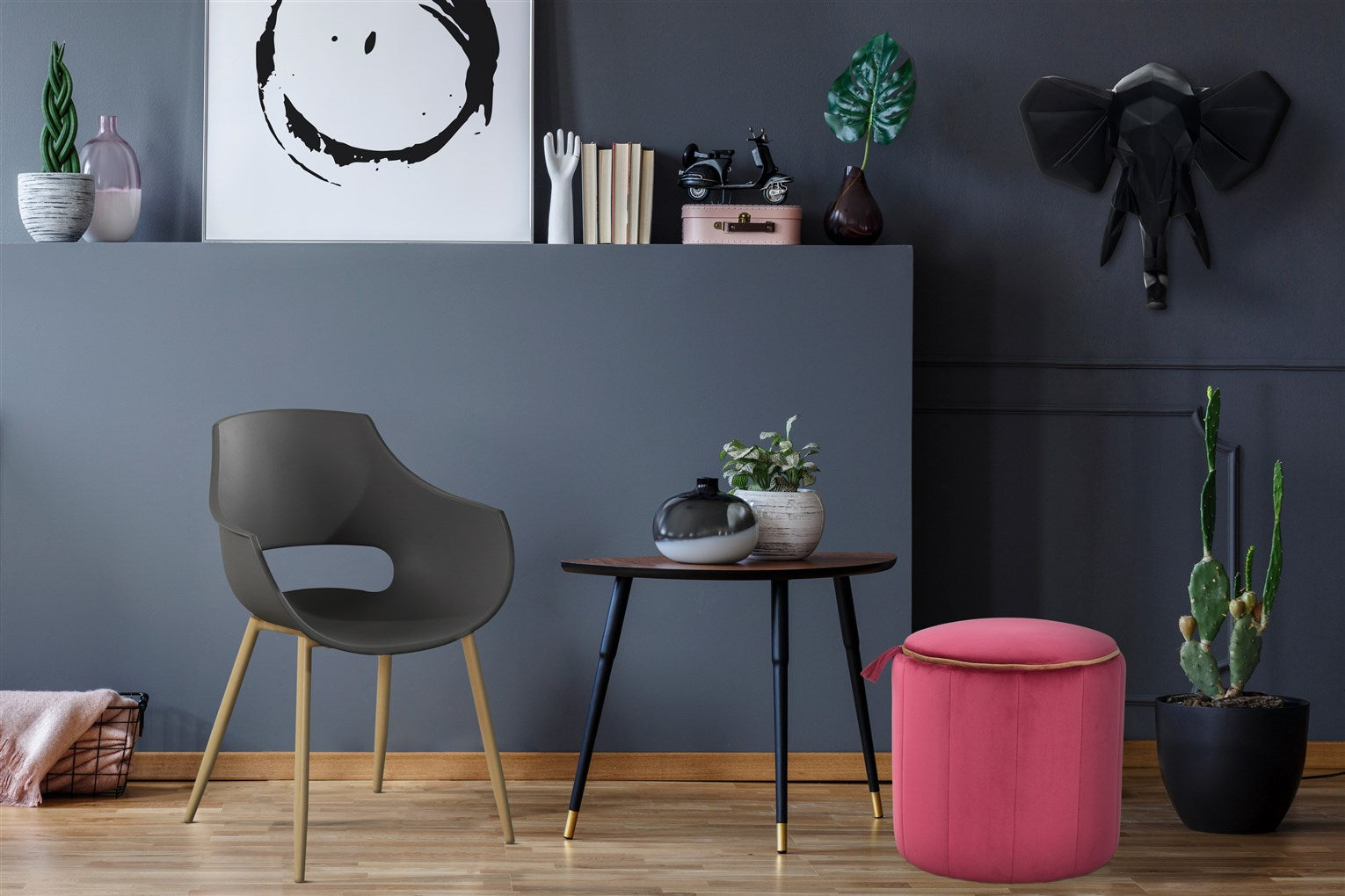 Die attraktive Form und die stilvolle Farbgebung dieses Hockers werden schnell zum Blickfang im Raum. Besonders in modern eingerichteten Räumen kommt der Hocker gut zur Geltung. Sowohl kombiniert mit farbigen Einrichtungen als auch zu schlichten, dezenten Möbeln und Accessoires macht der Hocker eine gute Figur. Dank der samtweichen Stoffoberfläche und der schönen runden Form ist der Hocker dekorativ und elegant zugleich. Ein farblich abgesetzter Rand an der Sitzfläche durchbricht die ansonsten einfarbige Gestaltung stilvoll. Für ein rundes Gesamtbild sorgt die dekorative Schlaufe, die zur Zierde angebracht wurde.