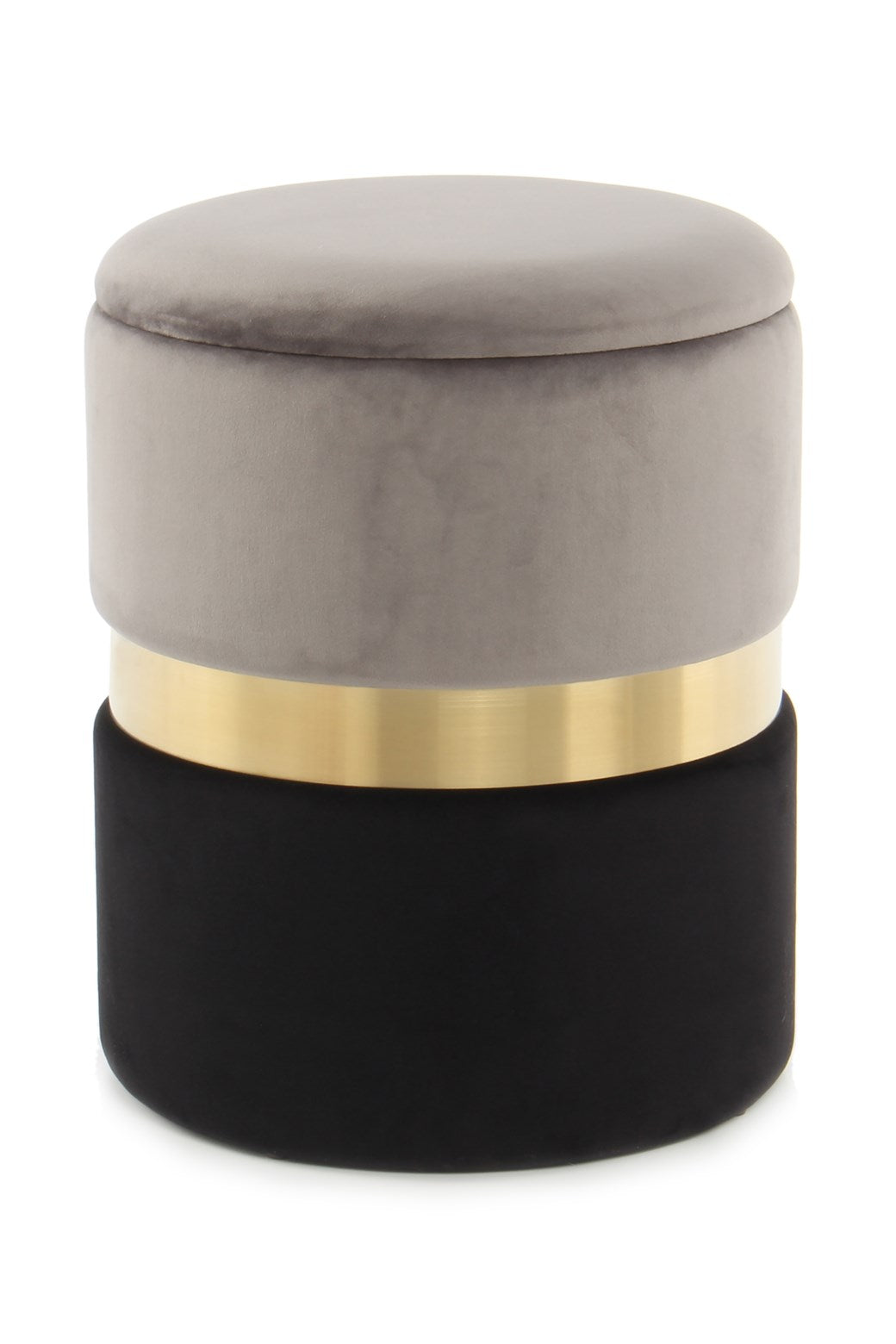 Mit diesem Set erhalten Sie zwei Hocker in unterschiedlichen Größen, aber gleichem Design. Die moderne zweifarbige Gestaltung erhält durch einen edlen Ring aus Metall einen glamourösen Charakter. Die beiden Farben werden durch den Ring optisch voneinander getrennt und bilden dennoch eine harmonische Einheit. Durch den samtweichen Bezug aus Stoff und die runde Form wirken die Hocker bereits optisch weich. Auch in Sachen Komfort steht es den Hockern in nichts nach. Die Sitzflächen sind weich gepolstert und bieten so eine angenehme Sitzgelegenheit, die in jedem Raum genutzt werden kann. Als Sitzmöglichkeit an niedrigen Tischen, wie Couchtischen, kann ein Hocker beispielsweise optimal genutzt werden. Zwei zusätzliche Sitzgelegenheiten für Besucher sind durch diese Hocker immer gegeben. Wird der Platz anderweitig benötigt, lassen sich die Hocker dank des leichten Gewichts bequem umstellen oder platzsparend zur Seite stellen, sodass sie bei Bedarf wieder herausgeholt werden können. Der besondere Clou an diesen Hockern ist der Stauraum im Inneren. Er lässt sich durch die abnehmbare Sitzfläche einfach zur Aufbewahrung gerade nicht gebrauchter Gegenstände nutzen.