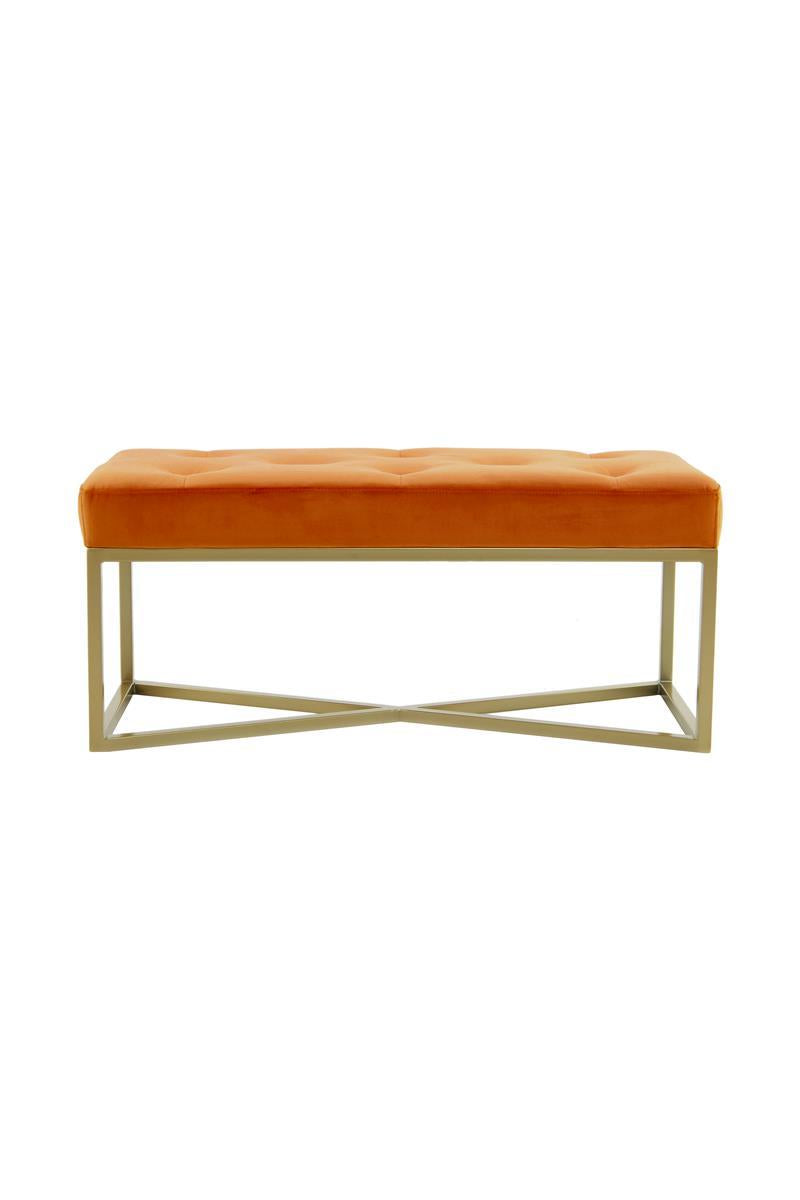Getreu dem Motto „Glamour is a state of mind!“ ist diese Sitzbank nicht einfach nur ein Möbelstück – sie vermittelt ein Lebensgefühl! Sie beschert tatsächlich jede Menge Glamour und bildet ein elegantes, stylisches Einrichtungshighlight für Ihr Zuhause! Ausgestattet mit einer bequemen, weichen Polsterung garantiert sie einen hohen Sitzkomfort. Die exklusive Material-Kombination aus glänzenden Metallbeinen in Goldoptik und elegantem samtigen Stoff in zeitlosen Farben mit schöner Knopfheftung sorgt in jedem Raum für eine echte Bereicherung. Sie vermittelt edle Wohnlichkeit und bietet als Ablagemöglichkeit im Eingangsbereich, Sitzgelegenheit im Wohn- und Essbereich oder schick platziert am Fußende des Bettes jede Menge Komfort. Ein schicker Hingucker, auf dem es sich aushalten lässt und der nahezu jeden Einrichtungsstil ideal ergänzt.