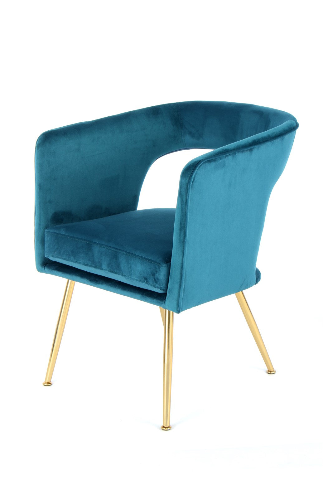 Dieses Stuhlmodell ist zeitlos und vermittelt dennoch einen Retro-Charakter. Die würfelförmige Grundform wird durch abgerundete Kanten und Ecken und eine Aussparung in der Mitte der Rückenlehne zu einem besonderen Hingucker. Der samtweiche Bezug in unifarbener Gestaltung unterstreicht den Retro-Look des Stuhls ebenso wie die seitlich abgespreizten Stuhlbeine aus Metall. Für Sitzkomfort sorgen das dicke Sitzkissen sowie die Rückenlehne mit integrierten Armlehnen. Das Sitzkissen ist durch Klettverschluss mit der Sitzschale verbunden und ist an der Unterseite mit einem Reißverschluss versehen. In der Leseecke kann der Stuhl als Einzelstück als gemütliche Sitzgelegenheit dienen. Kombiniert mit einer passenden Leselampe und einem kleinen Beistelltisch als Ablagefläche können Sie sich Ihre persönliche Leseecke stilvoll einrichten. Aber auch am Esstisch macht der Stuhl in gruppenweiser Anordnung eine gute Figur.