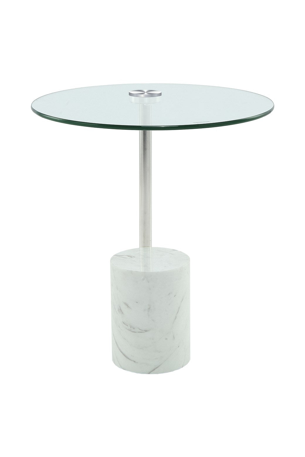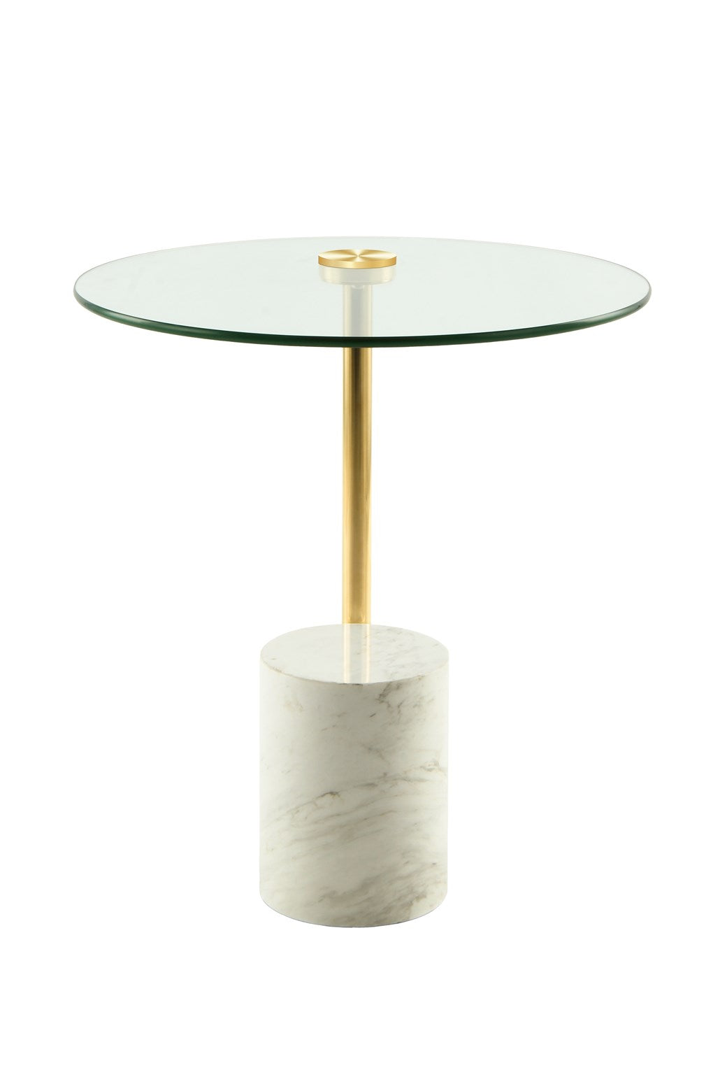 Dieser Tisch schafft mit seiner modernen Optik und der eleganten Farbgebung ein luxuriöses Ambiente mit wohnlicher Atmosphäre. Das runde, elegante Metallgestell mit Marmorfuß und die ebenfalls runde Glas-Tischplatte fügen sich zu einer stilvollen Einheit zusammen, die sich in jede Einrichtung integrieren lässt, um die bestehende Einrichtung aufzuwerten und eine glamouröse Atmosphäre zu kreieren.