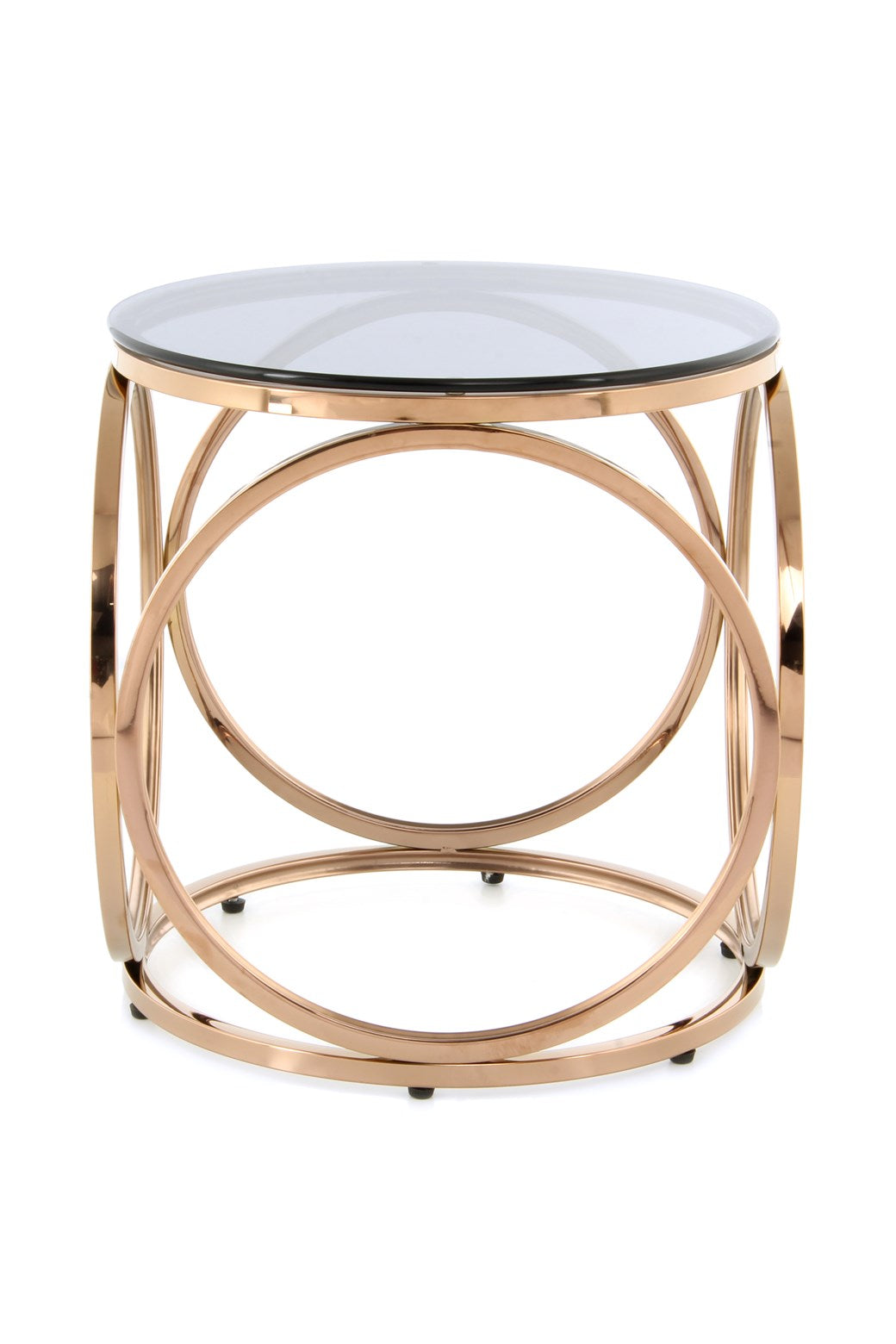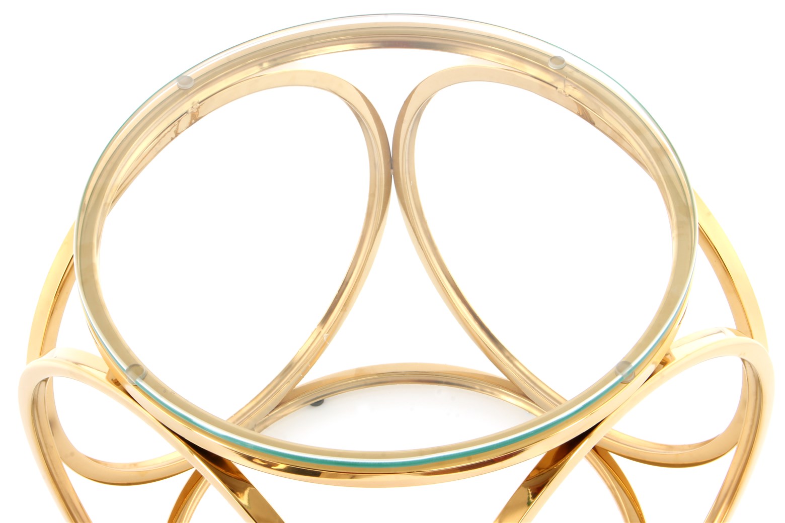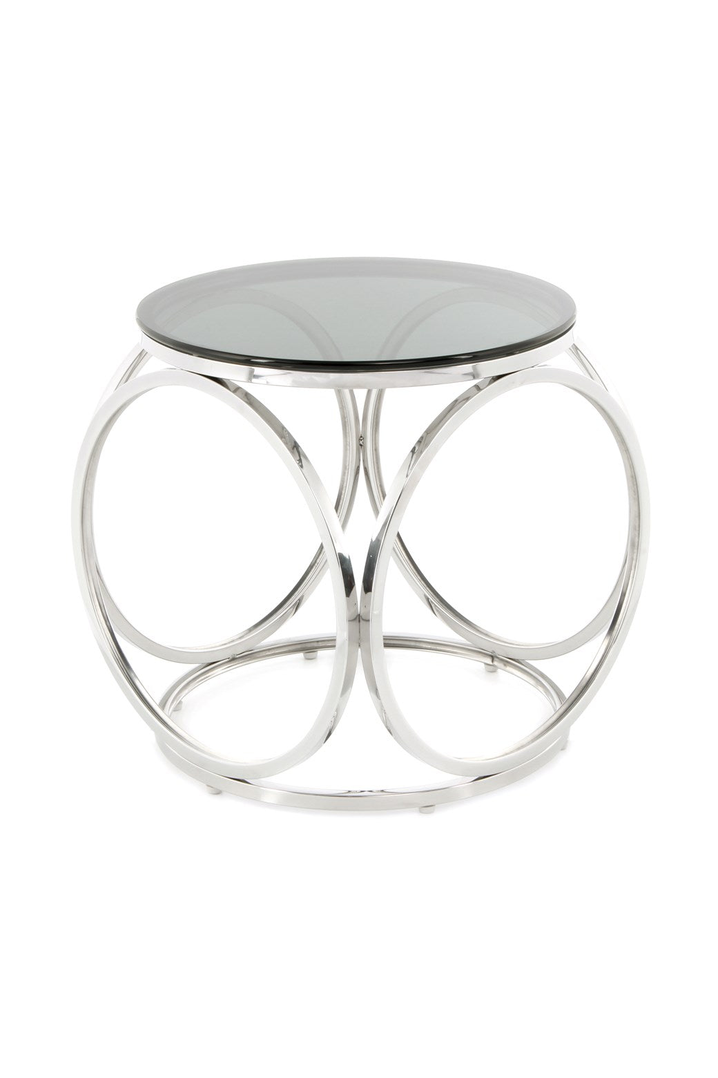 Die offene Gestaltung dieses Beistelltisches bringt ein modernes und einladendes Ambiente mit sich. Das Metallgestell aus verschiedenen zusammengesetzten Elementen verleiht dem Tisch seinen besonderen Look. Kombiniert mit der Tischplatte aus Glas ergibt sich ein harmonisches Gesamtbild mit edlem Charakter. Besonders in luxuriösen Einrichtungen macht der Tisch eine gute Figur. Aber auch in modernen und klassischen Einrichtungen sorgt er für das gewisse Etwas. Durch die runde Grundform und die ebenfalls runde Tischplatte wirkt der Tisch sehr ansprechend. Die randlose, glatte Oberfläche ermöglicht ein einfaches Abwischen des Möbelstücks. Egal ob als praktischen Beistelltisch und Ablagefläche oder als Stellmöglichkeit für stilvolle Dekoration – dieser Tisch kann sich in jeder Hinsicht sehen lassen.