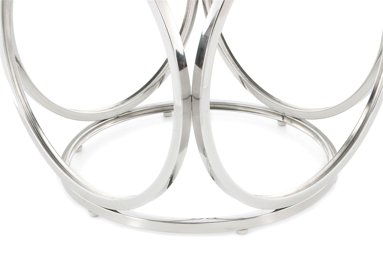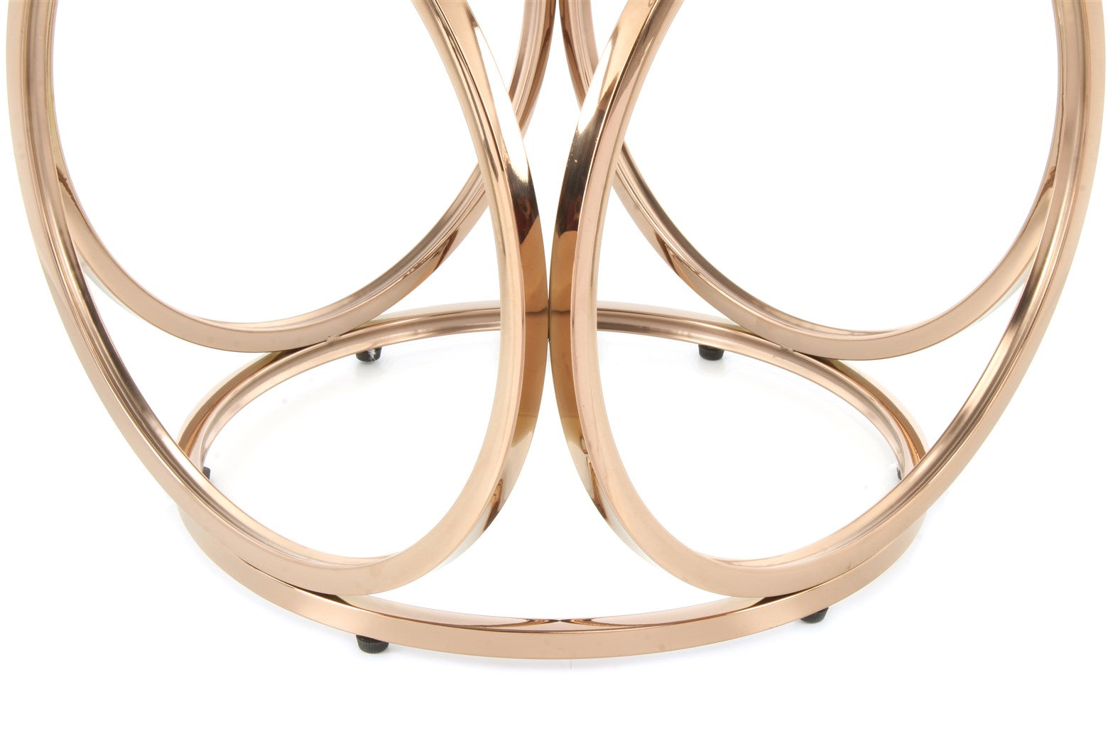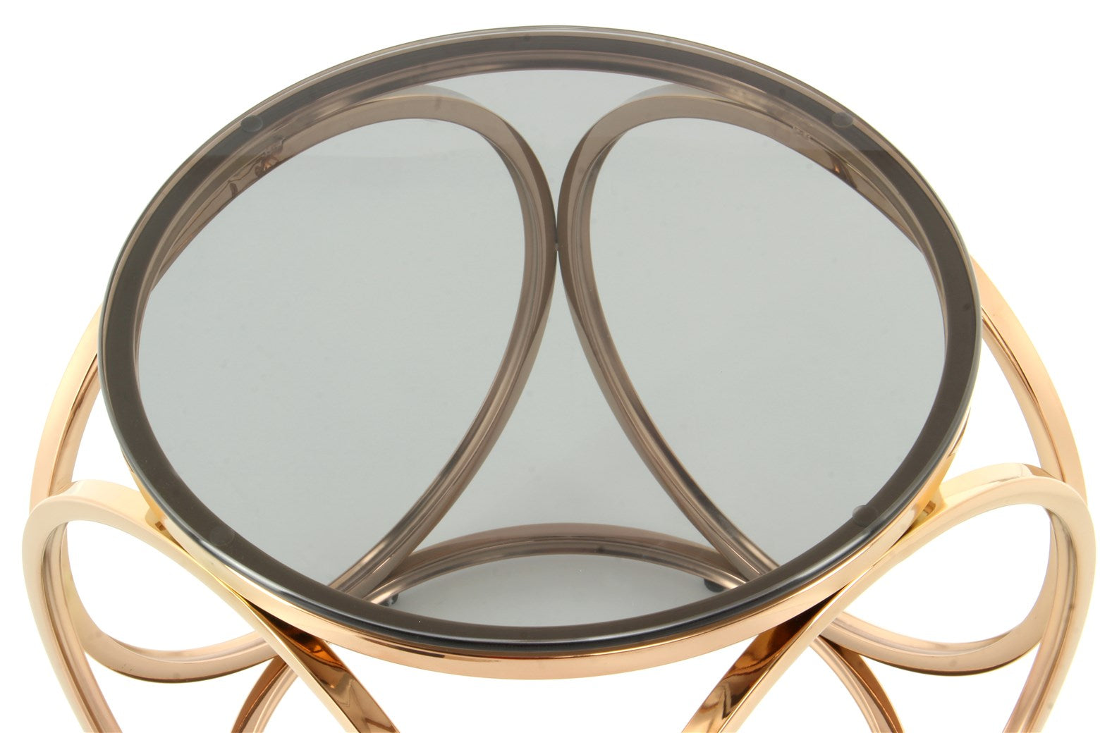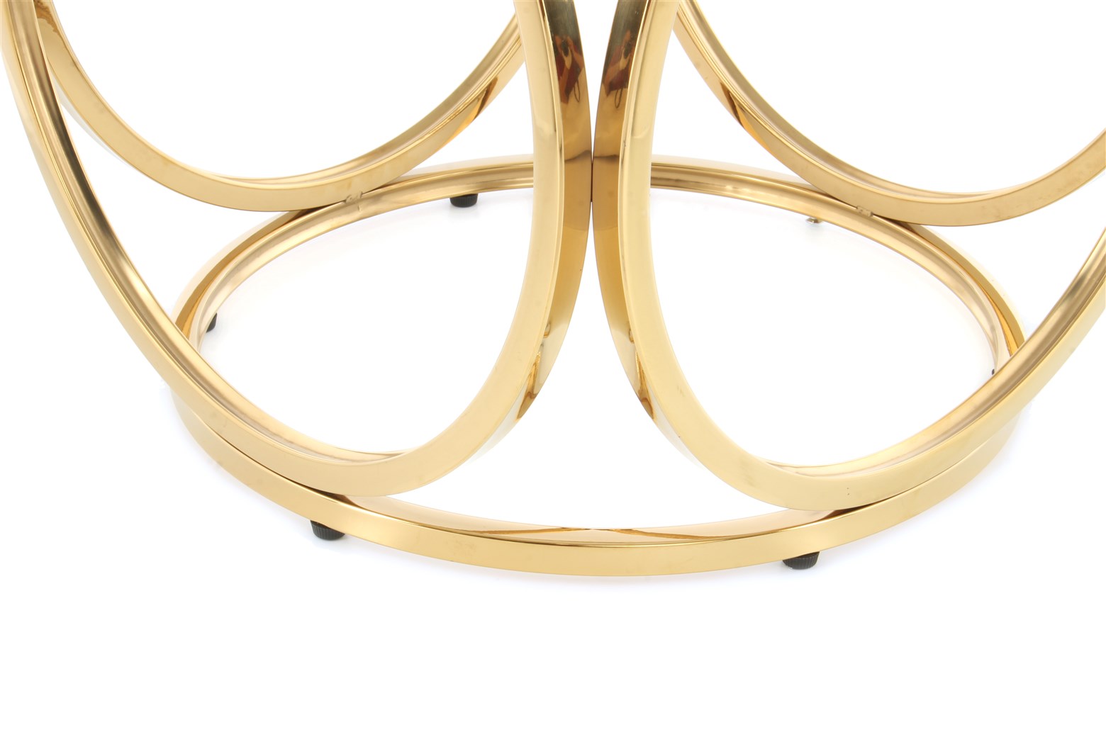Die offene Gestaltung dieses Beistelltisches bringt ein modernes und einladendes Ambiente mit sich. Das Metallgestell aus verschiedenen zusammengesetzten Elementen verleiht dem Tisch seinen besonderen Look. Kombiniert mit der Tischplatte aus Glas ergibt sich ein harmonisches Gesamtbild mit edlem Charakter. Besonders in luxuriösen Einrichtungen macht der Tisch eine gute Figur. Aber auch in modernen und klassischen Einrichtungen sorgt er für das gewisse Etwas. Durch die runde Grundform und die ebenfalls runde Tischplatte wirkt der Tisch sehr ansprechend. Die randlose, glatte Oberfläche ermöglicht ein einfaches Abwischen des Möbelstücks. Egal ob als praktischen Beistelltisch und Ablagefläche oder als Stellmöglichkeit für stilvolle Dekoration – dieser Tisch kann sich in jeder Hinsicht sehen lassen.