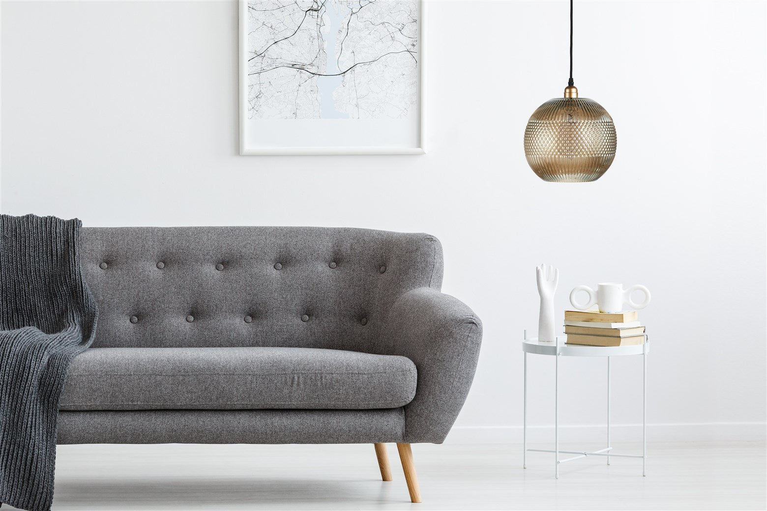 Mit dieser Glas-Hängelampe holen Sie sich einen attraktiven Retro-Charme und eine atmosphärische Beleuchtung nach Hause. Durch den Lampenschirm aus Glas gelangt warmes Licht in die Umgebung und sorgt für ein wohnliches Ambiente. Das stilvolle Design verleiht der Lampe gleichermaßen einen angesagten Retro-Charme und einen modernen Gesamtlook. Über dem Essplatz in Küche oder Esszimmer kann die Lampe ideal an der Decke angebracht werden und eine passende Beleuchtung schaffen.