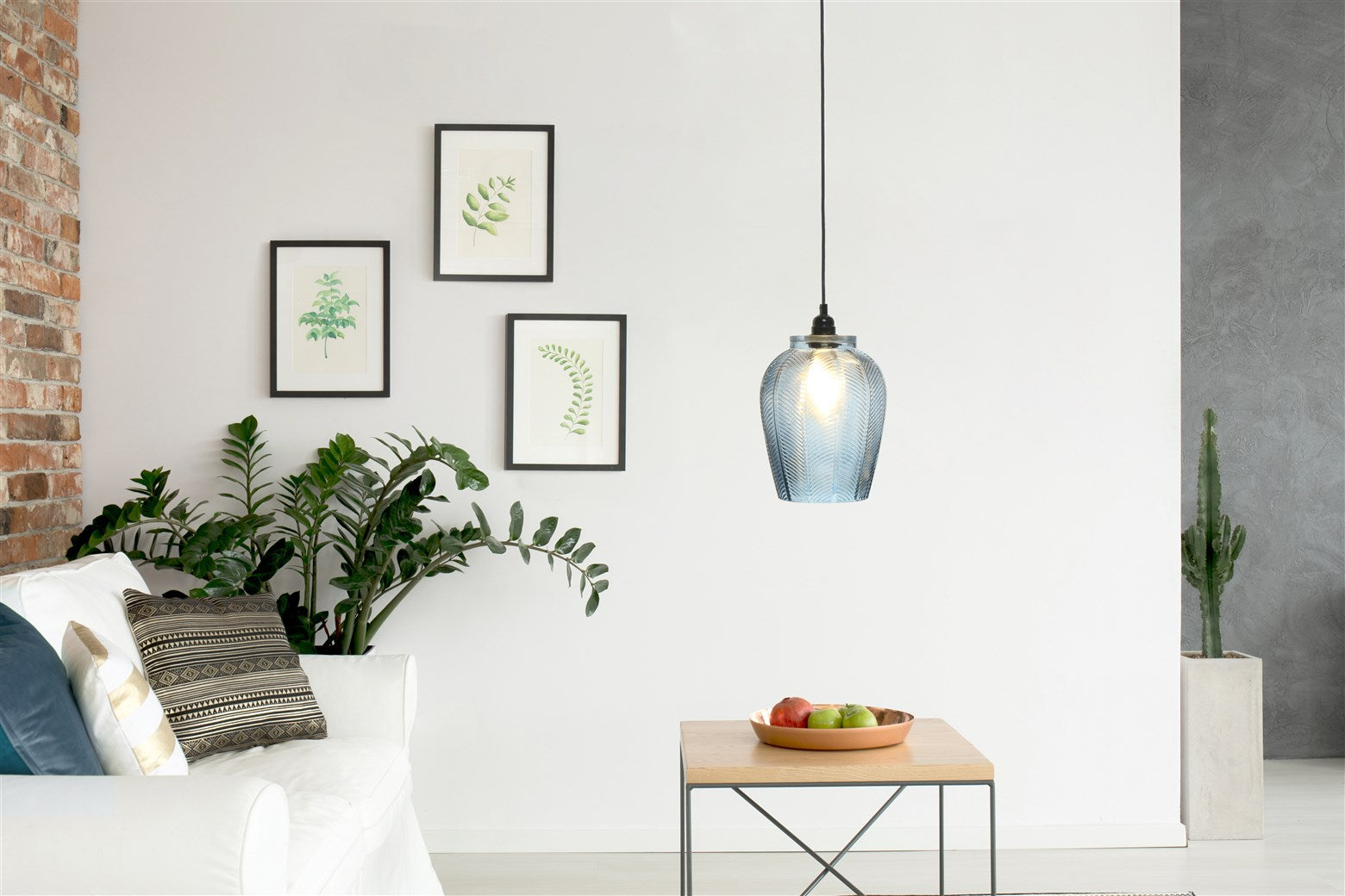 Die Hängelampe eignet sich ideal für eine stimmungsvolle Beleuchtung in jedem Raum. Der nach unten geöffnete Lampenschirm aus Glas ist lichtdurchlässig und gibt schöne Lichteffekte an die Umgebung ab. Durch ihr besonderes Design erhält die Lampe sowohl einen modernen Look als auch einen angenehmen Retro-Charakter. Als stilvolle Beleuchtung über dem Küchen- oder Esstisch ist diese Lampe optimal einsetzbar.