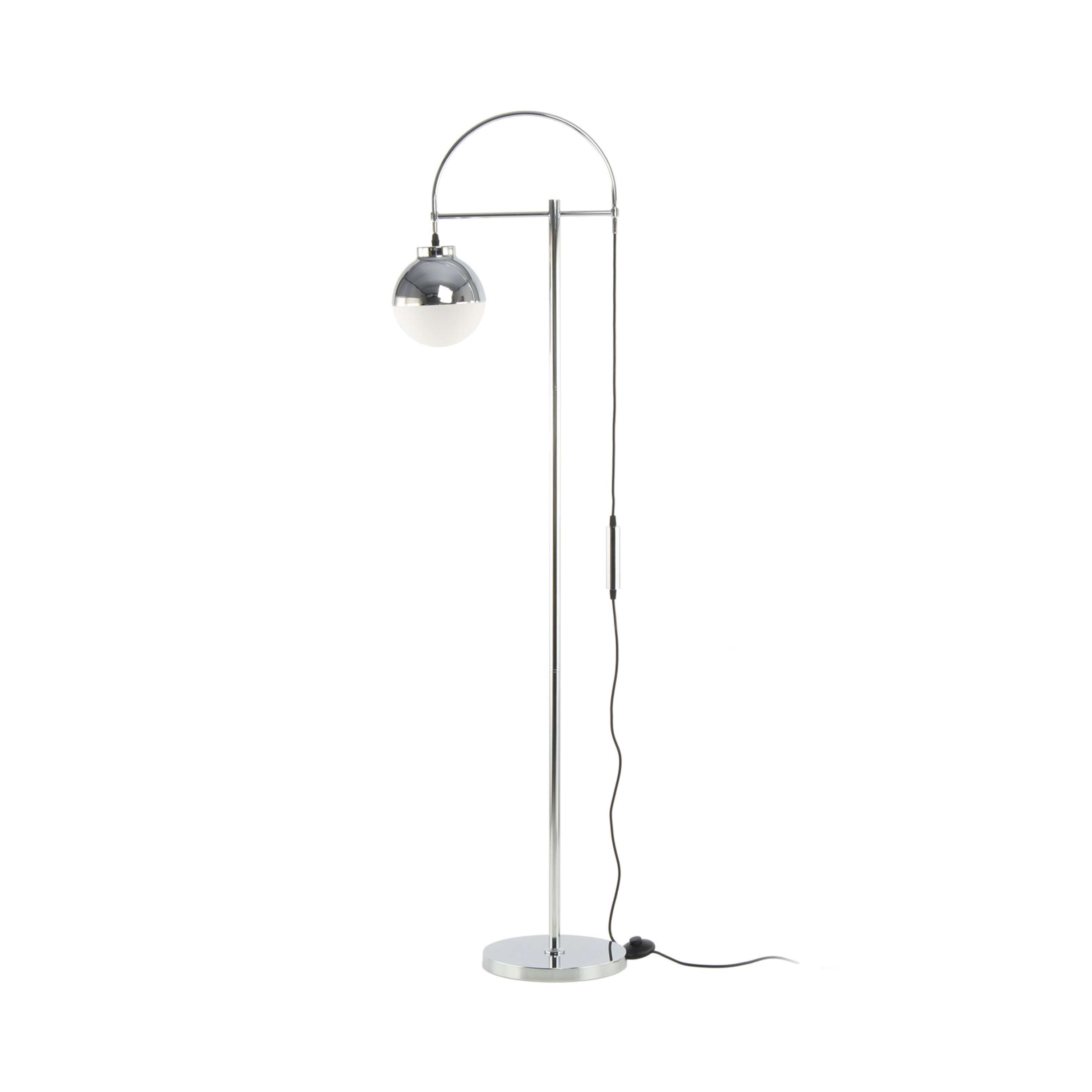 Diese Stehlampe ist ein ganz besonderes Modell. Die außergewöhnliche Form des Metallgestells und die dennoch in minimalistischem Stil gehaltene Aufmachung bilden ein attraktives Gesamtbild. Durch die edle Farbgestaltung setzen Sie mit dieser Stehlampe einen wohnlichen und gleichzeitig glamourösen Akzent. Von dem kugelförmigen Lampenschirm als Glas und Metall geht eine warme Beleuchtung aus, die ein stimmungsvolles Ambiente verspricht.