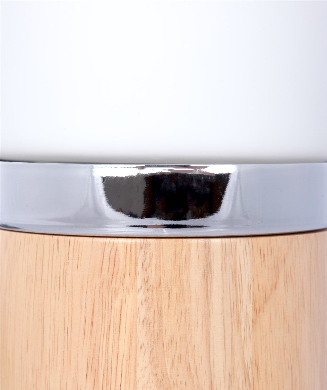Die Tischlampe besticht durch die Materialkomposition aus warmem Milchglas und einem Fuß aus Holz – ein neu interpretierter Klassiker als innovativer Aufmacher! Die hochwertige Tischleuchte setzt geschmeidige Lichtakzente und ist ein absoluter Hingucker, der zu allen Einrichtungsstilen passt. Die Aufmerksamkeit richtet sich auf den ansehnlichen runden Holzfuß, dessen Form durch das moderne Milchglas in Kuppelform abgerundet wird. Durch die Kombination mit einem warm strahlenden Leuchtmittel (nicht enthalten) lässt das dekorative Milchglas das Licht der Birne harmonisch durchstrahlen und zu einem kleinen Kunstwerk verschmelzen. So durchflutet die Tischlampe den Raum mit brillantem, stimmungsvollen Licht. Der Halter aus Metall sorgt für eine definierte Ausrichtung. Eine ausgefallene Dekorationsidee für ein modernes Flair: Die stilvolle Tischleuchte ist eine Bereicherung für jedes Wohnkonzept. Die trendige Raumgestaltung sorgt für weiche Kontraste und eine warme Atmosphäre. Ideal ist sie für Wohn- oder Esszimmer, aber auch für das Schlafzimmer geeignet. Dabei sorgt sie durch ihr angenehmes Licht für ein gemütliches Ambiente.