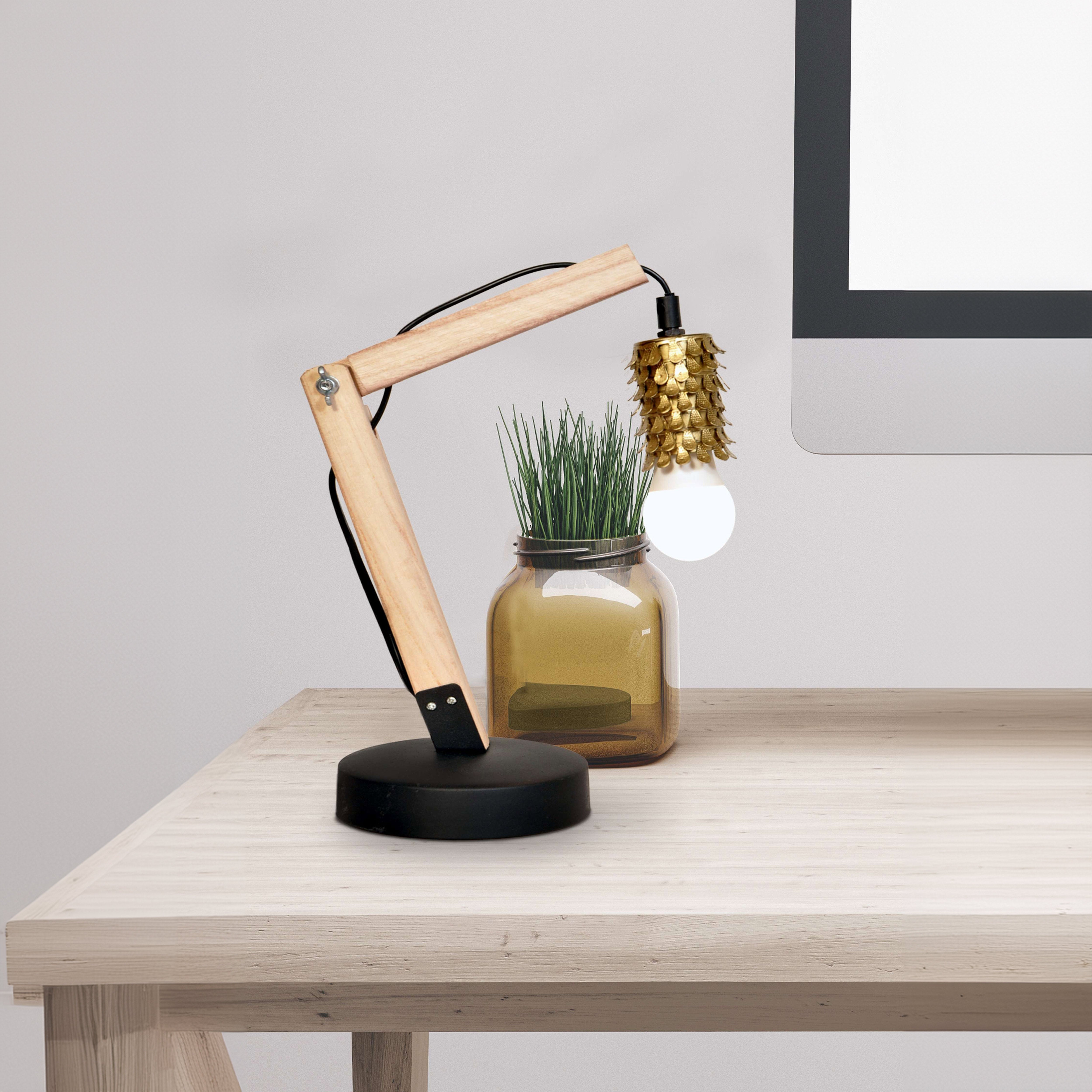 Überzeugen Sie sich von der ansprechenden Optik dieser schönen Tischlampe. Die hochwertige Materialkombination aus Holz und Metall und die ausgezeichnete Verarbeitung sorgen für das unnachahmliche Wohngefühl, das die Lampe vermittelt. Das Holz des Gestells harmoniert optimal mit dem runden Sockel und der schlichten Lampenfassung, die für E27-Leuchtmittel geeignet ist. Genießen Sie den Komfort dieser Lampe mit all seinen Vorteilen: Langlebigkeit, leichte Pflege und langanhaltende Freude am schlichten Design. So erfüllt sie alle Ansprüche einer modernen Wohneinrichtung. Schaffen Sie einen Logenplatz für Ihr neues Lieblingsstück und zeigen Sie, was in Ihrem Zuhause steckt. Die edle Tischlampe mit modernen Details lockert jeden Wohnstil gekonnt auf, egal ob modern, klassisch oder extraordinär. Sie eignet sich zudem gut als Schreibtischlampe.