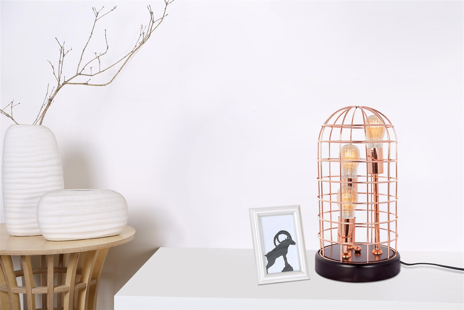 Die ausgefallene Vintage-Tischlampe aus Metall besticht durch ihr elegantes Finish in Kupfer und das Vogelkäfig-Design. Sie ist der absolute Hingucker in jedem Wohnraum. Die offene Gestaltung lässt das Licht der dreiflammigen Lampe hell durch den Raum strahlen. Die Tischlampe ist perfekt für Menschen mit einem exquisiten Geschmack. Die schlichte Eleganz lässt sich wunderbar mit verschiedenen Einrichtungsstilen kombinieren. Drücken Sie Ihre Persönlichkeit mit der auffallend schönen Vintage-Tischlampe aus und ergänzen Sie den Look eines jeden Raumes um einen Hauch Nostalgie.