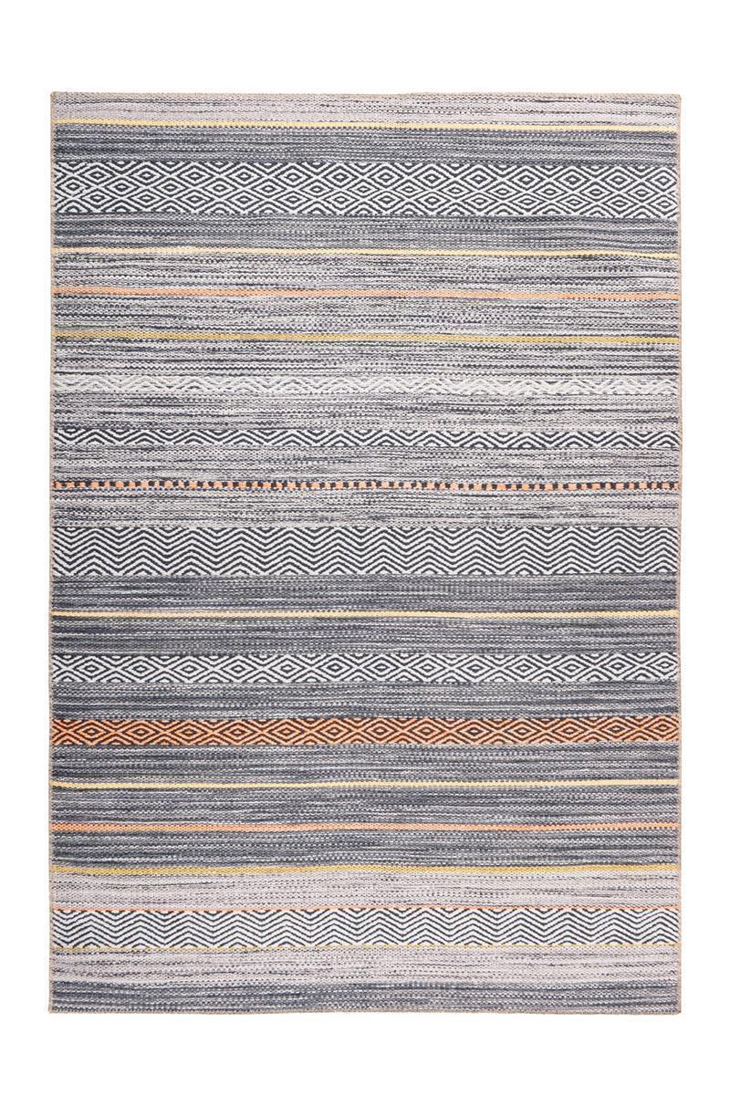 Dieser Flachflorteppich vereint ein attraktives Design mit Relief-Muster und eine dezente Farbgestaltung miteinander. Verleihen Sie Ihrem Zuhause einen modernen Look, indem Sie den stilvollen Teppich mit farbenfrohen Kissen, edlen Wohnaccessoires und glanzvollen Dekoartikeln kombinieren. Besonders gut eignen sich Materialien in Gold, Bronze und Silber oder edle Variationen in Samt, Seide oder Leder. Kreieren Sie ein prunkvolles Gesamtambiente mit stilvollen Highlights, sodass Sie und Ihre Besucher sich rundum wohlfühlen können.