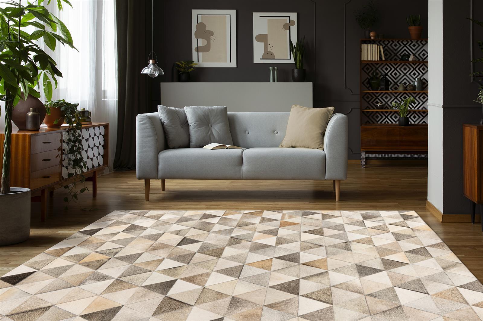 Mit seiner charmanten Erscheinung wertet dieser Teppich Innenräume im Handumdrehen auf. Die zusammen genähten Lederstücke sorgen für eine einzigartige Lederoptik und fügen sich so zu einem Unikat zusammen. Das entstehende Gesamtbild hat Charakter dank der unterschiedlichen Nuancen des Materials. Stilvoll und unaufdringlich unterstreicht diese Einmaligkeit eines jeden Stückes die Individualität des Besitzers. Die angewandte Kunst hat bereits seit der Antike bestand und tritt nun in modernen Gewandt erneut in Erscheinung, um zu begeistern.