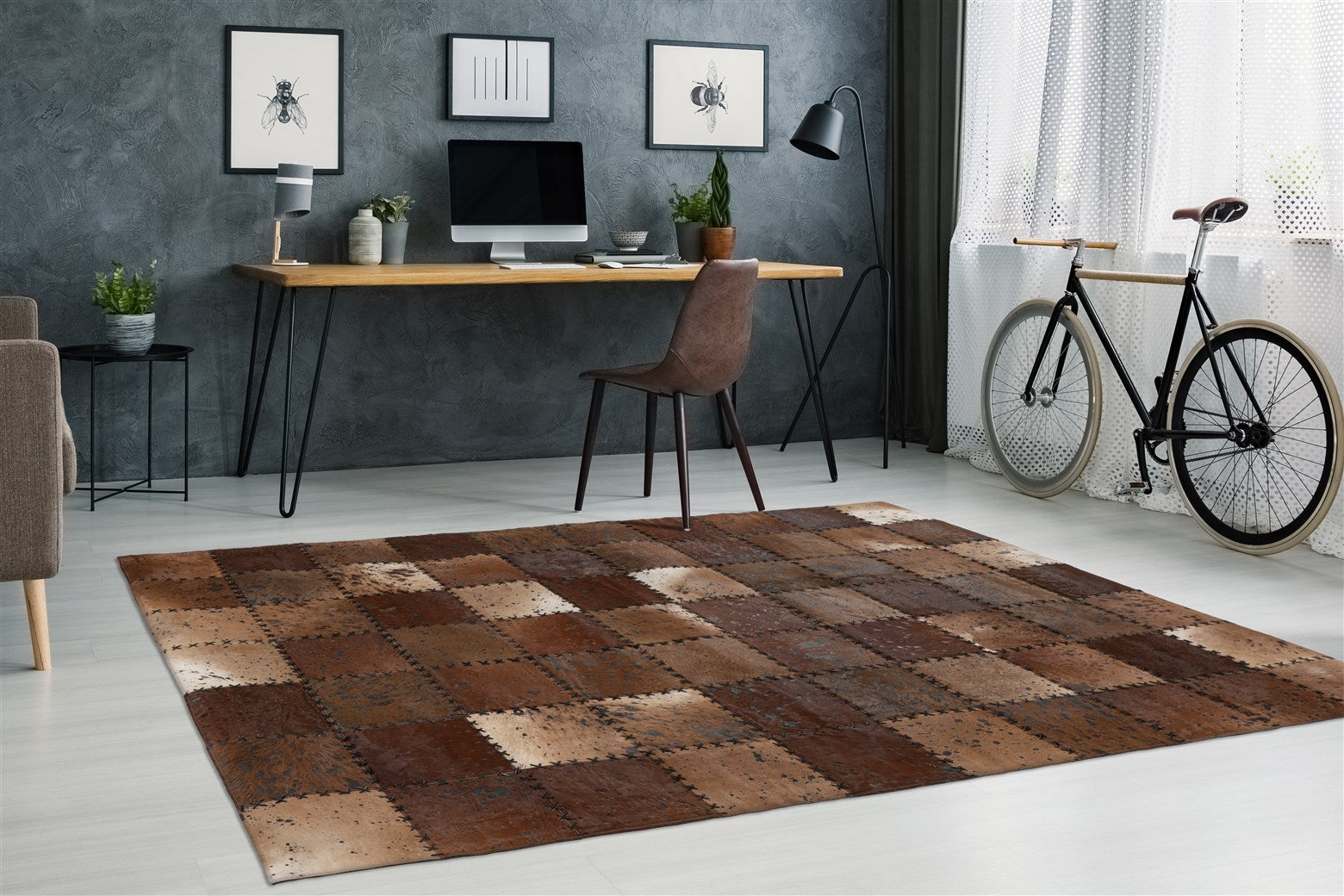 **Attraktiver Lederteppich mit Patchwork-Muster**