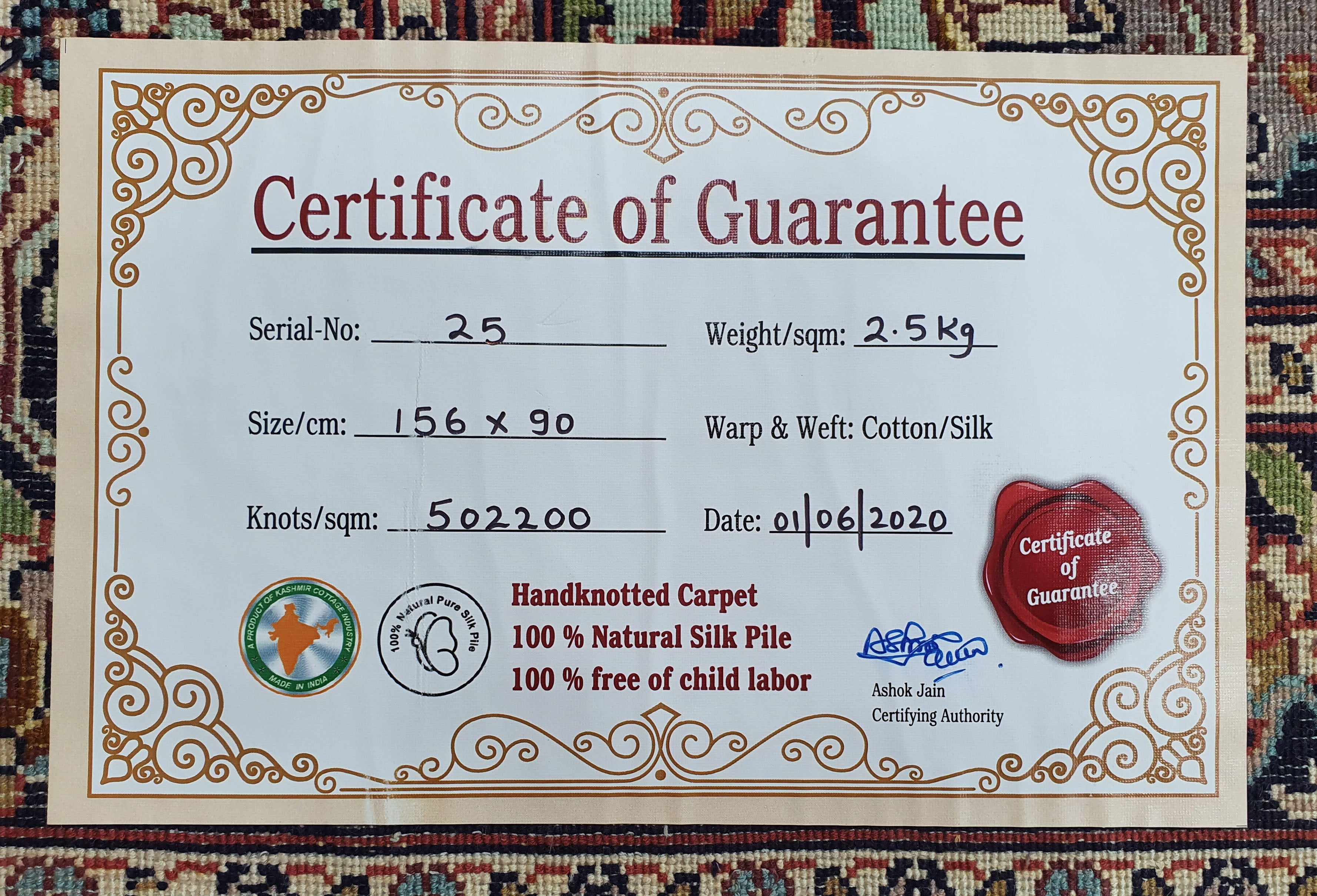 Dieser superweiche Qualitätsteppich ist echter Luxus unter Ihren Füßen, der verwöhnt und schmeichelt. Das stolze Gewicht zeugt von Langlebigkeit und macht den eleganten Teppich zu einem Spitzenprodukt. Ein handgewebter Teppich unterscheidet sich zu einem maschinell erstellten Teppich durch seine feinen Details und die kompexe Herstellungsart. Die faszinierende Bandbreite der Designs, die luxuriöse Geschmeidigkeit und Elastizität und die Lebhaftigkeit der Farben machen echte Seidenteppiche so unverkennbar. Durch das orientalische Design verleihen Sie Ihrem Zuhause einen bezaubernden fernöstlichen Look. Werten Sie Ihre Einrichtung auf und bestellen Sie sich Ihren neuen Seidenteppich.