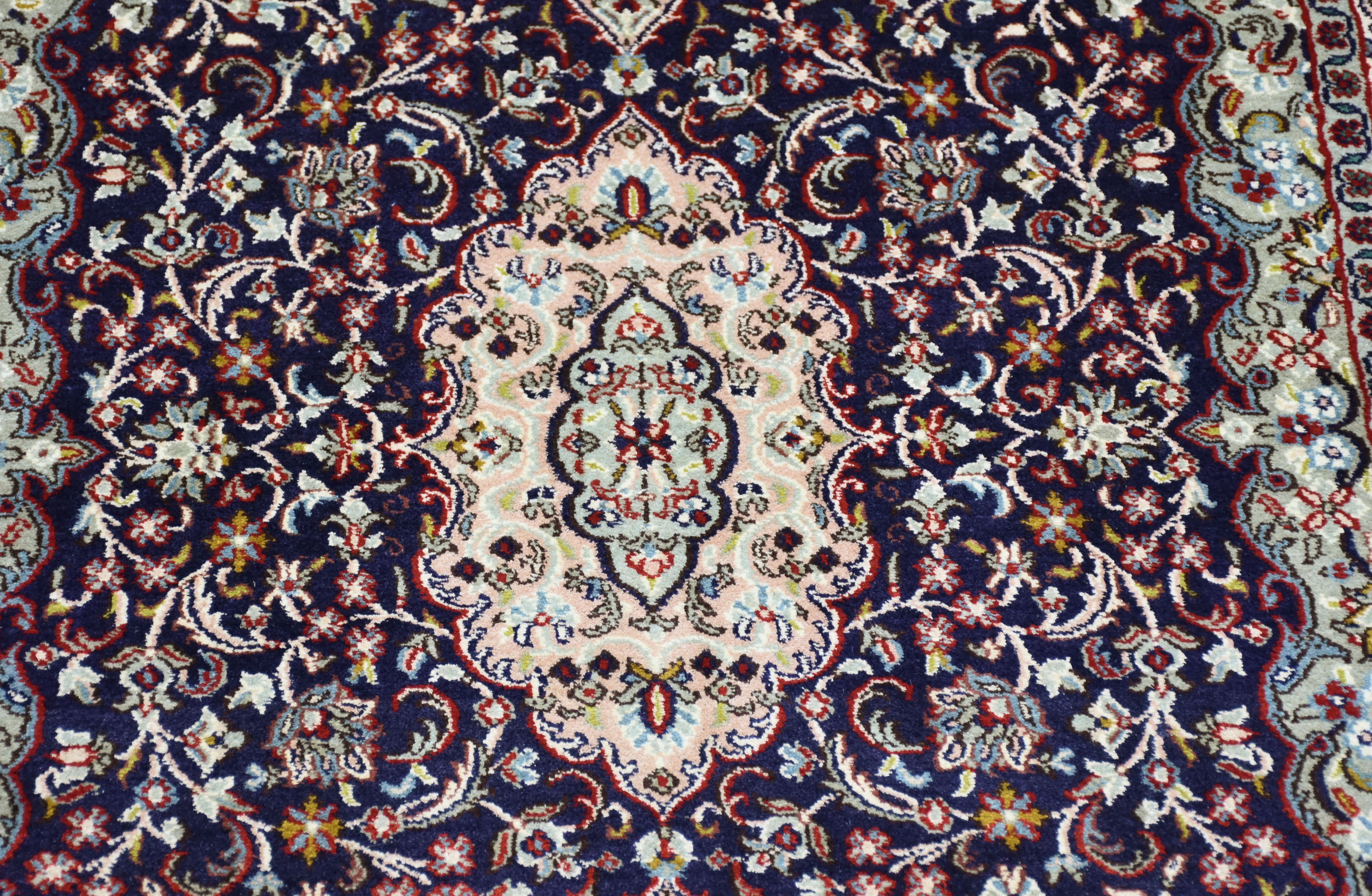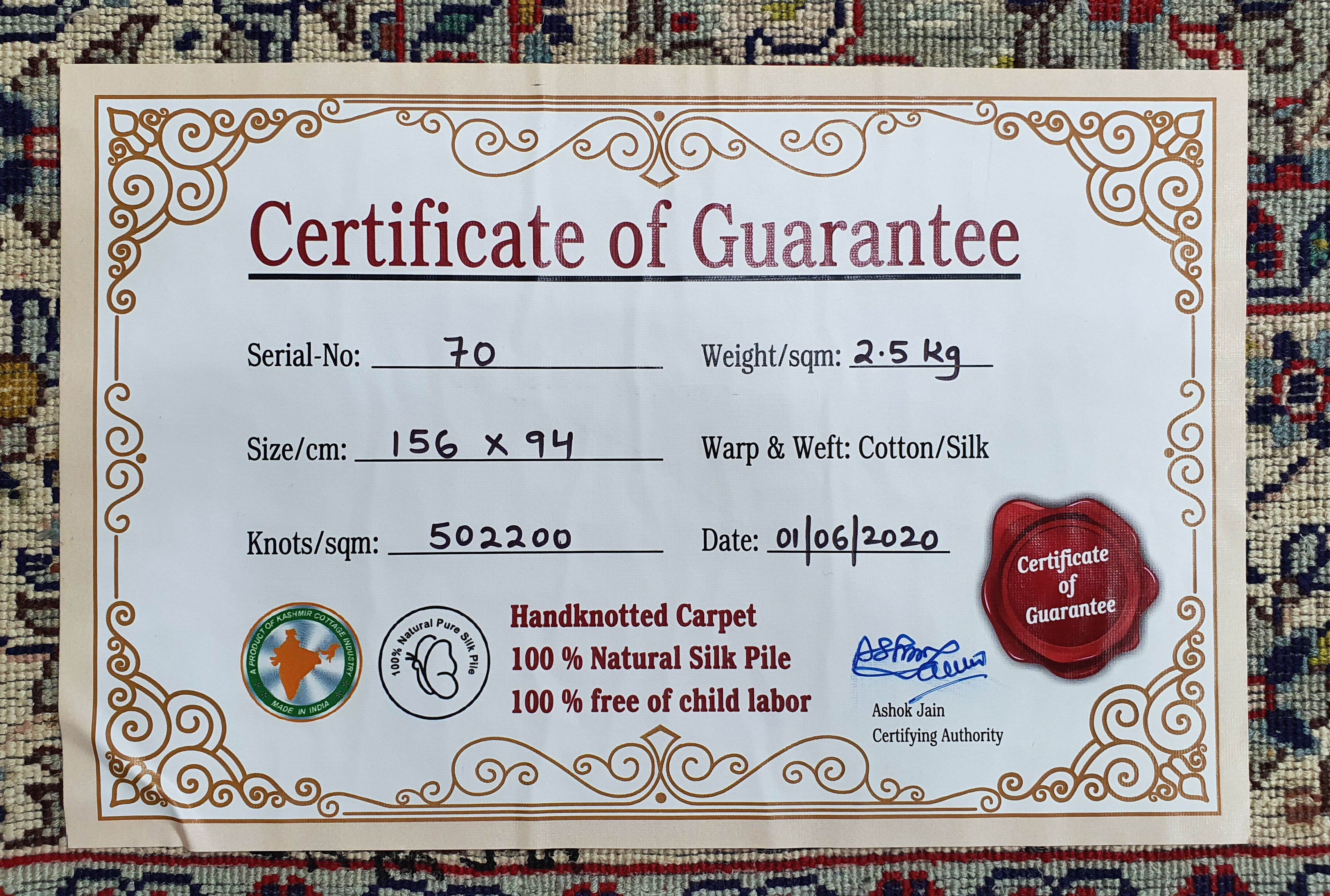 Dieser superweiche Qualitätsteppich ist echter Luxus unter Ihren Füßen, der verwöhnt und schmeichelt. Das stolze Gewicht zeugt von Langlebigkeit und macht den eleganten Teppich zu einem Spitzenprodukt. Ein handgewebter Teppich unterscheidet sich zu einem maschinell erstellten Teppich durch seine feinen Details und die kompexe Herstellungsart. Die faszinierende Bandbreite der Designs, die luxuriöse Geschmeidigkeit und Elastizität und die Lebhaftigkeit der Farben machen echte Seidenteppiche so unverkennbar. Durch das orientalische Design verleihen Sie Ihrem Zuhause einen bezaubernden fernöstlichen Look. Werten Sie Ihre Einrichtung auf und bestellen Sie sich Ihren neuen Seidenteppich.