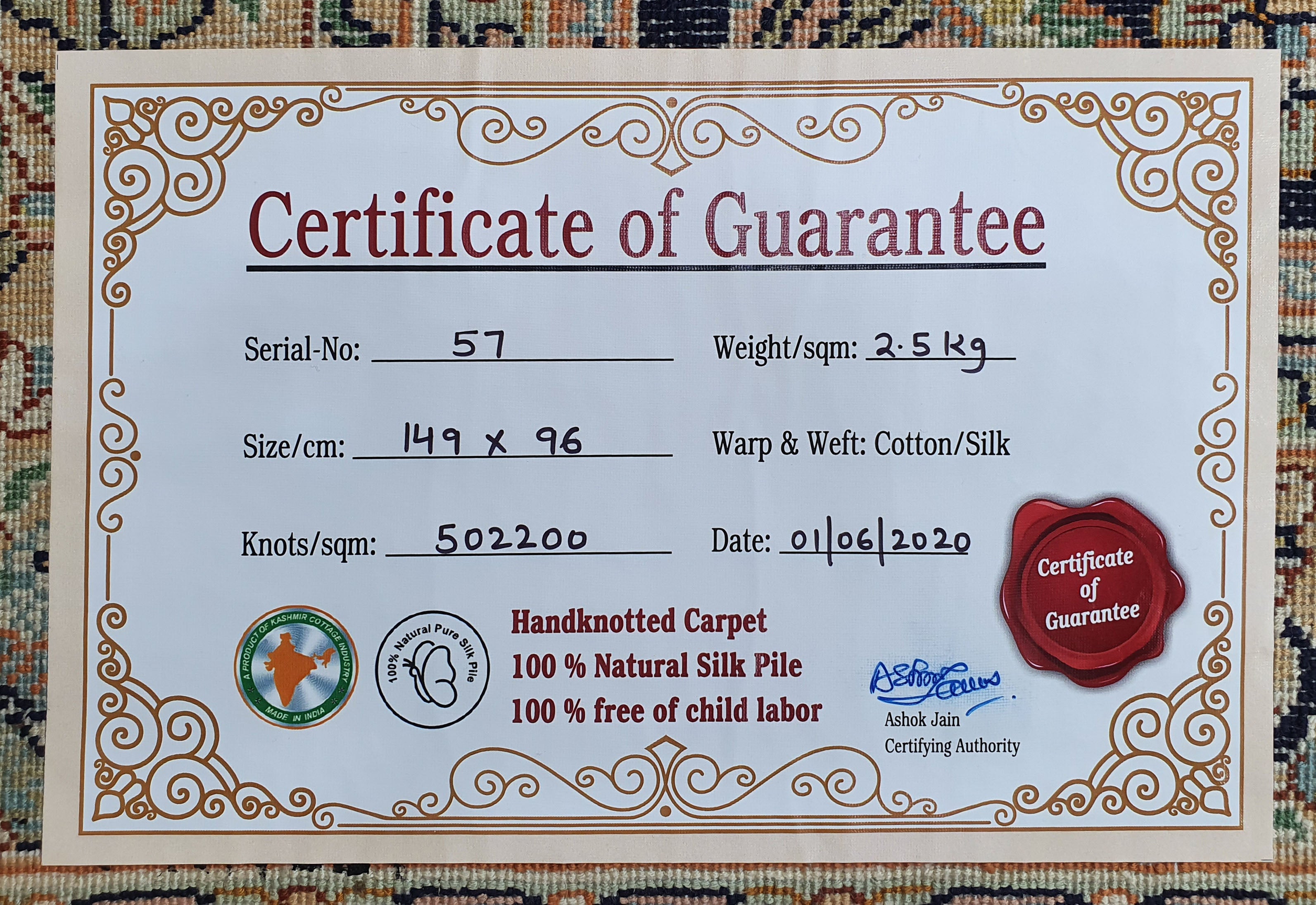 Dieser superweiche Qualitätsteppich ist echter Luxus unter Ihren Füßen, der verwöhnt und schmeichelt. Das stolze Gewicht zeugt von Langlebigkeit und macht den eleganten Teppich zu einem Spitzenprodukt. Ein handgewebter Teppich unterscheidet sich zu einem maschinell erstellten Teppich durch seine feinen Details und die kompexe Herstellungsart. Die faszinierende Bandbreite der Designs, die luxuriöse Geschmeidigkeit und Elastizität und die Lebhaftigkeit der Farben machen echte Seidenteppiche so unverkennbar. Durch das orientalische Design verleihen Sie Ihrem Zuhause einen bezaubernden fernöstlichen Look. Werten Sie Ihre Einrichtung auf und bestellen Sie sich Ihren neuen Seidenteppich.