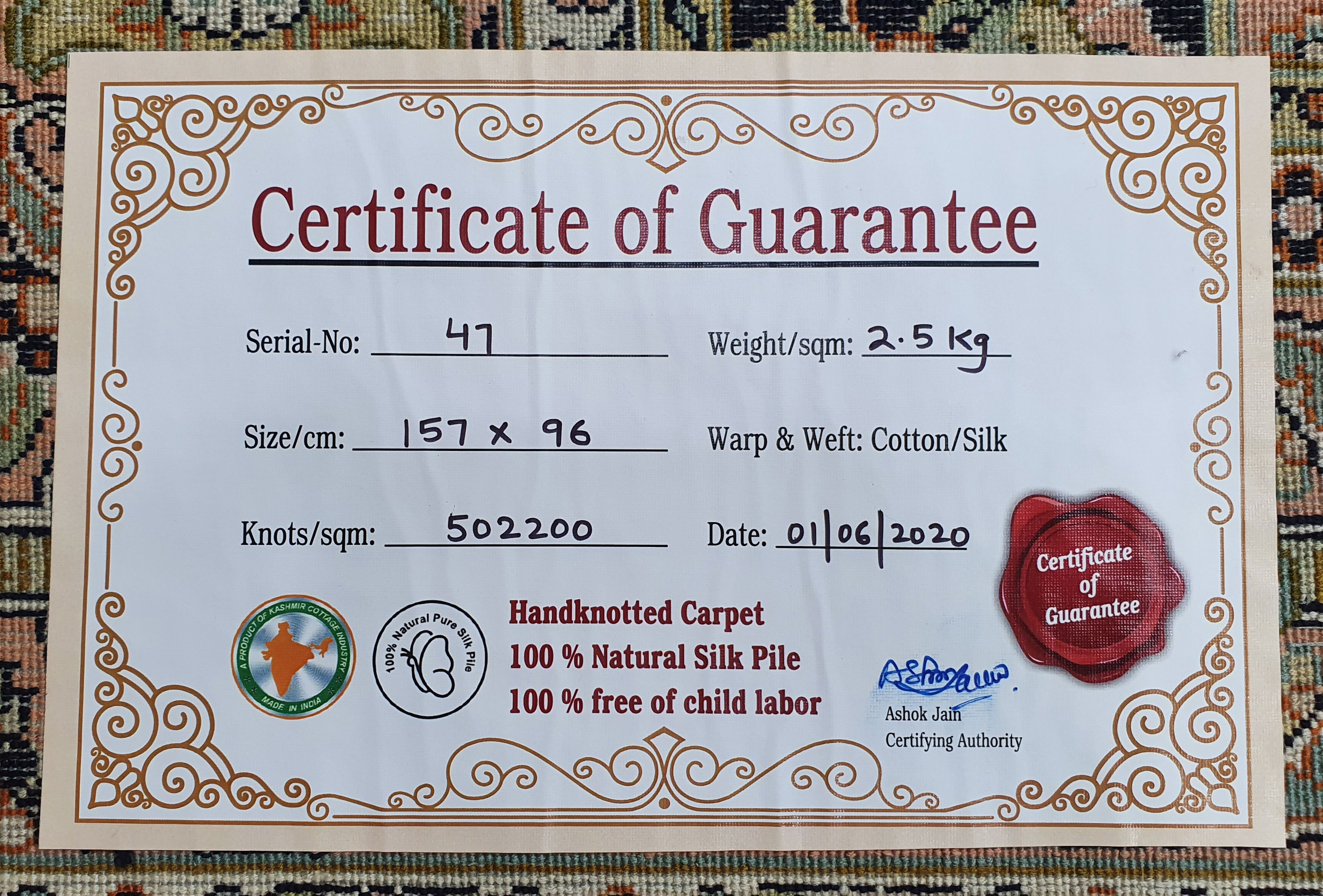 Dieser superweiche Qualitätsteppich ist echter Luxus unter Ihren Füßen, der verwöhnt und schmeichelt. Das stolze Gewicht zeugt von Langlebigkeit und macht den eleganten Teppich zu einem Spitzenprodukt. Ein handgewebter Teppich unterscheidet sich zu einem maschinell erstellten Teppich durch seine feinen Details und die kompexe Herstellungsart. Die faszinierende Bandbreite der Designs, die luxuriöse Geschmeidigkeit und Elastizität und die Lebhaftigkeit der Farben machen echte Seidenteppiche so unverkennbar. Durch das orientalische Design verleihen Sie Ihrem Zuhause einen bezaubernden fernöstlichen Look. Werten Sie Ihre Einrichtung auf und bestellen Sie sich Ihren neuen Seidenteppich.