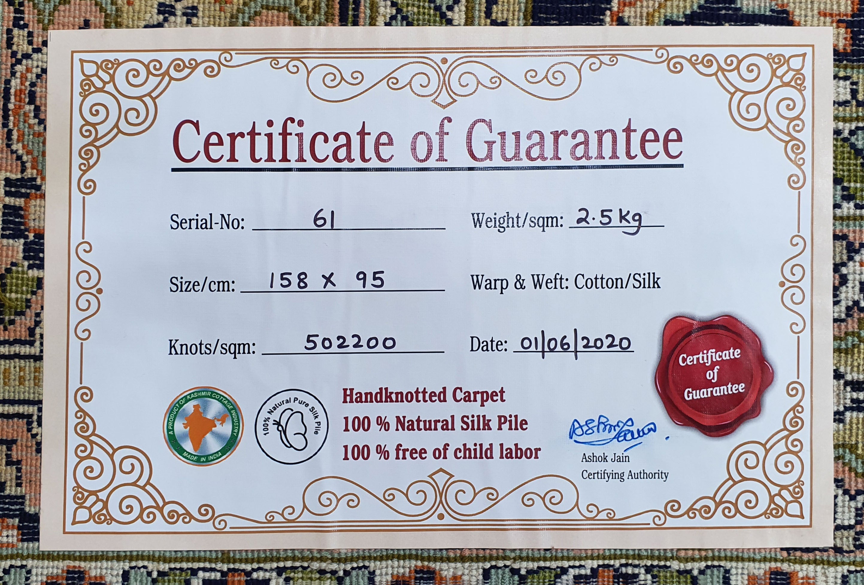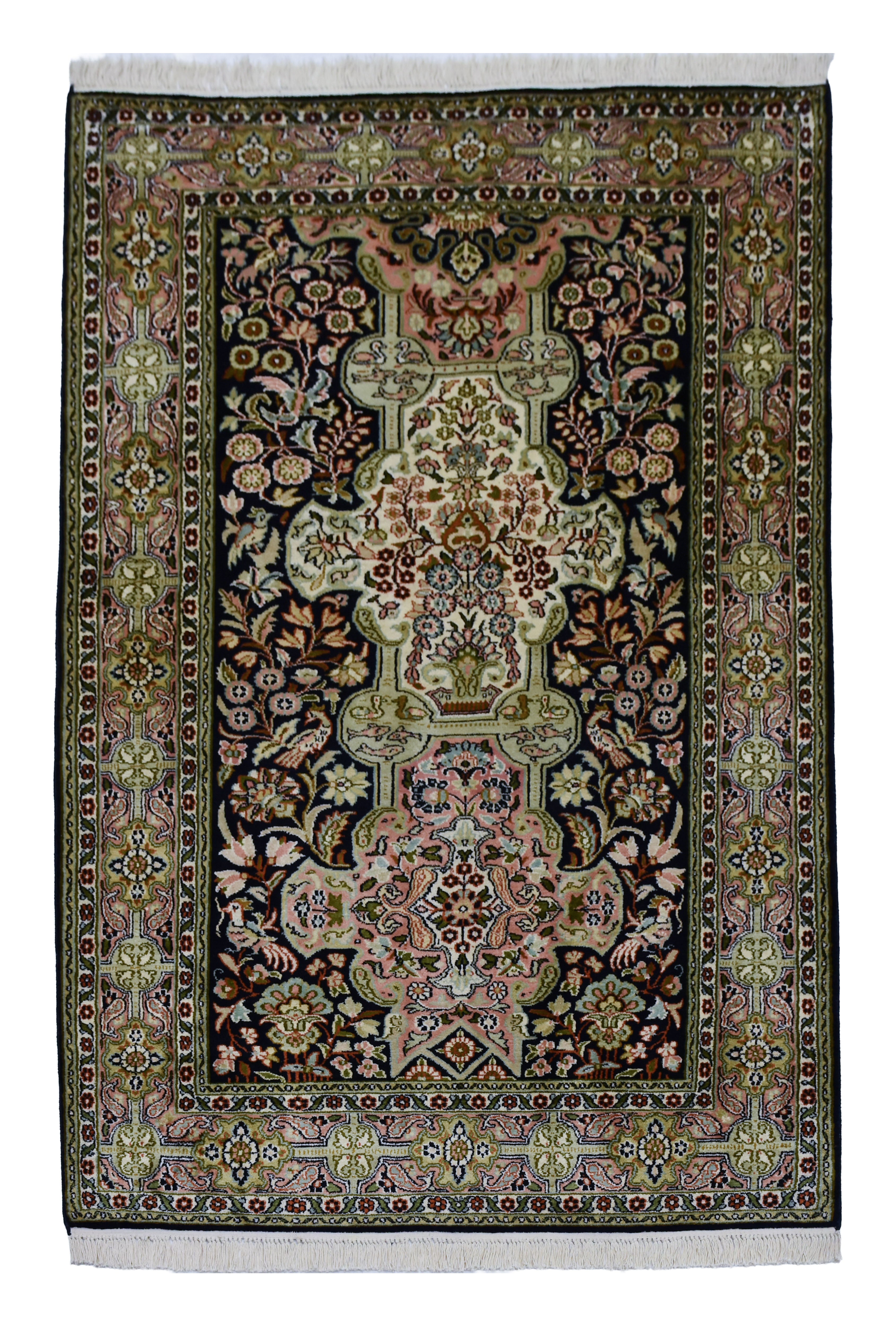 Dieser superweiche Qualitätsteppich ist echter Luxus unter Ihren Füßen, der verwöhnt und schmeichelt. Das stolze Gewicht zeugt von Langlebigkeit und macht den eleganten Teppich zu einem Spitzenprodukt. Ein handgewebter Teppich unterscheidet sich zu einem maschinell erstellten Teppich durch seine feinen Details und die kompexe Herstellungsart. Die faszinierende Bandbreite der Designs, die luxuriöse Geschmeidigkeit und Elastizität und die Lebhaftigkeit der Farben machen echte Seidenteppiche so unverkennbar. Durch das orientalische Design verleihen Sie Ihrem Zuhause einen bezaubernden fernöstlichen Look. Werten Sie Ihre Einrichtung auf und bestellen Sie sich Ihren neuen Seidenteppich.
