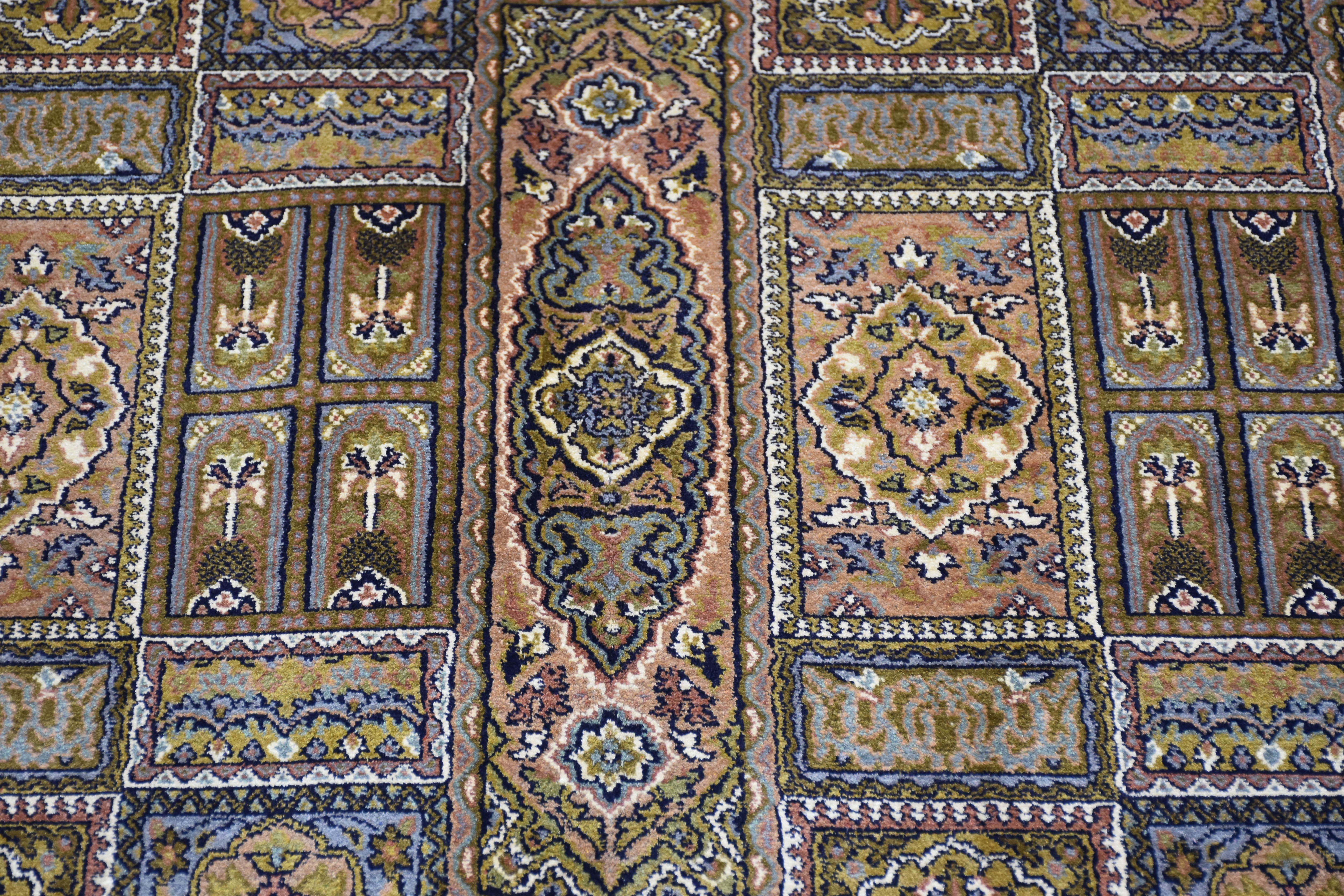 **Teppich mit Orient-Design** Dieser superweiche Qualitätsteppich ist echter Luxus unter Ihren Füßen, der verwöhnt und schmeichelt. Das stolze Gewicht zeugt von Langlebigkeit und macht den eleganten Teppich zu einem Spitzenprodukt. Ein handgewebter Teppich unterscheidet sich zu einem maschinell erstellten Teppich durch seine feinen Details und die kompexe Herstellungsart. Die faszinierende Bandbreite der Designs, die luxuriöse Geschmeidigkeit und Elastizität und die Lebhaftigkeit der Farben machen echte Seidenteppiche so unverkennbar. Durch das orientalische Design verleihen Sie Ihrem Zuhause einen bezaubernden fernöstlichen Look. Werten Sie Ihre Einrichtung auf und bestellen Sie sich Ihren neuen Seidenteppich.