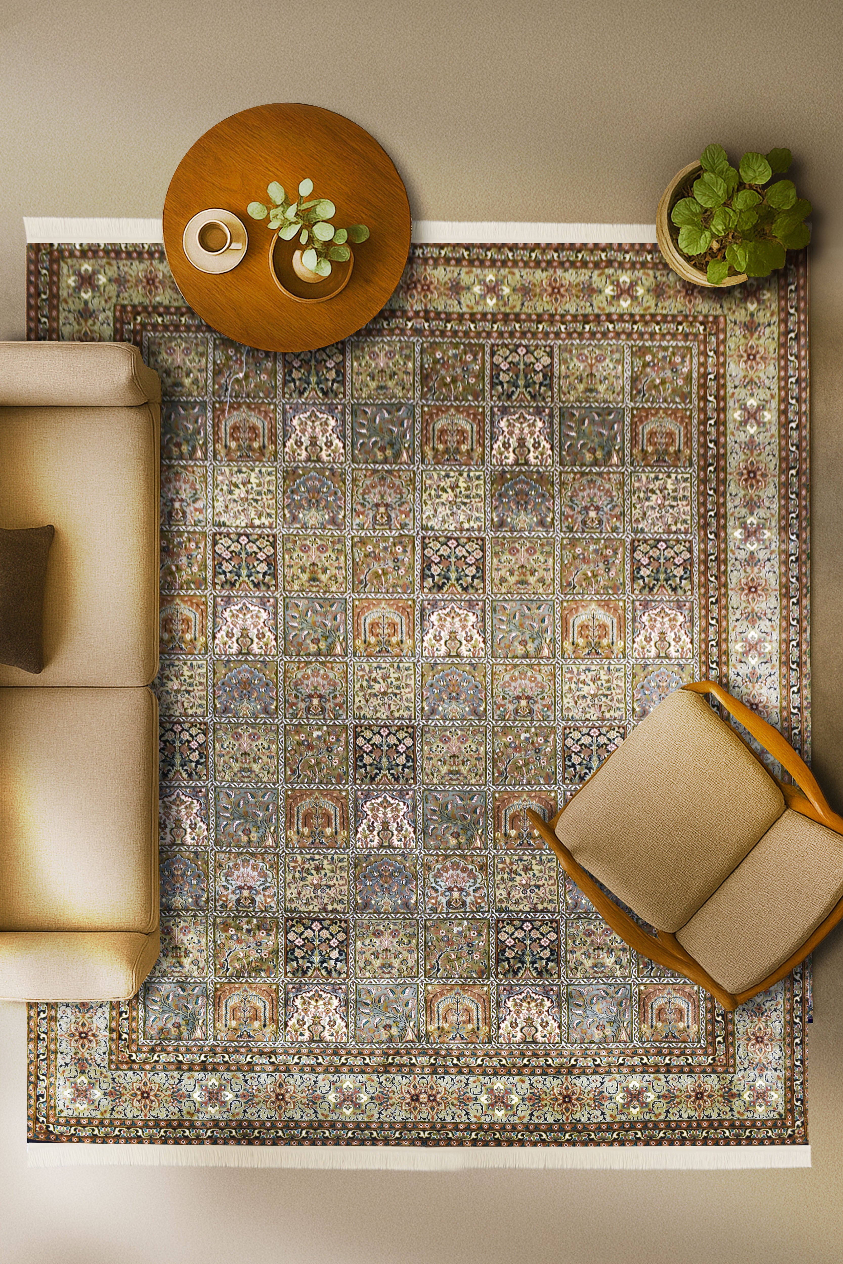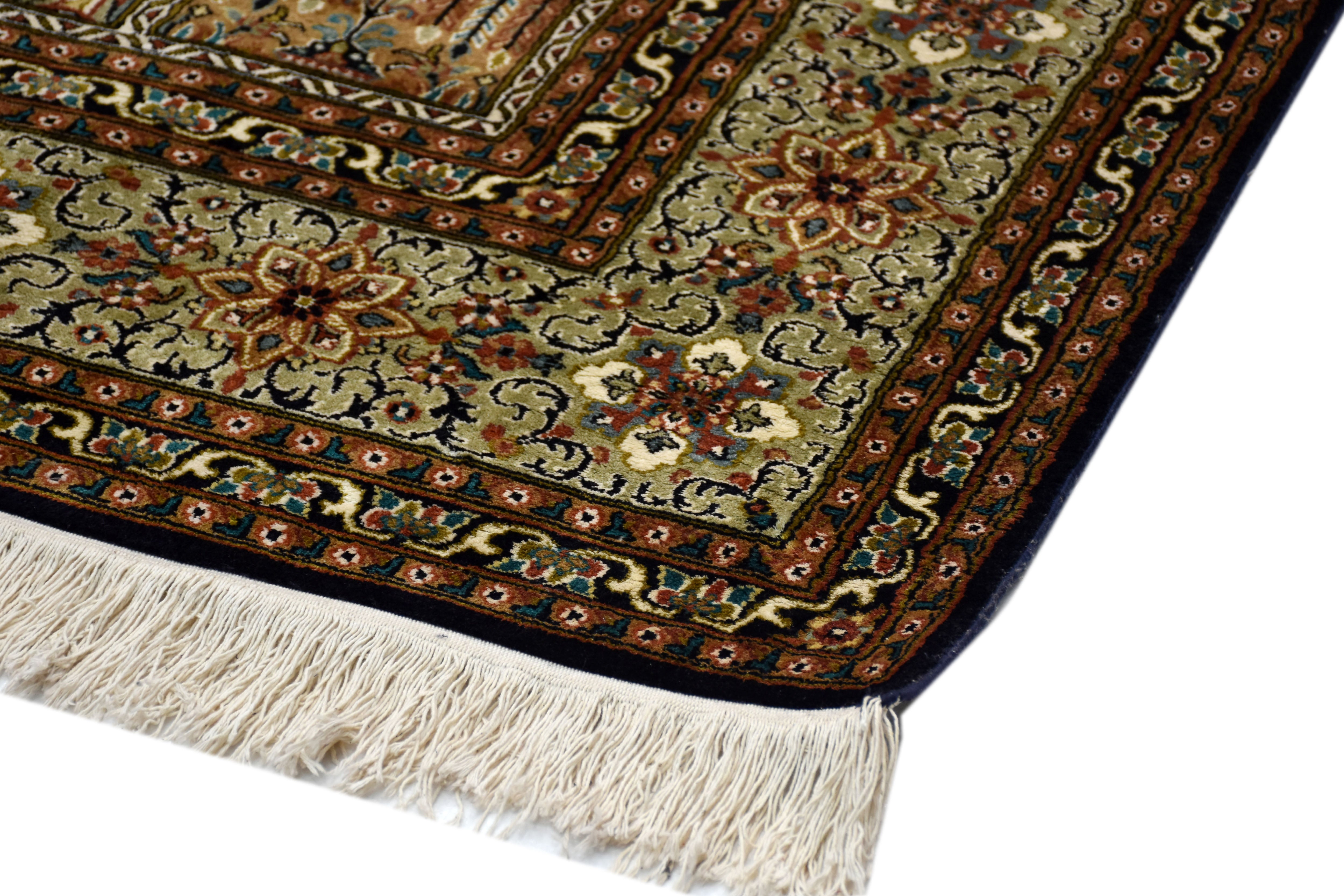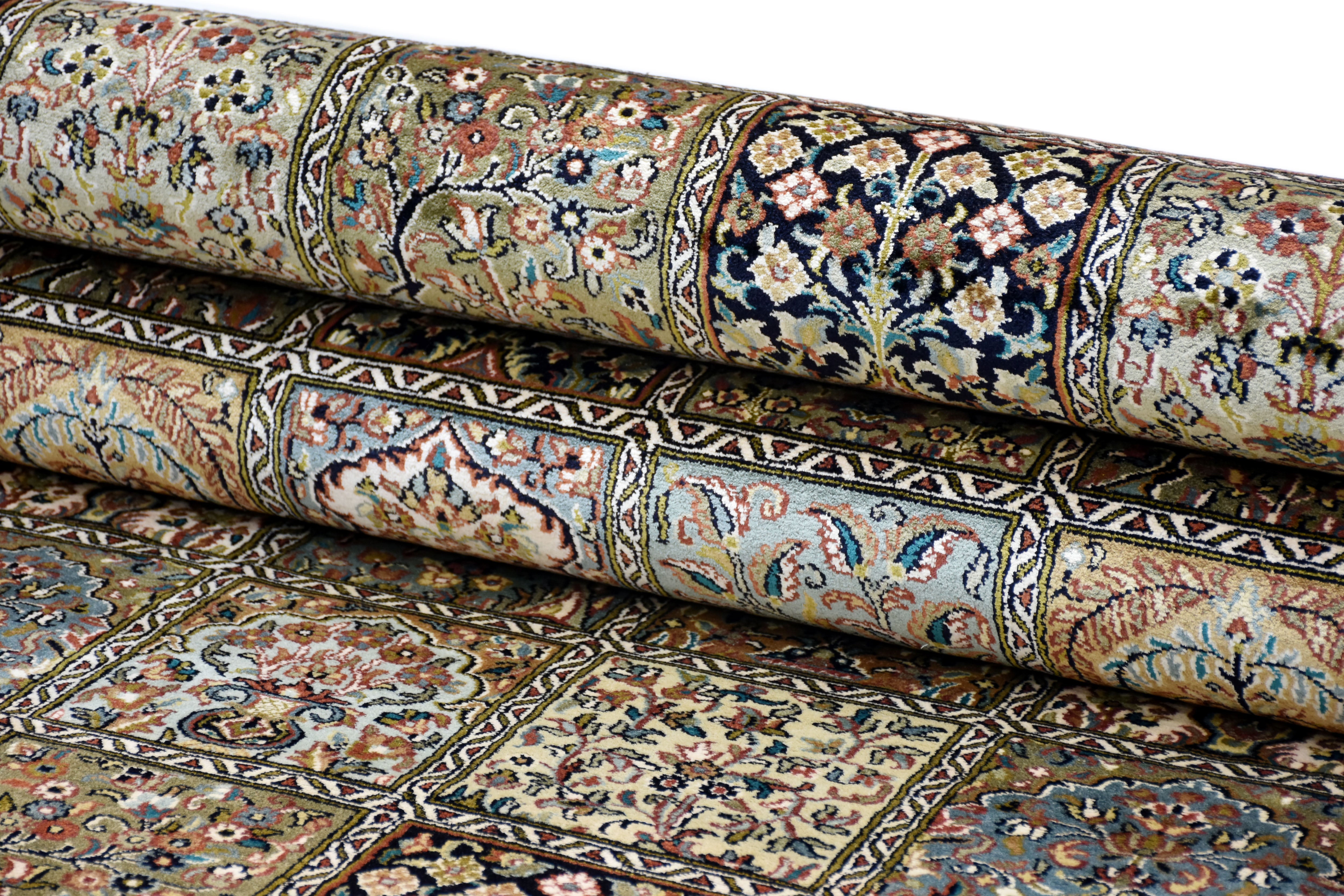 Dieser superweiche Qualitätsteppich ist echter Luxus unter Ihren Füßen, der verwöhnt und schmeichelt. Das stolze Gewicht zeugt von Langlebigkeit und macht den eleganten Teppich zu einem Spitzenprodukt. Ein handgewebter Teppich unterscheidet sich zu einem maschinell erstellten Teppich durch seine feinen Details und die komplexe Herstellungsart. Die faszinierende Bandbreite der Designs, die luxuriöse Geschmeidigkeit und Elastizität und die Lebhaftigkeit der Farben machen echte Seidenteppiche so unverkennbar. Durch das orientalische Design verleihen Sie Ihrem Zuhause einen bezaubernden fernöstlichen Look. Werten Sie Ihre Einrichtung auf und bestellen Sie sich Ihren neuen Seidenteppich.