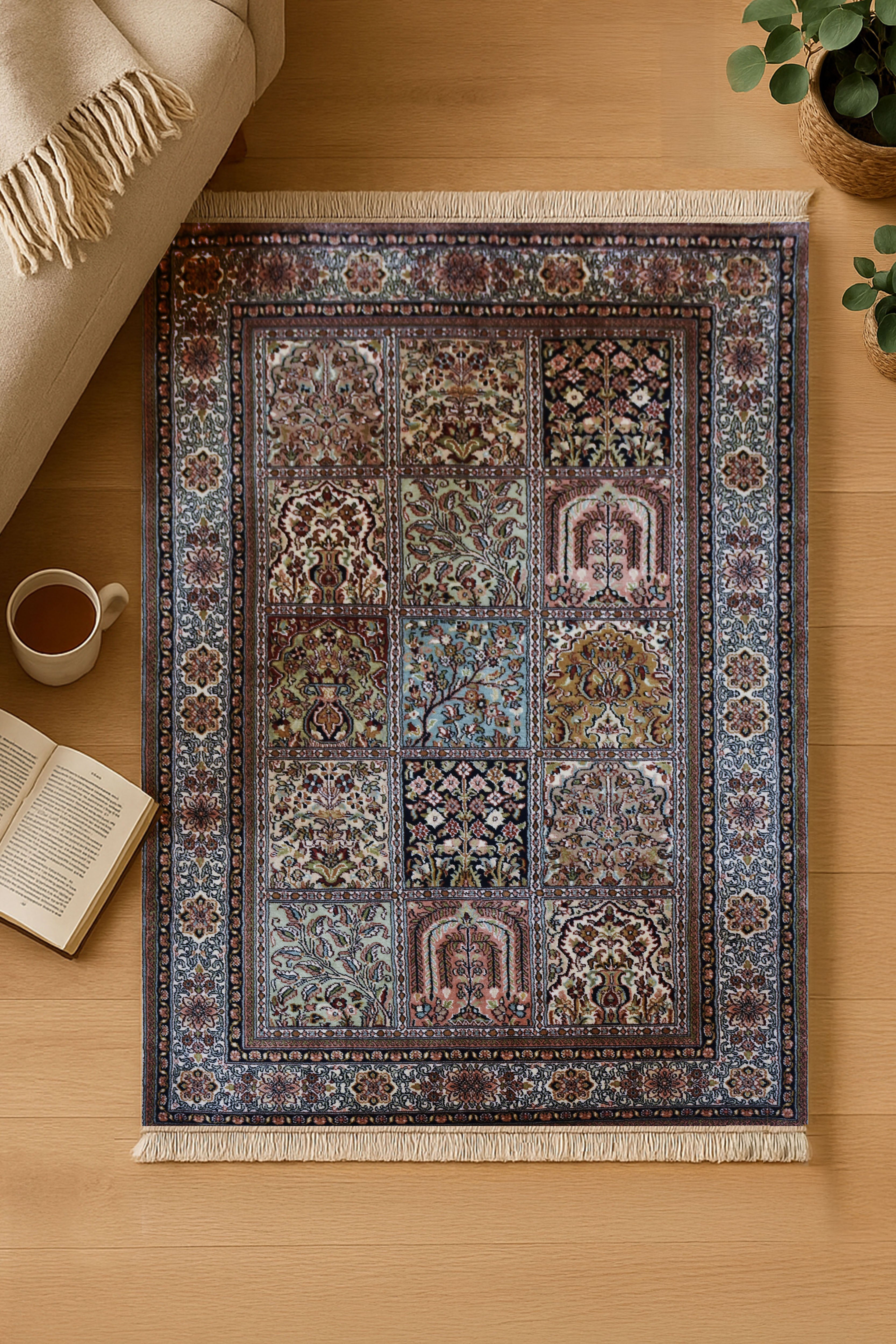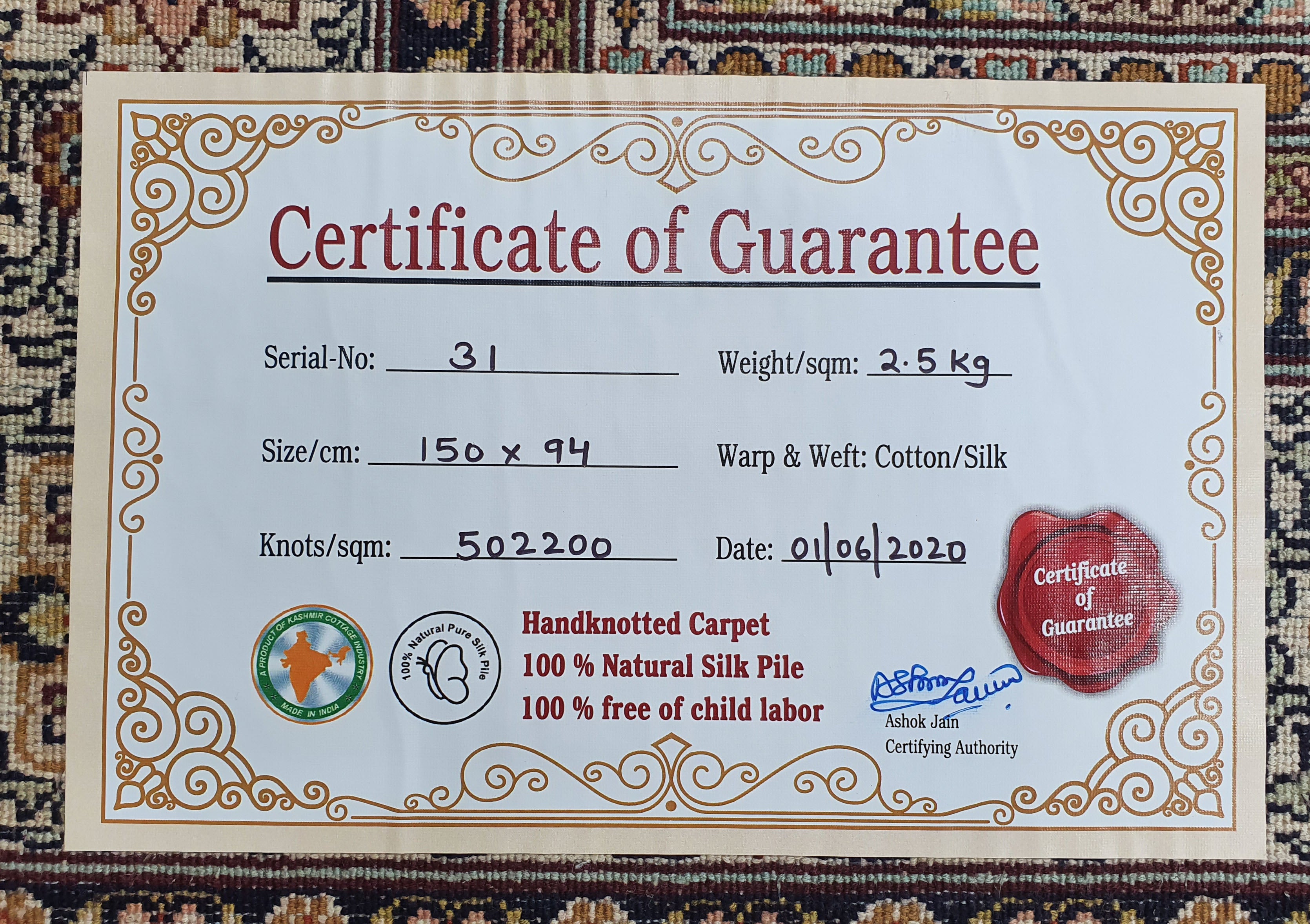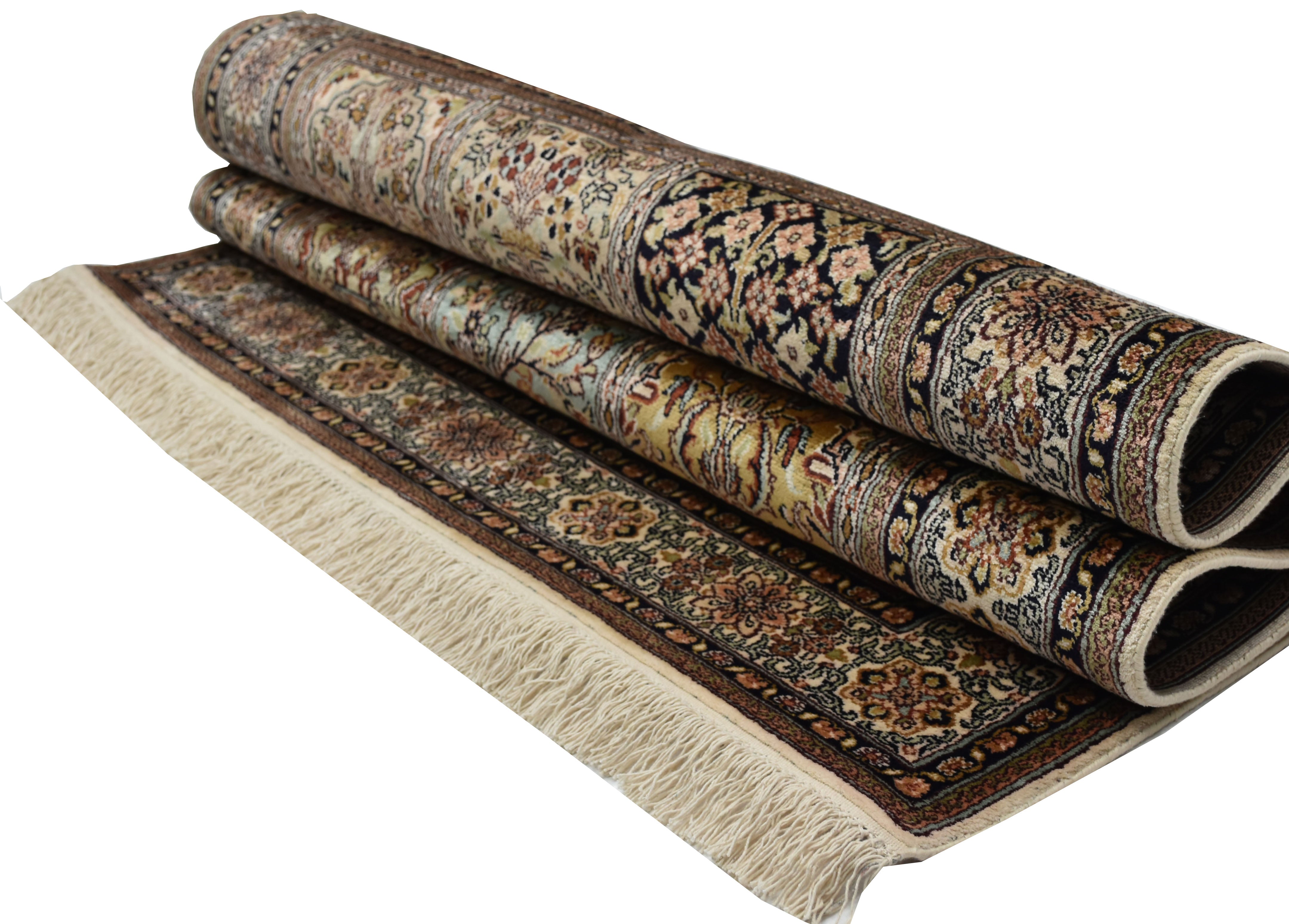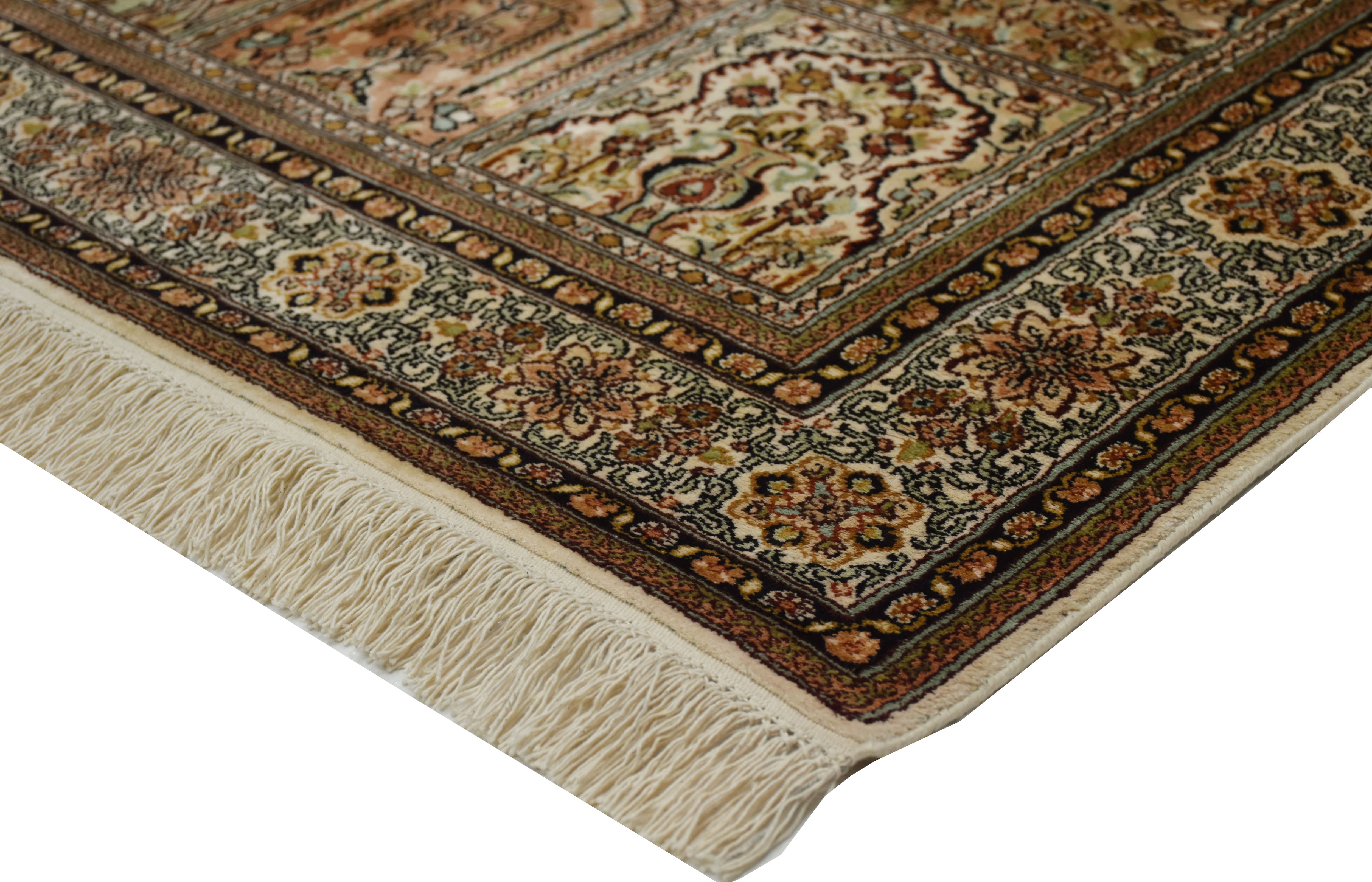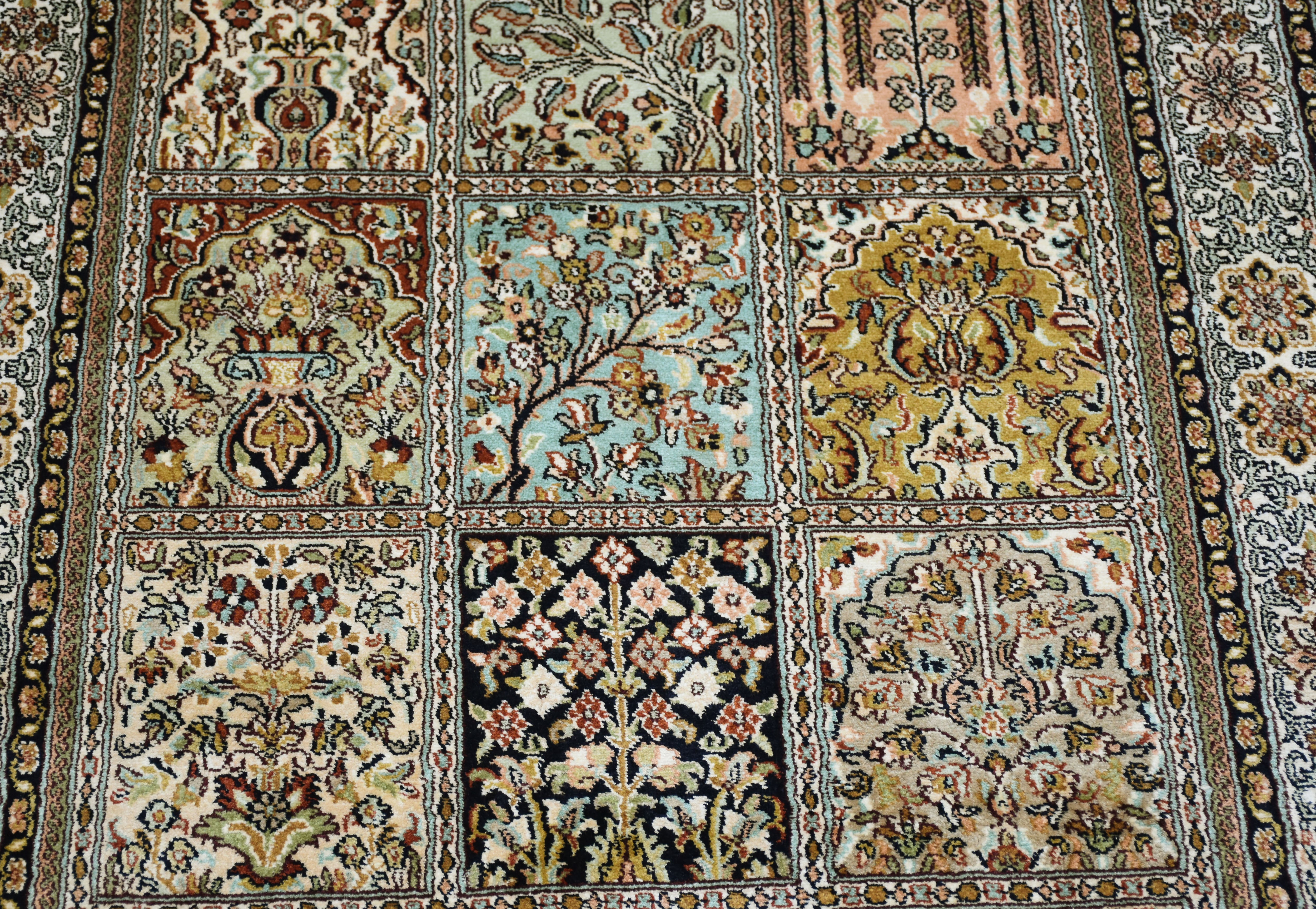 Dieser superweiche Qualitätsteppich ist echter Luxus unter Ihren Füßen, der verwöhnt und schmeichelt. Das stolze Gewicht zeugt von Langlebigkeit und macht den eleganten Teppich zu einem Spitzenprodukt. Ein handgewebter Teppich unterscheidet sich zu einem maschinell erstellten Teppich durch seine feinen Details und die komplexe Herstellungsart. Die faszinierende Bandbreite der Designs, die luxuriöse Geschmeidigkeit und Elastizität und die Lebhaftigkeit der Farben machen echte Seidenteppiche so unverkennbar. Durch das orientalische Design verleihen Sie Ihrem Zuhause einen bezaubernden fernöstlichen Look. Werten Sie Ihre Einrichtung auf und bestellen Sie sich Ihren neuen Seidenteppich.