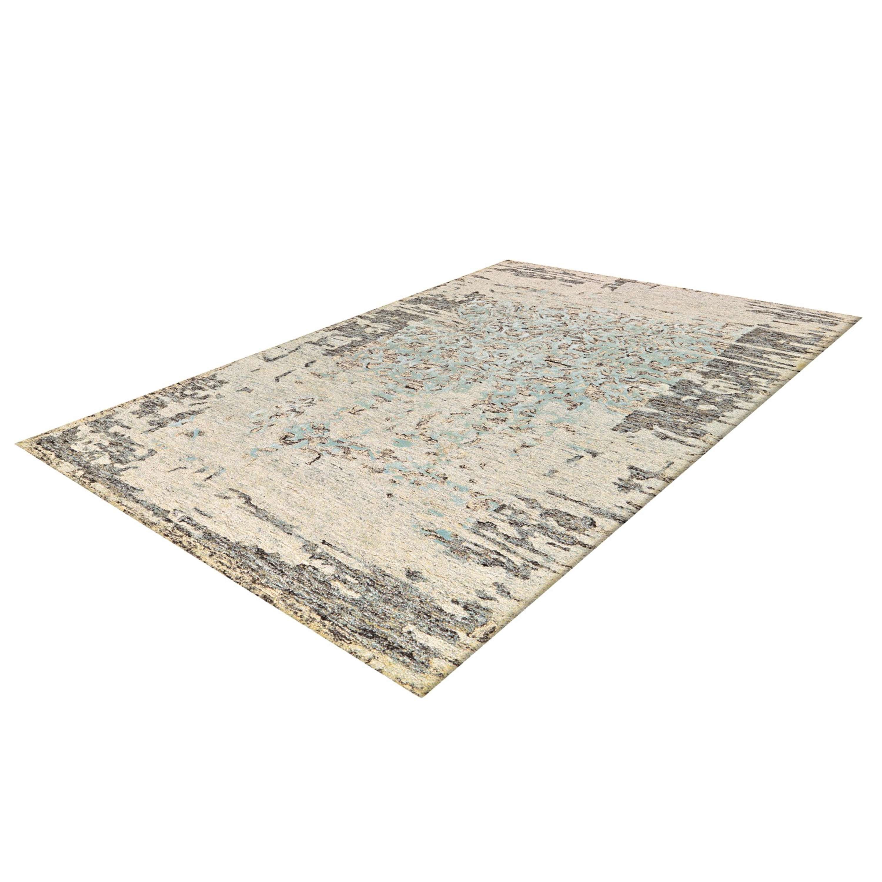 **Kurzflorteppich im Shabby Chic-Design** Dieser handgetuftete Teppich besticht durch das attraktive Shabby Chic-Design. Die auf alt gemachte Oberfläche zeichnet sich durch die verwaschene Optik und die dezenten Farben aus. Moderne oder klassische Wohneinrichtungen können durch den pflegeleichten Kurzflorteppich ideal ergänzt werden, um eine gemütliche Atmosphäre zu schaffen. Integriert in die Wohnlandschaft oder als Bodenbelag im Eingangsbereich wird der Teppich schnell zum elementaren Bestandteil Ihrer Einrichtung. Kombinieren Sie den Teppich mit Heimtextilien im Vintage- oder Shabby Chic-Design und schaffen Sie ein harmonisches Gesamtbild im Raum. Dekorative Gemälde und kunstvolle Spiegel sowie Holzmöbel lassen sich hervorragend in dieses Ambiente integrieren. Durch die Handfertigung kann es von Teppich zu Teppich zu Abweichungen in Farbe, Form und Muster kommen.