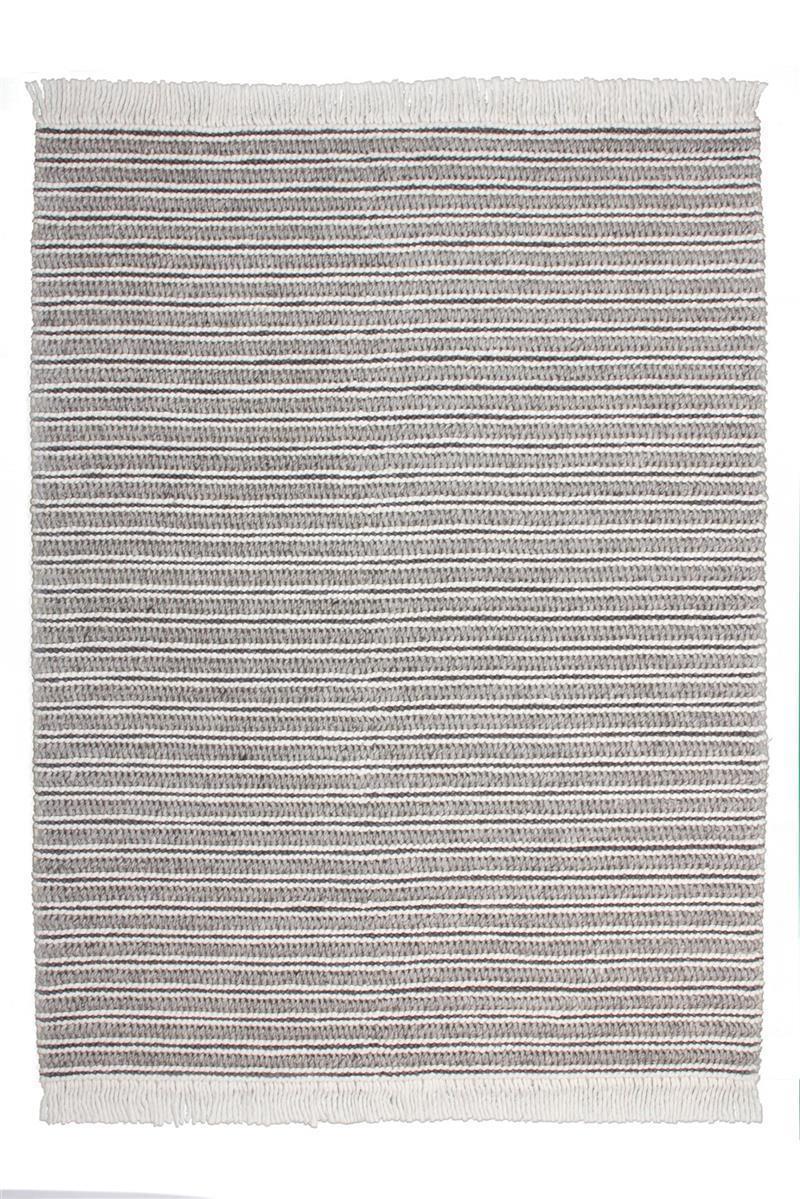 **Handgewebter Fransenteppich** Dieser Teppich passt in jede Einrichtung! Die dezent gehaltenen Naturtöne des flachgewebten Teppichs integrieren sich ideal in jeden Wohnstil, egal ob modern, rustikal oder besonders ausgefallen. Durch die langen grauen Fransen wird das attraktive Streifenmuster in harmonischen Farbtönen aus Natur und Grau komplettiert. Die auflockernden Fransen sorgen gleichzeitig für eine gemütliche Atmosphäre in der Umgebung. Die weiche Haptik aus 75 % Neuseeland-Wolle und 25 % Viskose ist auch barfuß sehr angenehm und zudem robust und pflegeleicht. Der Baumwollrücken verstärkt den Teppich. Mit dem Flachflorteppich mit Fransen erhalten Sie ein einzigartiges Unikat, denn bei Naturprodukten kann es material- und handarbeitsbedingt zu bis zu 30 % Abweichung vom Bild in Farbe und Form kommen. Dieser Fransenteppich ist genau die richtige Wahl für Naturverbundene und Liebhaber von klassischen und dezenten Designs. Damit für jeden Raum die passende Variante vorhanden ist, ist der Teppich in verschiedenen Größen bestellbar. Auch weitere Farben sind bei uns im Shop erhältlich.