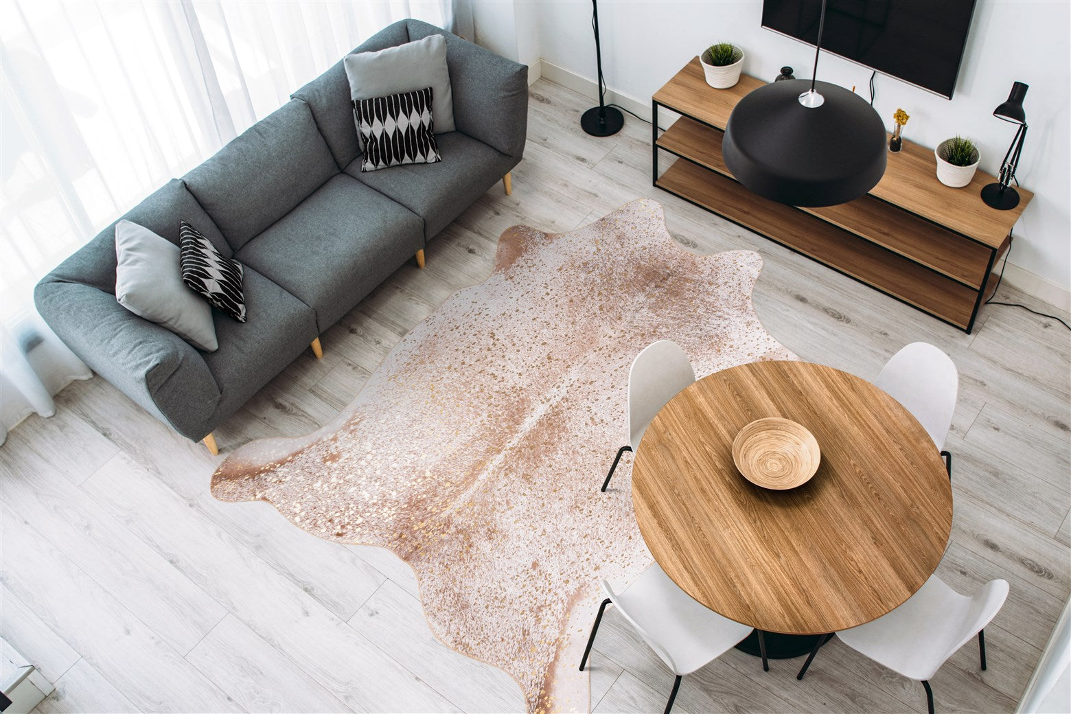 Werten Sie mit diesem modernen Teppich jeden Wohnraum stilecht auf. Die moderne Struktur und das filigrane Design machen den flachflorigen Teppich zu einem edlen Wohnaccessoire. Modernes Design trifft auf klassisches Material und kreiert eine wohnliche Atmosphäre. Stellen Sie Ihre Möbel und Dekoartikel mit dem Lederteppich in den Vordergrund, denn die Naturfarben integrieren sich ideal in jede bestehende Einrichtung.