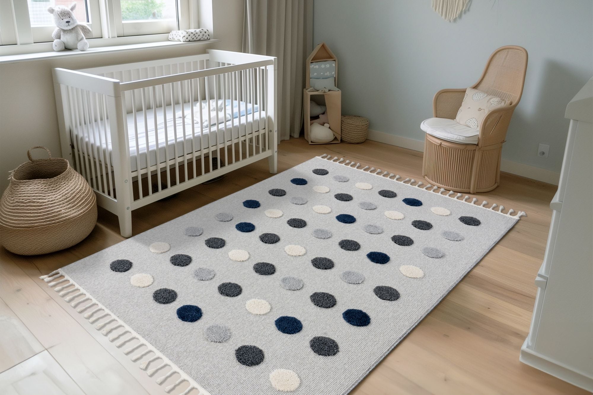 Der Fano 394 ist der perfekte Teppich für alle, die auf der Suche nach einem modernen und verspielten Design sind. Die graue Farbgebung und das gepunktete Muster verleihen deinem Raum eine gemütliche, aber dennoch stylische Atmosphäre. Der Kurzflor mit einer Florhöhe von 9 mm bietet Komfort und eine pflegeleichte Oberfläche. Mit einer Grammatur von 2200 g/m² und der maschinengewebten Qualität ist der Teppich besonders robust und langlebig. Ideal für verschiedene Raumgrößen, da er in mehreren Größenvariationen erhältlich ist.
