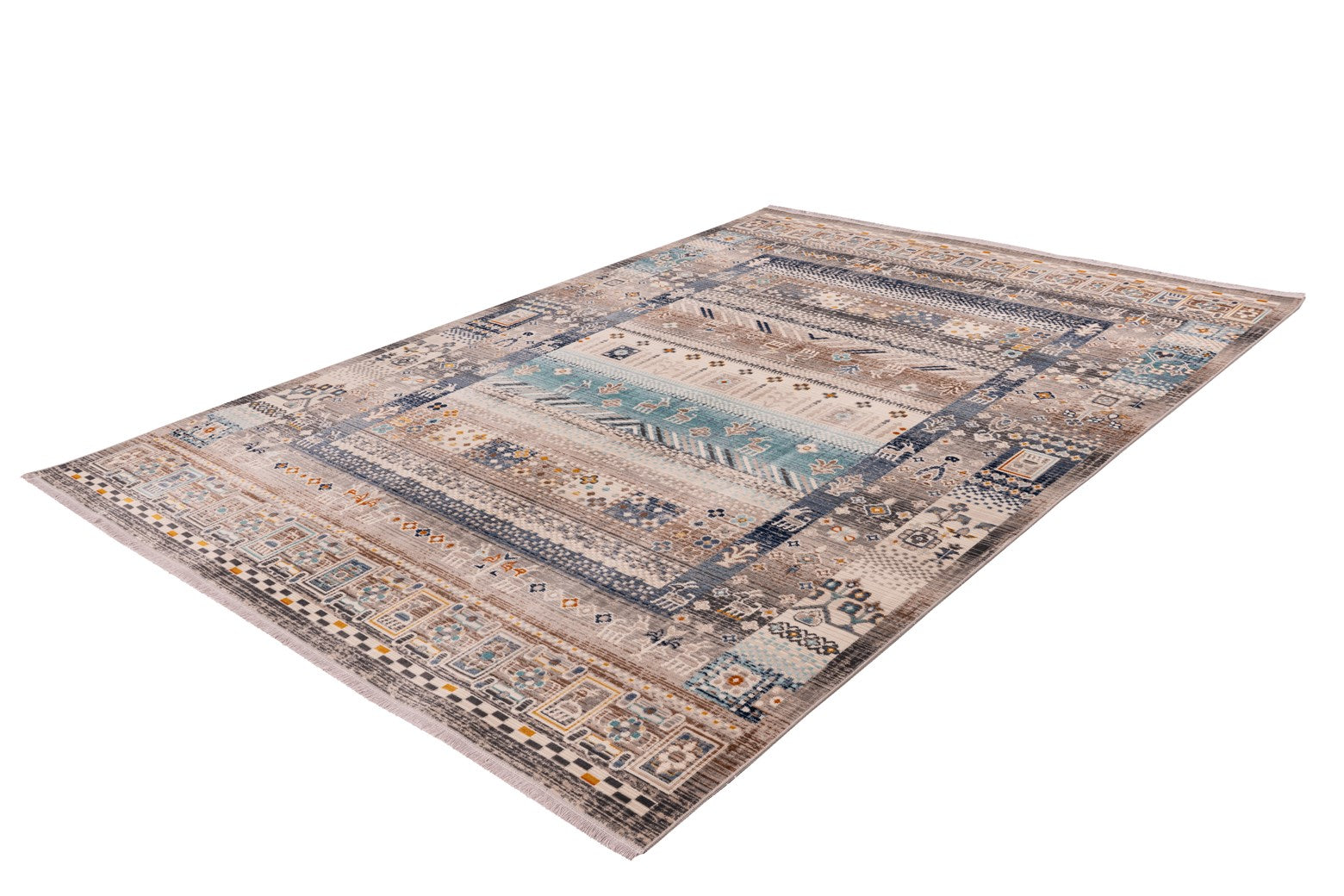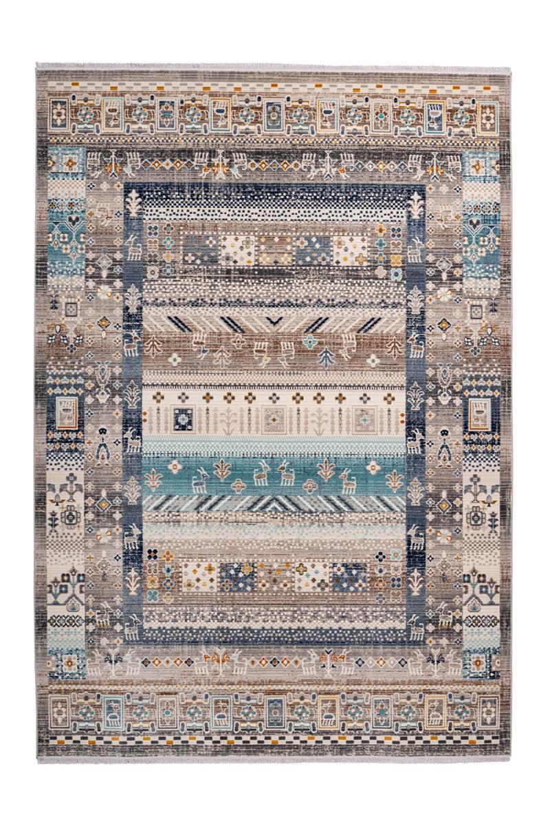 **Stilvoller Teppich im Vintage-Design** Das attraktive Design dieses Vintage-Teppichs überzeugt auf ganzer Linie. Harmonisch aufeinander abgestimmte Farben und das stilvolle Design machen den Teppich zum Blickfang in jedem Raum. Abgerundet wird das Gesamtbild durch weiche Fransen an den Enden des Teppichs. Vorteilhaft ist außerdem das pflegeleichte, äußerst flache Material, wodurch das Modell zu einem Allrounder wird, der auch in häufig genutzten Räumen genutzt werden kann. Ein Ausfransen der Fasern wird durch die seitliche Kettelung verhindert. Der Teppich kann problemlos in jedem Raum genutzt werden – auch in Räumen mit Fußbodenheizung. Der Teppich kann in seiner tatsächlichen Farbgebung von den Bildern abweichen.