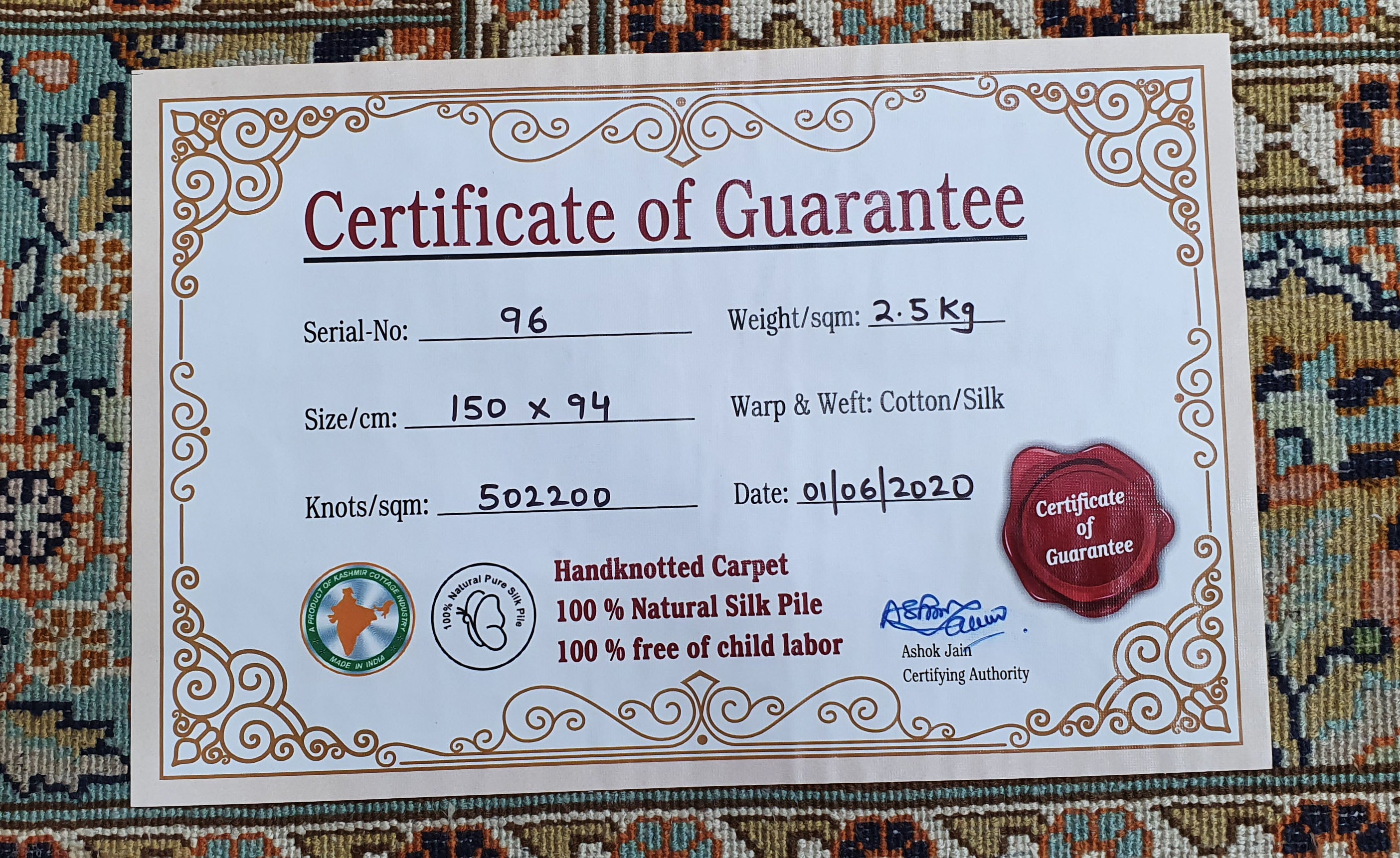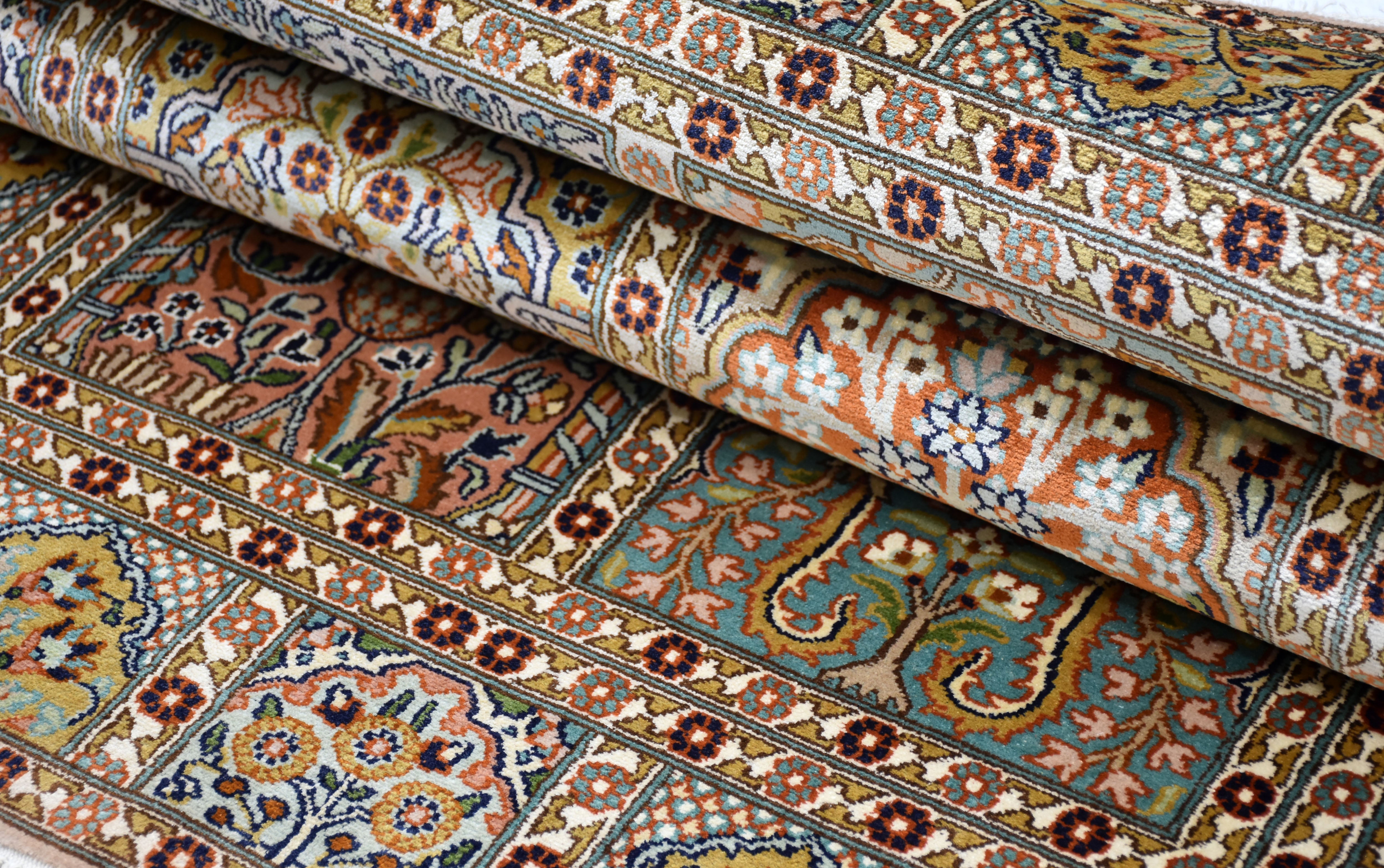 Dieser superweiche Qualitätsteppich ist echter Luxus unter Ihren Füßen, der verwöhnt und schmeichelt. Das stolze Gewicht zeugt von Langlebigkeit und macht den eleganten Teppich zu einem Spitzenprodukt. Ein handgewebter Teppich unterscheidet sich zu einem maschinell erstellten Teppich durch seine feinen Details und die kompexe Herstellungsart. Die faszinierende Bandbreite der Designs, die luxuriöse Geschmeidigkeit und Elastizität und die Lebhaftigkeit der Farben machen echte Seidenteppiche so unverkennbar. Durch das orientalische Design verleihen Sie Ihrem Zuhause einen bezaubernden fernöstlichen Look. Werten Sie Ihre Einrichtung auf und bestellen Sie sich Ihren neuen Seidenteppich.