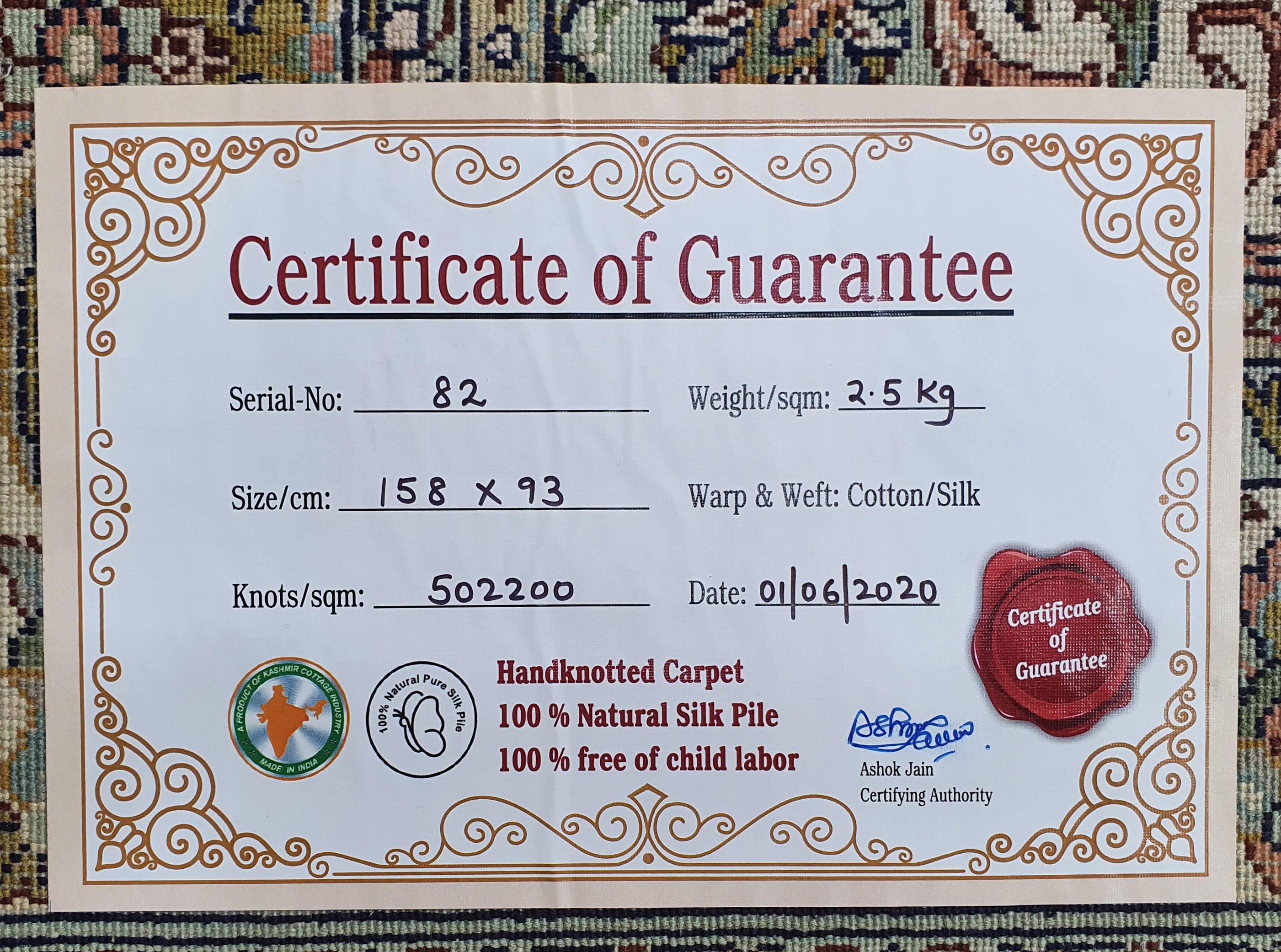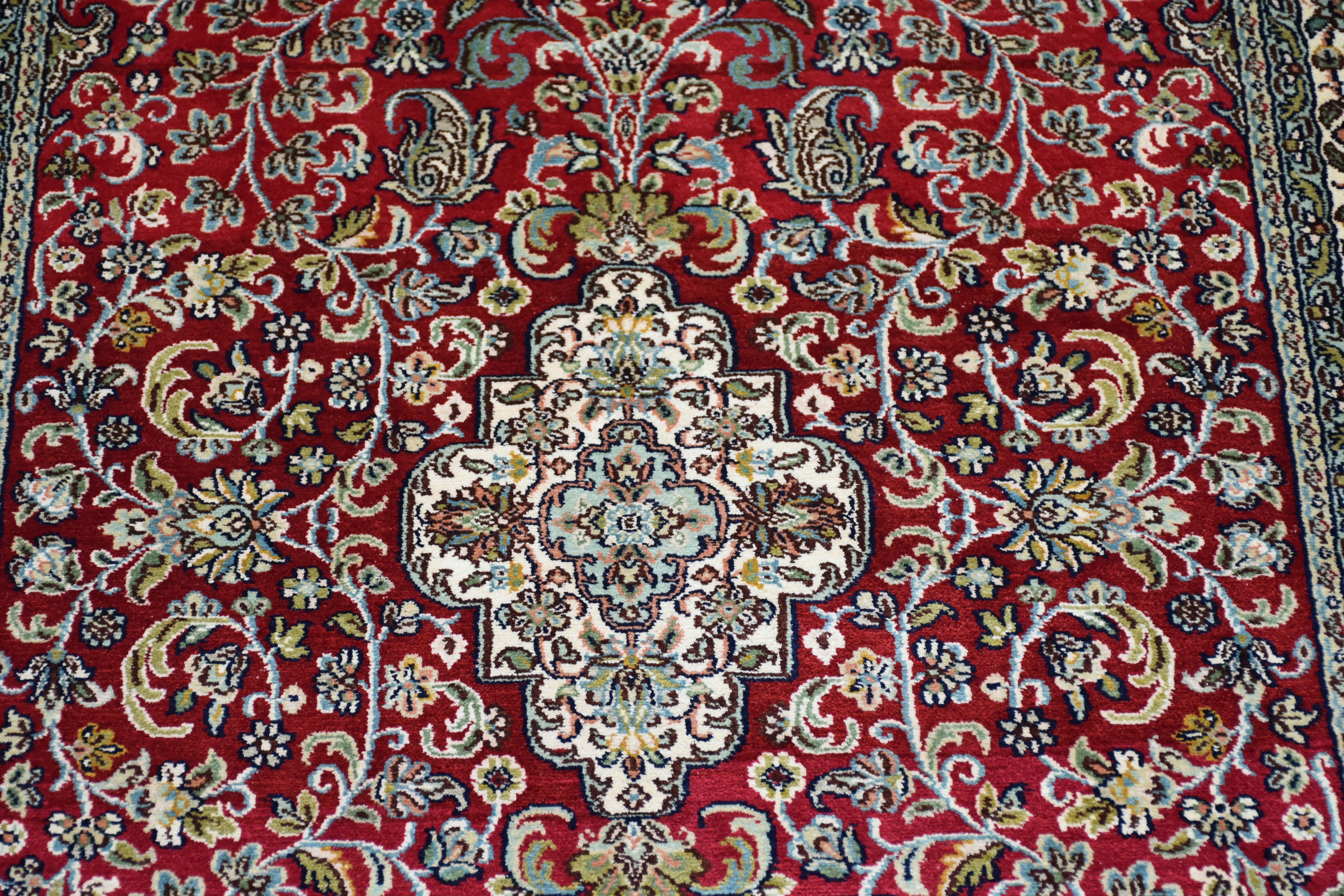 Dieser superweiche Qualitätsteppich ist echter Luxus unter Ihren Füßen, der verwöhnt und schmeichelt. Das stolze Gewicht zeugt von Langlebigkeit und macht den eleganten Teppich zu einem Spitzenprodukt. Ein handgewebter Teppich unterscheidet sich zu einem maschinell erstellten Teppich durch seine feinen Details und die kompexe Herstellungsart. Die faszinierende Bandbreite der Designs, die luxuriöse Geschmeidigkeit und Elastizität und die Lebhaftigkeit der Farben machen echte Seidenteppiche so unverkennbar. Durch das orientalische Design verleihen Sie Ihrem Zuhause einen bezaubernden fernöstlichen Look. Werten Sie Ihre Einrichtung auf und bestellen Sie sich Ihren neuen Seidenteppich.