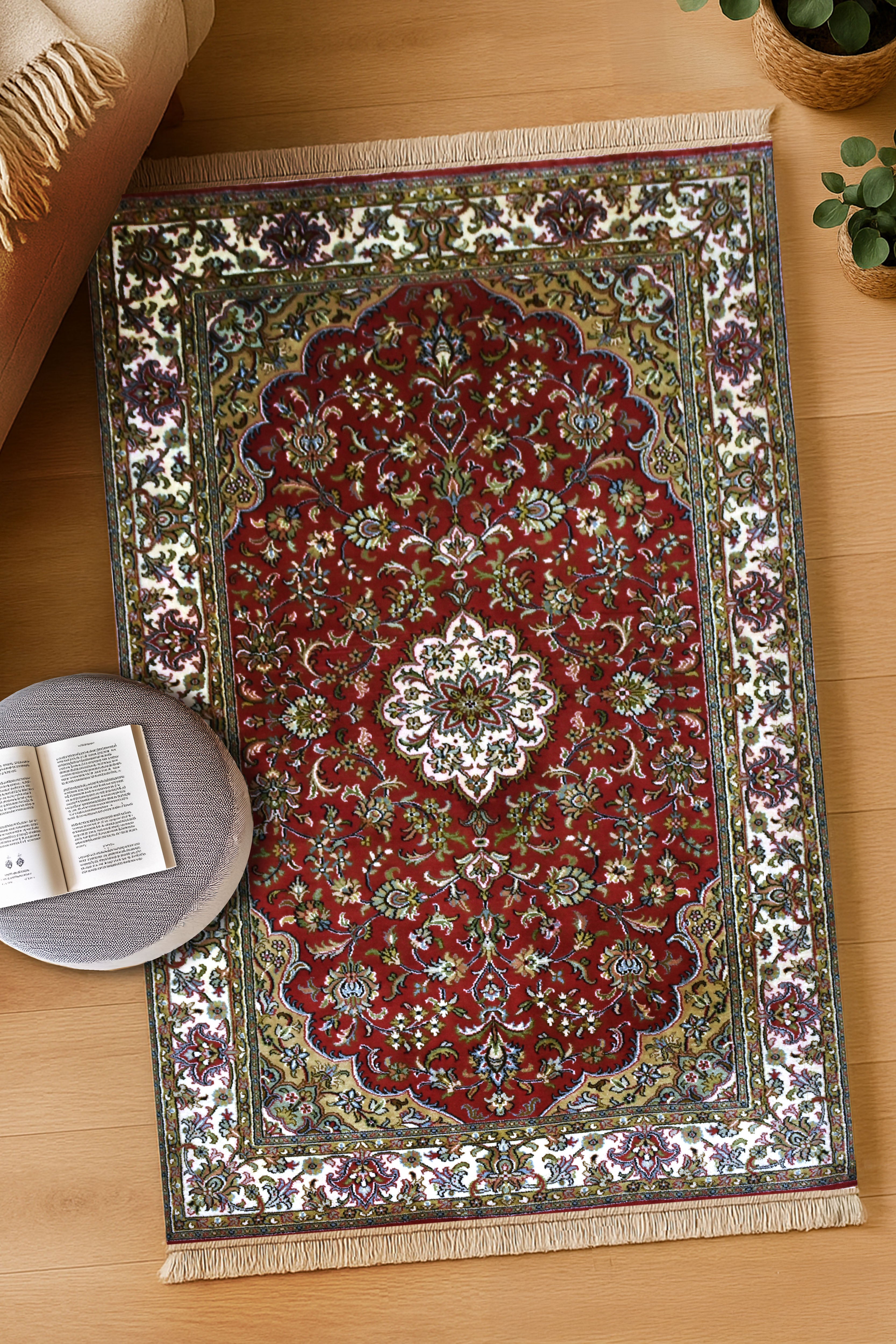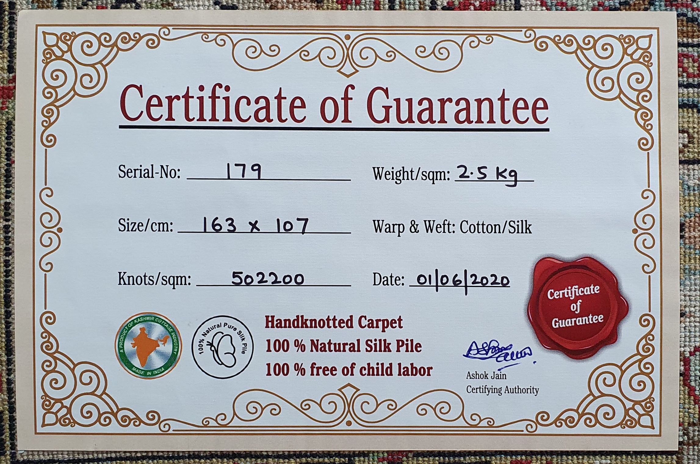 Dieser superweiche Qualitätsteppich ist echter Luxus unter Ihren Füßen, der verwöhnt und schmeichelt. Das stolze Gewicht zeugt von Langlebigkeit und macht den eleganten Teppich zu einem Spitzenprodukt. Ein handgewebter Teppich unterscheidet sich zu einem maschinell erstellten Teppich durch seine feinen Details und die kompexe Herstellungsart. Die faszinierende Bandbreite der Designs, die luxuriöse Geschmeidigkeit und Elastizität und die Lebhaftigkeit der Farben machen echte Seidenteppiche so unverkennbar. Durch das orientalische Design verleihen Sie Ihrem Zuhause einen bezaubernden fernöstlichen Look. Werten Sie Ihre Einrichtung auf und bestellen Sie sich Ihren neuen Seidenteppich.