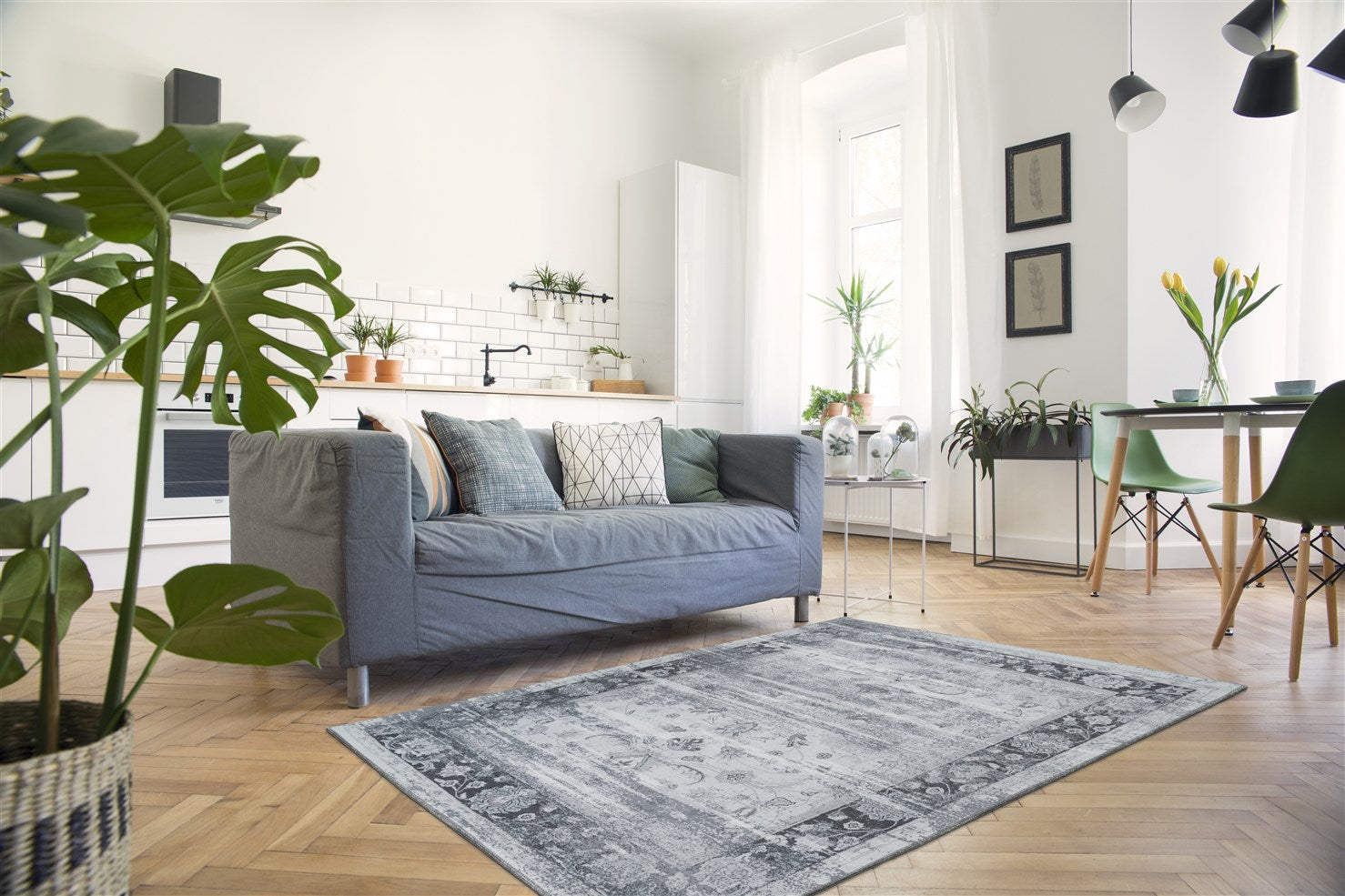 **Hingucker mit Vintage-Charme** Dieser Flachflorteppich ist ein Blickfang in jedem Raum. Stiltypische Verwaschungen und eine harmonische Gestaltung aufeinander abgestimmter Farben machen den Teppich zu einem traumhaften Bodenbelag. In modernen, schlichten Einrichtungen macht das Modell besonders viel her. Doch auch in Einrichtungen im klassischen Stil ist der Flachflorteppich eine bereichernde Ergänzung. Den Vintage-Charakter können Sie durch die Kombination mit weiteren Details im Vintage-Stil noch verstärken. Wohnaccessoires, Dekoelemente oder auch Möbel gibt es in verschiedenen Ausführungen mit Vintage- oder Retro-Optik, sodass für jede Einrichtung etwas Passendes dabei ist. Das pflegeleichte Material des flachen Flors bleibt auch bei häufiger Nutzung lange Zeit erhalten. Auch in Räumen mit Fußbodenheizungen kann der Teppich platziert werden. Ein Filzstoff-Rücken verstärkt den Flor und schont gleichzeitig den Boden. Wählen Sie Ihren neuen Lieblingsteppich aus verschiedenen Designs und Größen aus und genießen Sie den Anblick schon bald in Ihrem Eingangsbereich, Wohn- oder Esszimmer.