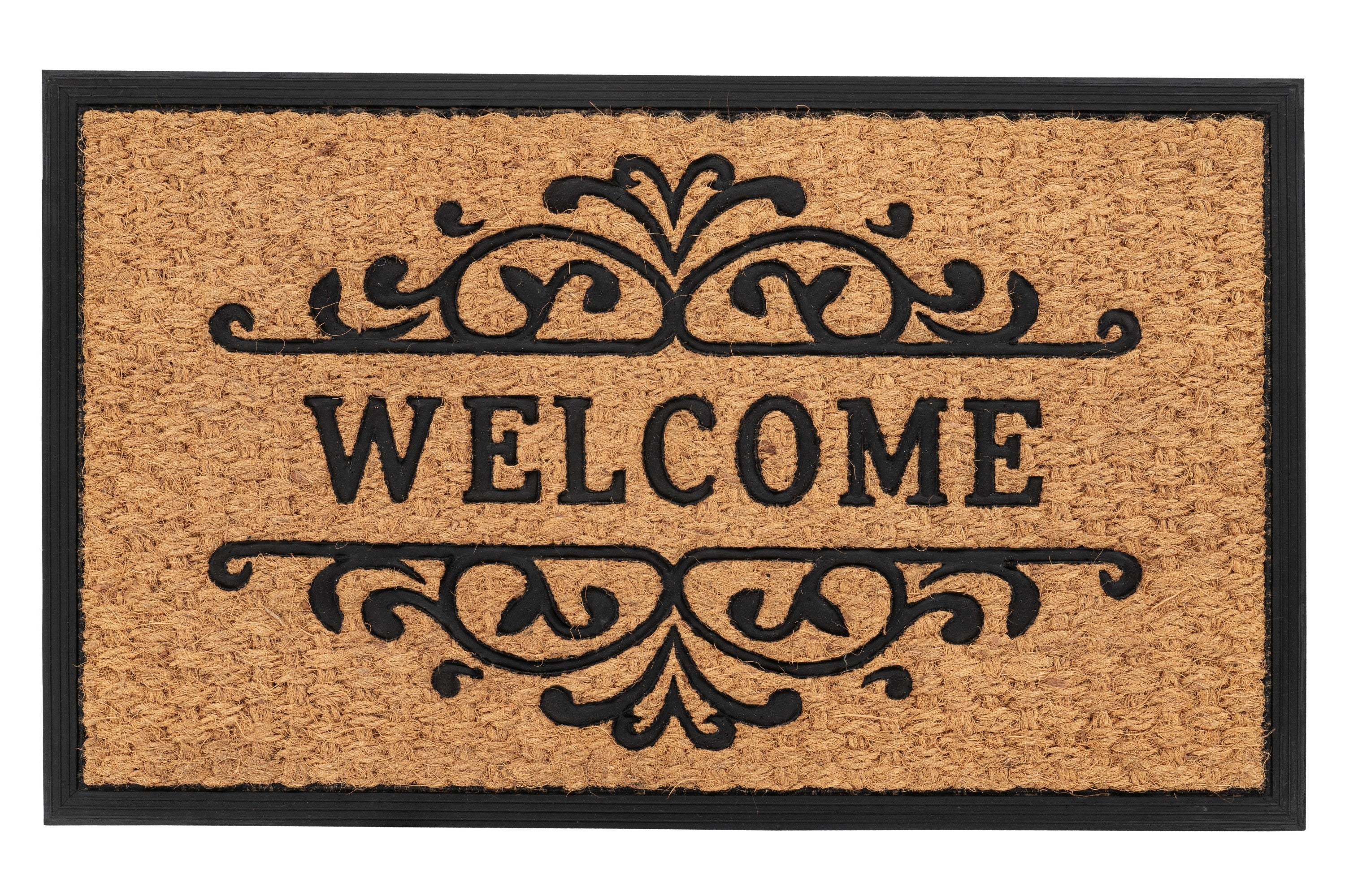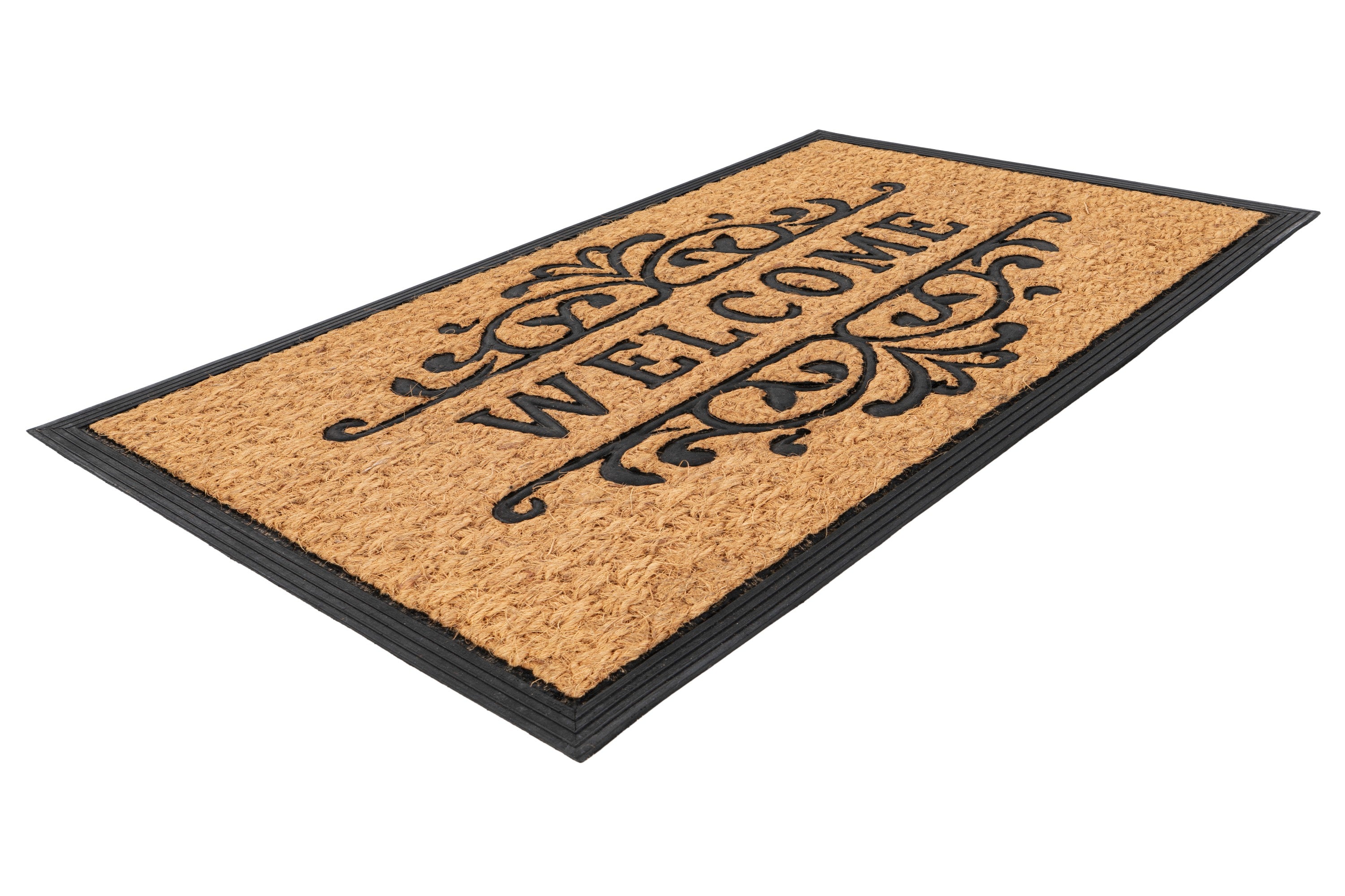 Fußmatte Welcome 100 – eine kombinierte Kokos/Gummi-Fußmatte mit 11 mm Florhöhe und 4580 g/m². Ideal für Eingangsbereiche. Das natürliche Hellbraun passt zu jedem Stil. Erhältlich in zwei Größen. Saugfähig, rutschfest und langlebig. Vorteile: staubdicht, umweltfreundlich, pflegeleicht. Jetzt bestellen und Ihren Eingang mit Komfort schützen!