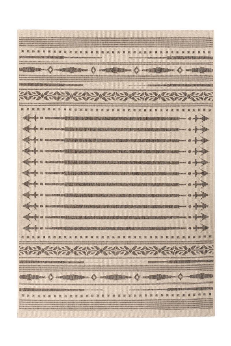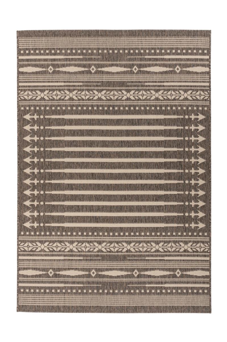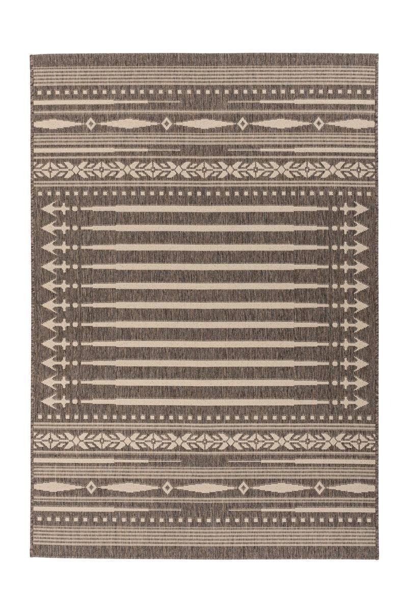 **Auffälliger Outdoor-Teppich mit dezenter Farbgebung** Dieser robuste Teppich für den Außenbereich setzt mediterrane Akzente in jeden Wohnbereich. Der Flachgewebeteppich mit dezenter Farbgebung schafft durch das moderne Design ein gemütliches Ambiente in jedem Außenbereich. Dank seiner feuchtigkeitsbeständigen Kunstfaser aus Polypropylen ist er wasserabweisend und wetterfest. Außenbereiche können mit ihm als Läufer oder Auslegteppich das ganze Jahr über verschönert werden. Werten Sie die Möbel auf Ihrem Balkon auf, indem Sie den Teppich darunter platzieren oder gestalten Sie ausgewählte Bereiche Ihrer Terrasse wohnlich. Kombiniert mit modernen Loungemöbeln oder Sitzelementen und Beistelltischen schafft der Teppich ein gemütliches Ambiente, welches durch Kerzen und Lichterketten ergänzt werden kann. Ob auf Balkon, Terrasse oder Hof, der Outdoor Teppich ist überall gern gesehen und kann selbstverständlich ebenso im Wohnraum ausgelegt werden. Lassen Sie die Sommerabende mit diesem Teppich in Ihrem Außenbereich ausklingen!