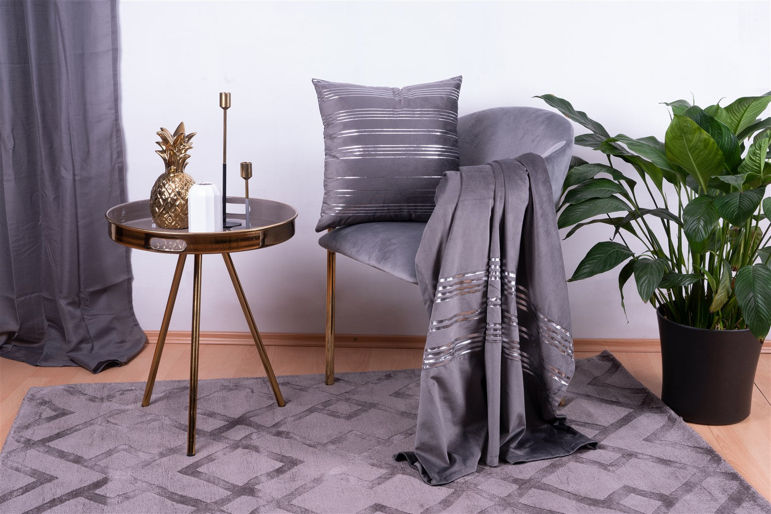 Mit diesem Set aus Kissen und passender Decke steht dem Einkuscheln auf dem Sofa nichts mehr im Wege. Die weiche Haptik von Kissen und Decke lädt zum Verweilen ein und sorgen für Gemütlichkeit in jedem Raum. Gleichzeitig erfüllt das glanzvolle Design einen dekorativen Aspekt, denn das Set kann sich auch ungenutzt sehen lassen und einen wohnlichen Charakter erzielen. Das einfarbige, schlicht gehaltene Kissen wird mit einem glamourösen Retro-Muster aufgepeppt, während die weiche Decke mit einem Zierstreifen mit gleichem Muster versehen ist. Abgerundet wird das Gesamtbild durch schlichte Rückseiten.