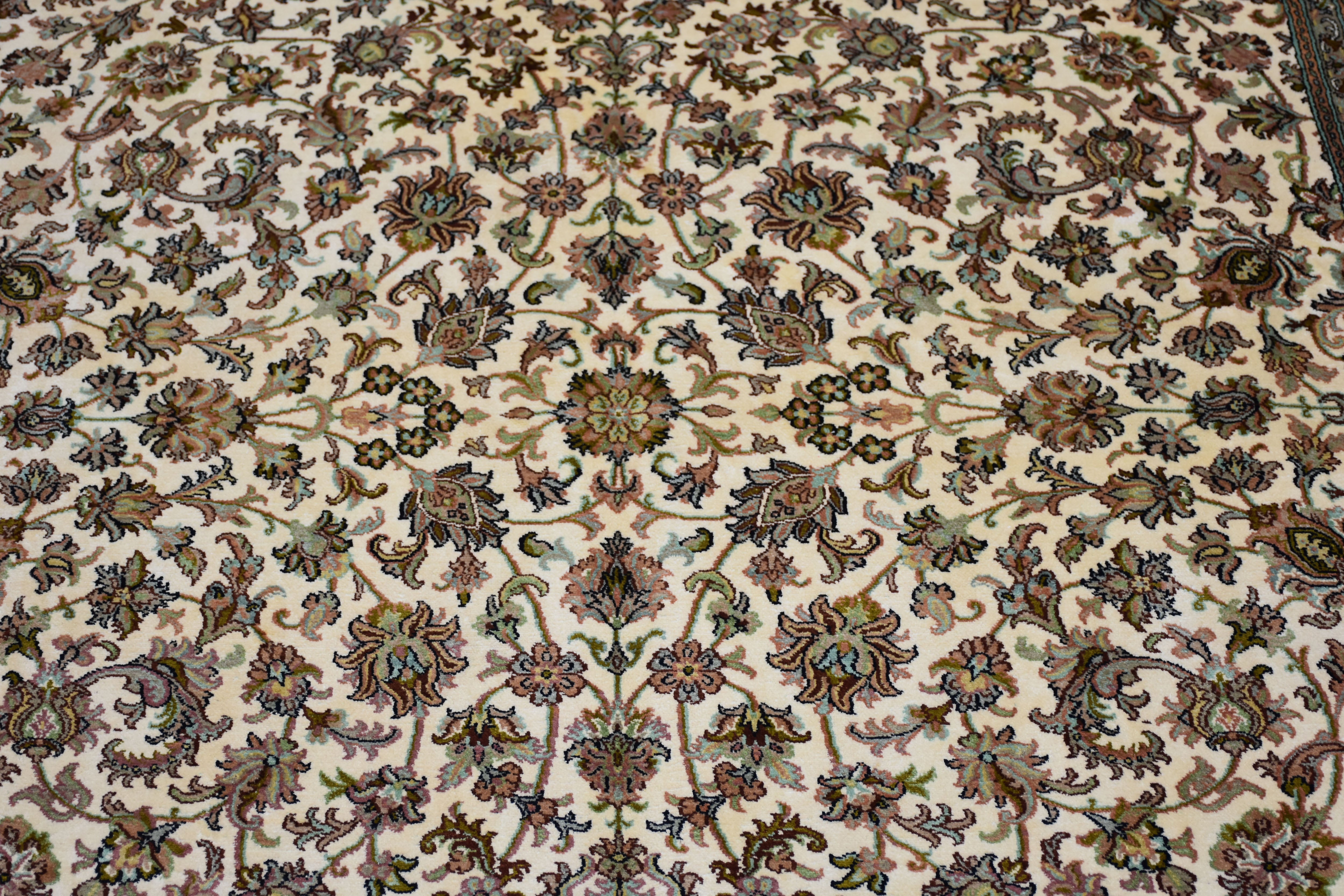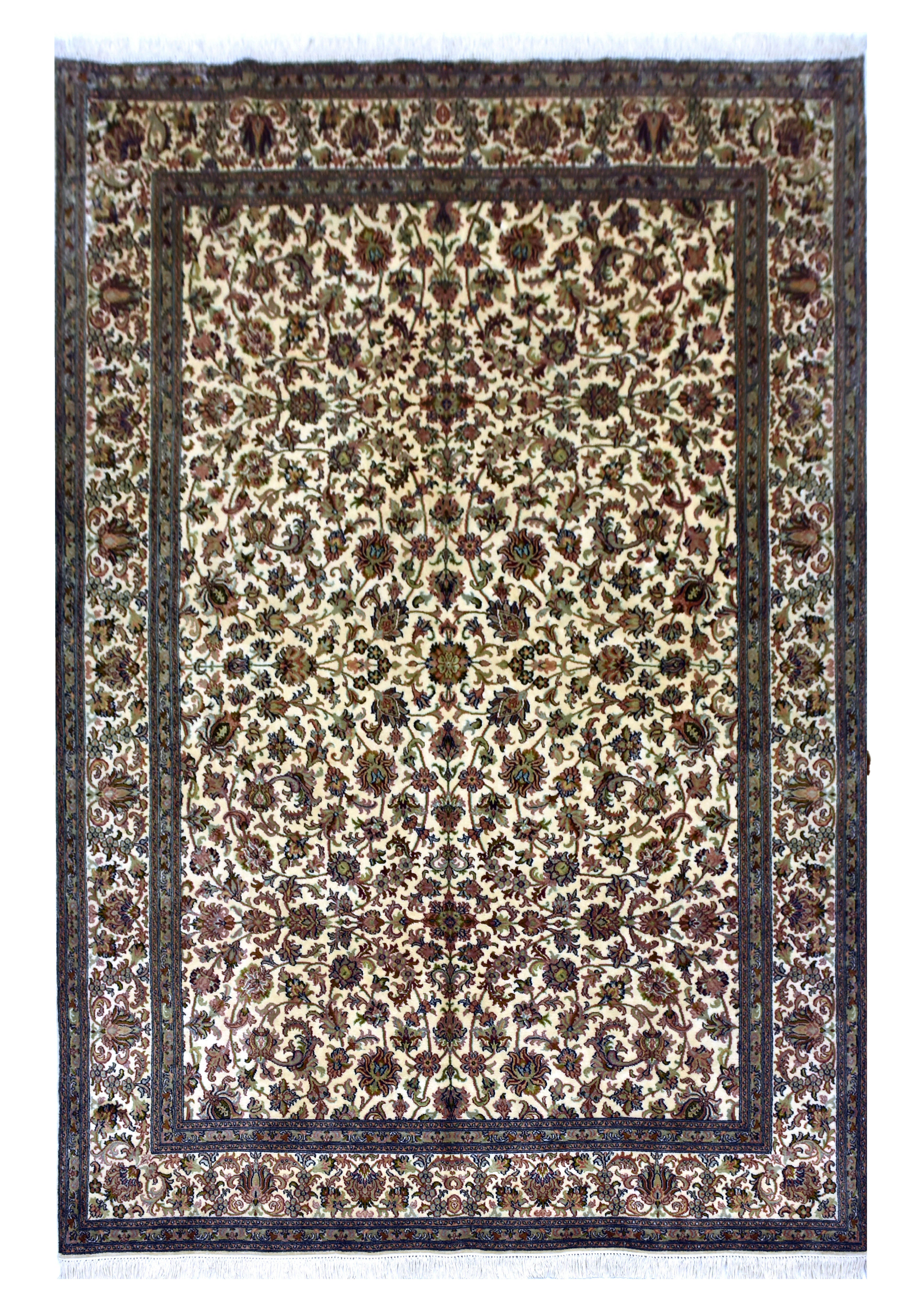 **Teppich mit Orient-Design** Dieser superweiche Qualitätsteppich ist echter Luxus unter Ihren Füßen, der verwöhnt und schmeichelt. Das stolze Gewicht zeugt von Langlebigkeit und macht den eleganten Teppich zu einem Spitzenprodukt. Ein handgewebter Teppich unterscheidet sich zu einem maschinell erstellten Teppich durch seine feinen Details und die kompexe Herstellungsart. Die faszinierende Bandbreite der Designs, die luxuriöse Geschmeidigkeit und Elastizität und die Lebhaftigkeit der Farben machen echte Seidenteppiche so unverkennbar. Durch das orientalische Design verleihen Sie Ihrem Zuhause einen bezaubernden fernöstlichen Look. Werten Sie Ihre Einrichtung auf und bestellen Sie sich Ihren neuen Seidenteppich.