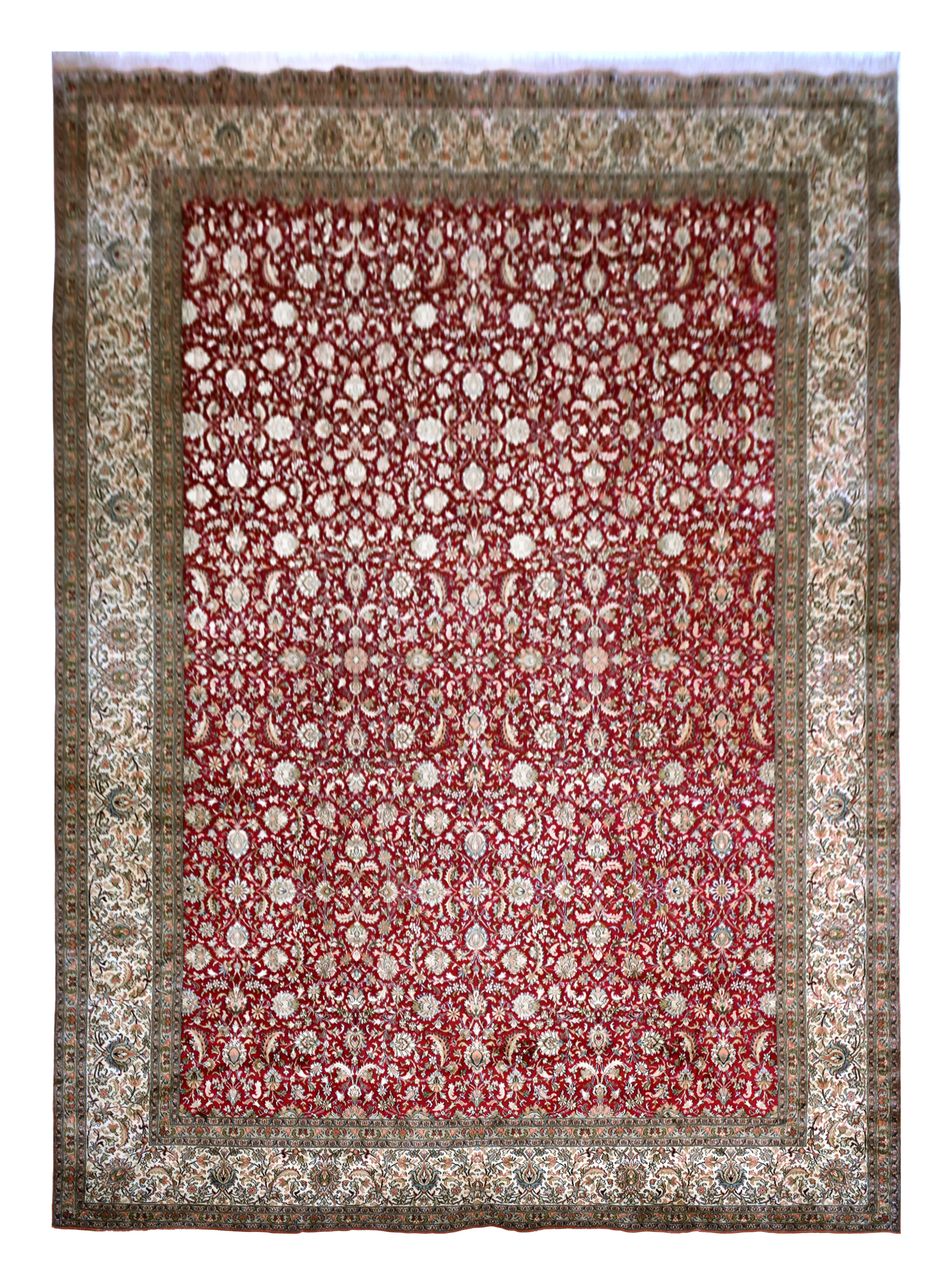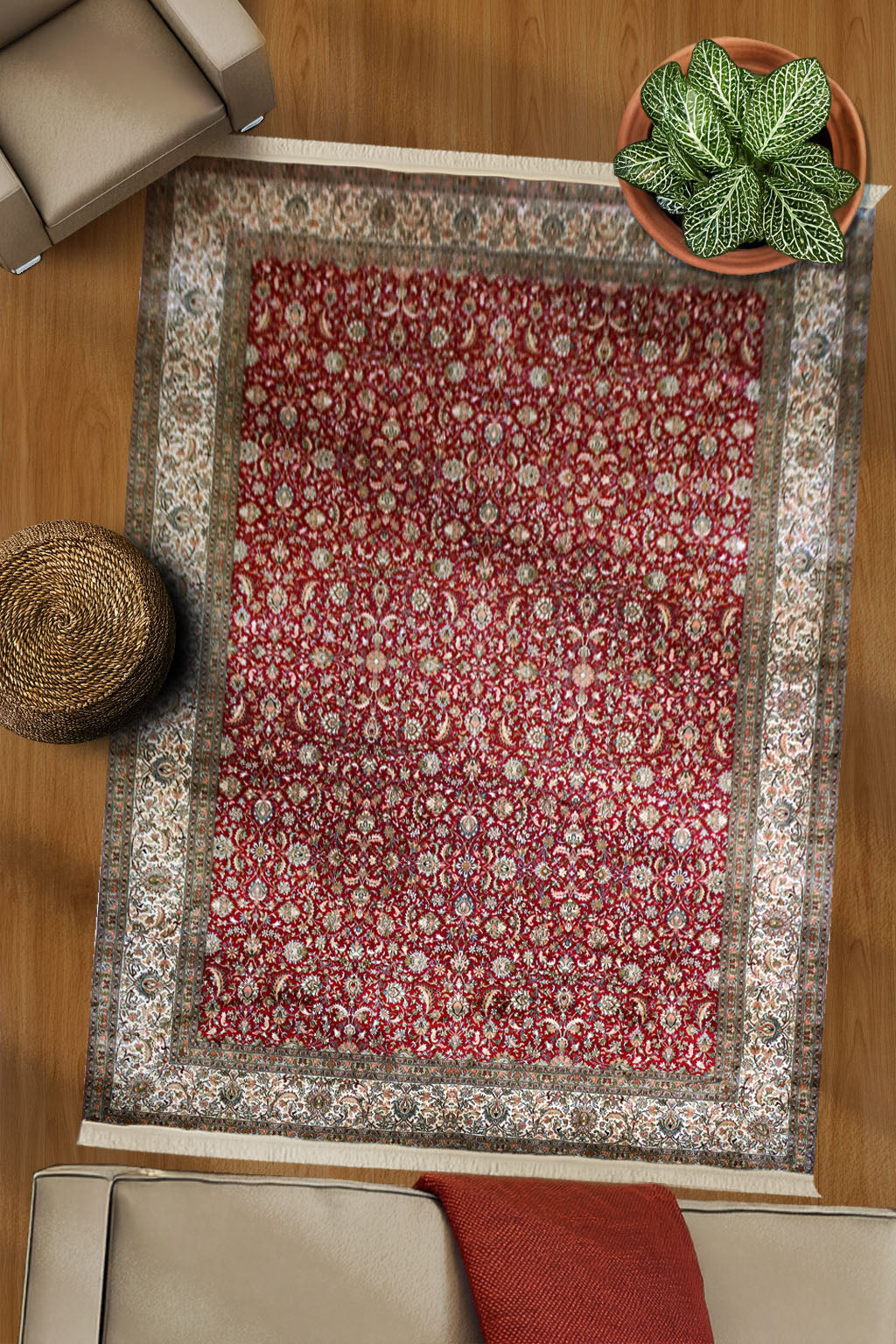**Teppich mit Orient-Design** Dieser superweiche Qualitätsteppich ist echter Luxus unter Ihren Füßen, der verwöhnt und schmeichelt. Das stolze Gewicht zeugt von Langlebigkeit und macht den eleganten Teppich zu einem Spitzenprodukt. Ein handgewebter Teppich unterscheidet sich zu einem maschinell erstellten Teppich durch seine feinen Details und die kompexe Herstellungsart. Die faszinierende Bandbreite der Designs, die luxuriöse Geschmeidigkeit und Elastizität und die Lebhaftigkeit der Farben machen echte Seidenteppiche so unverkennbar. Durch das orientalische Design verleihen Sie Ihrem Zuhause einen bezaubernden fernöstlichen Look. Werten Sie Ihre Einrichtung auf und bestellen Sie sich Ihren neuen Seidenteppich.