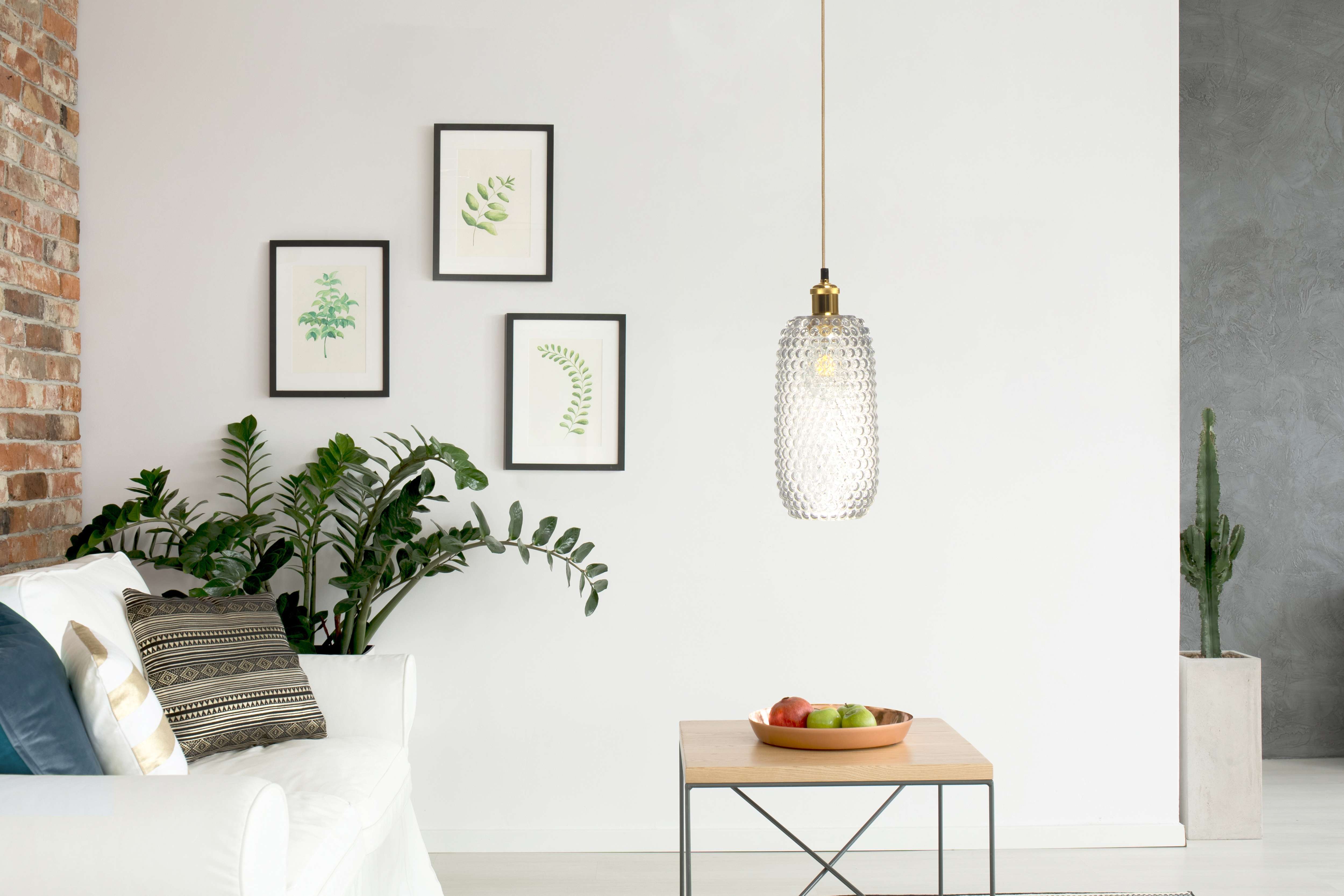 Mit dieser Glas-Hängelampe holen Sie sich einen attraktiven Retro-Charme und eine atmosphärische Beleuchtung nach Hause. Durch den Lampenschirm aus Glas gelangt warmes Licht in die Umgebung und sorgt für ein wohnliches Ambiente. Das stilvolle Design verleiht der Lampe gleichermaßen einen angesagten Retro-Charme und einen modernen Gesamtlook. Über dem Essplatz in Küche oder Esszimmer kann die Lampe ideal an der Decke angebracht werden und eine passende Beleuchtung schaffen.