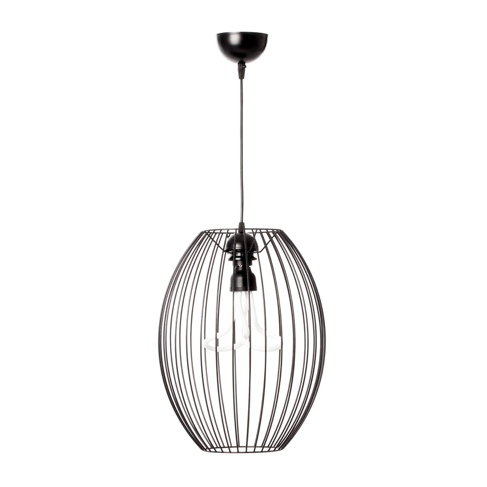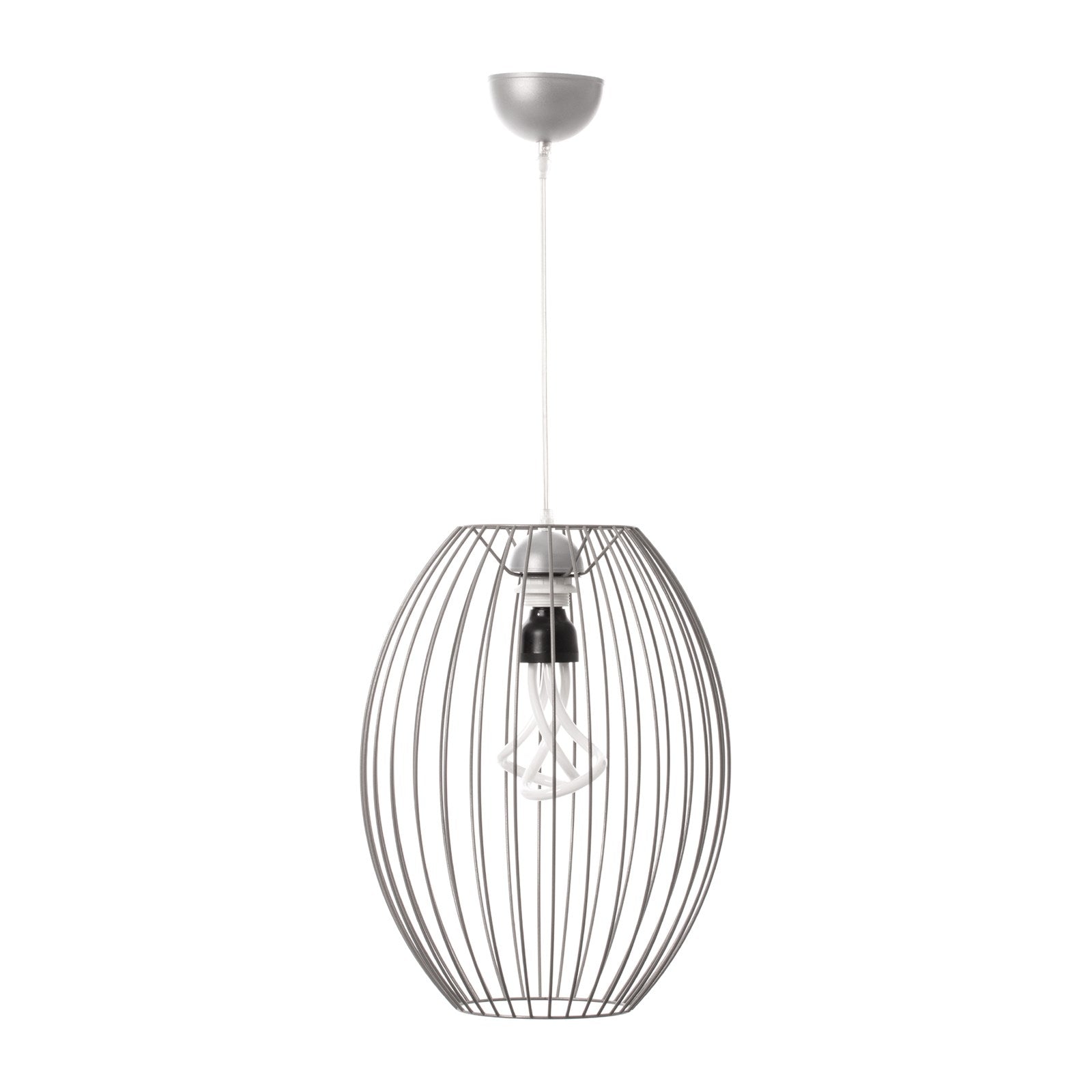 Mit dieser Deckenlampe können Sie in Ihrer Umgebung gekonnt Akzente setzen. Das minimalistisch gehaltene Design in industriellem Stil entsteht durch das drahtartige Gestell des Lampenschirms. Stilvoll in Form gebracht sorgen die gleichmäßigen Abstände zwischen den einzelnen Strängen für ein harmonisches Gesamtbild. Die ansonsten eher schlichte Lampe lässt sich problemlos in jeden Einrichtungsstil integrieren und sorgt bei eingeschaltetem Licht für wunderbare Lichteffekte, die durch den offenen Lampenschirm gestreut werden. Hüllen Sie Ihre Räumlichkeiten in einen attraktiven und gemütlichen Look und lassen Sie die Lampe in ein- und auch im ausgeschalteten Zustand für sich wirken.