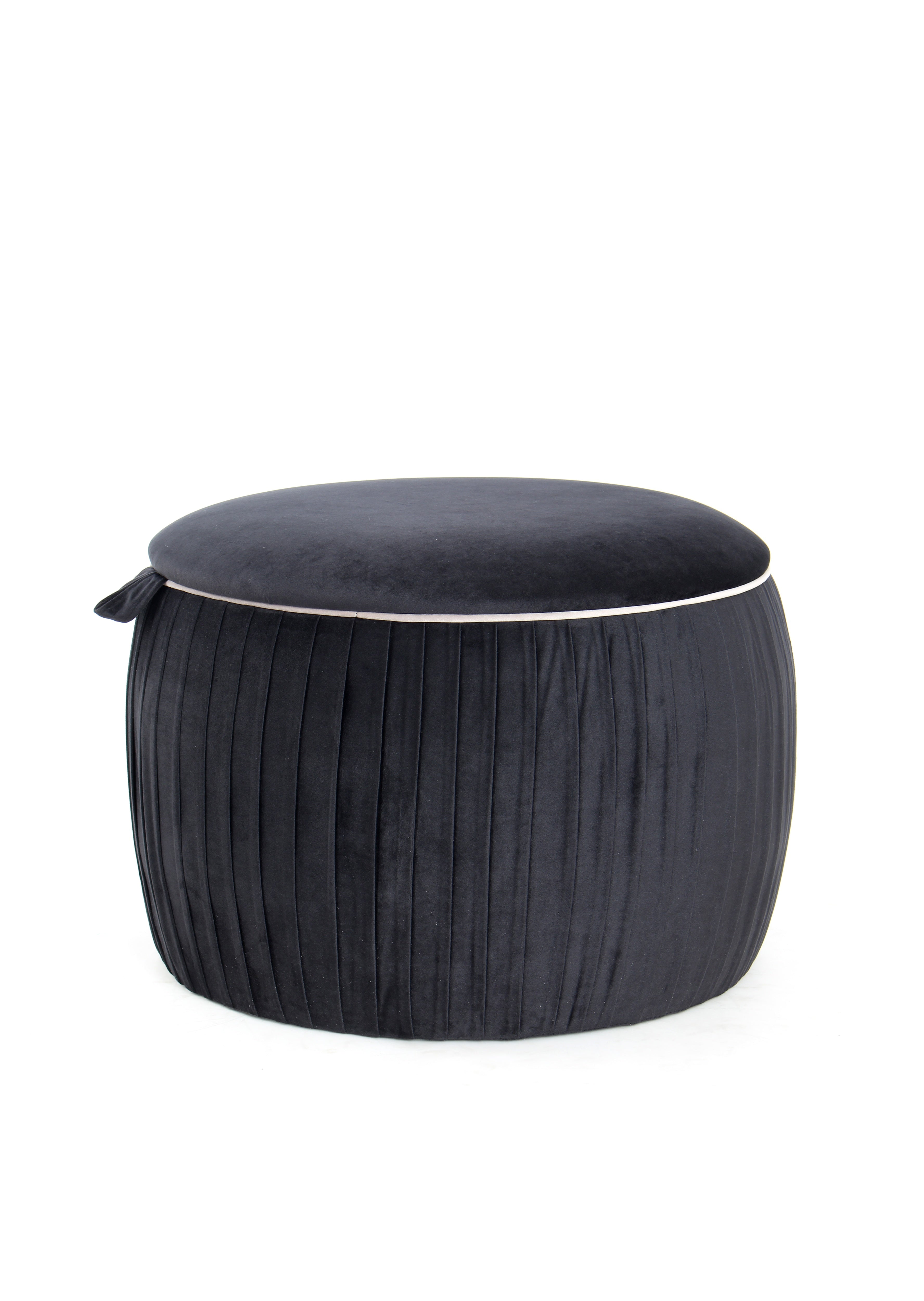 Dieser attraktive Sitzhocker ist nicht nur ein optischer Hingucker, sondern auch eine praktische Aufbewahrungsmöglichkeit. Der runde Hocker bietet durch die weiche Sitzfläche und den samtigen Stoffbezug angenehmen Sitzkomfort. Durch das unifarbene Design kann der Hocker in viele Einrichtungsstile integriert werden. Eine Auflockerung erhält das Design durch den farblichen abgesetzten Rand an der Sitzfläche sowie die Faltenoptik des Außenstoffs.